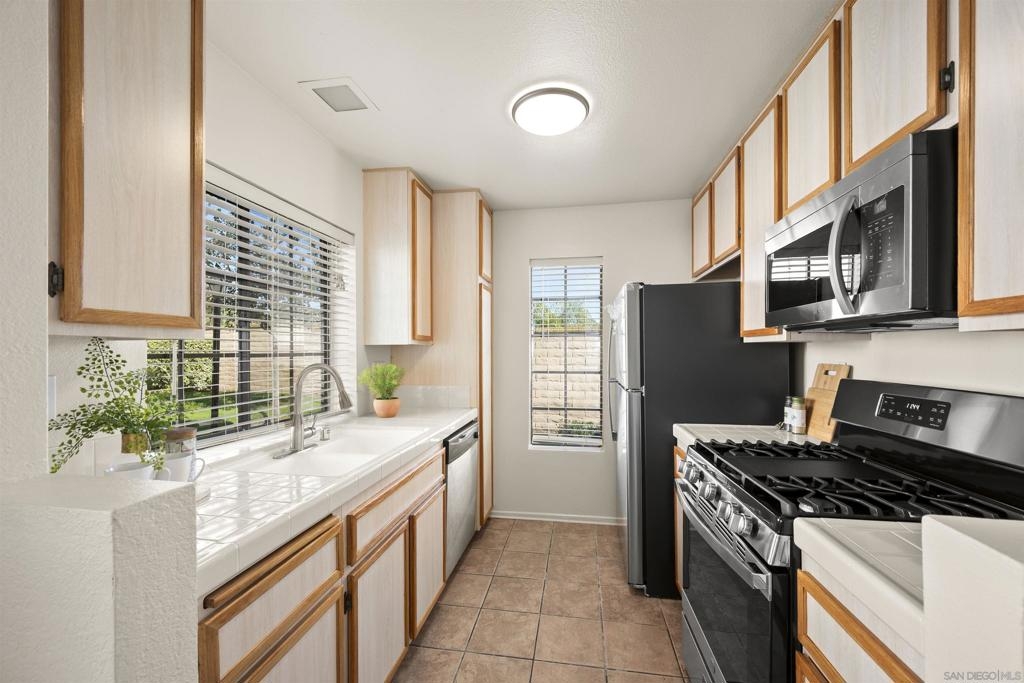 Welcome home to this light & bright downstairs condo in the desirable Sunridge Vista & within the highly rated Poway Unified School District. Enjoy an open layout featuring a cozy living room fireplace, tile flooring throughout (with luxury vinyl planks in the primary bedroom), & large mirrored-door closets. The living area opens to an inviting private patio with storage through sliding doors, perfect for relaxing or entertaining. Convenient stacked in-unit washer/dryer & new kitchen appliances. Well-maintained community offers 2 swimming pools, spa, fitness room, & on-site laundry facilities. Prime location near shopping, dining, & easy access to I-15 & SR-56. Waiting for you to call it home! This charming home offers the perfect blend of comfort and convenience with a functional floor plan and easy first-floor access—no stairs! The bright living and dining area flows beautifully to the private patio, creating a wonderful indoor-outdoor lifestyle. The kitchen has been updated with new appliances, and the home features durable, low-maintenance flooring, with added warmth and style in the primary bedroom’s luxury vinyl planks. The complex offers a resort-style amenities, including two pools, spa, & fitness room &laundry facility, making it feel like you’re on vacation at home. Located in the sought-after Poway Unified School District and just minutes from shopping, dining, and commuter routes, this is a fantastic opportunity for homeowners or investors looking for a prime Poway location.