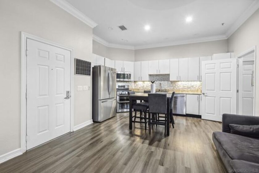 Rare First-Floor Penthouse in East Village – Private, Spacious, and One-of-a-Kind Welcome to 1400 Broadway #1101, a truly exceptional residence that redefines downtown living. This ultra-rare first-floor penthouse-style condo offers unmatched privacy with no shared walls, loft-like 12-foot ceilings, and a location that puts you in the heart of East Village—without sacrificing peace and quiet. Step into a bright, open-concept living space that blends modern luxury with architectural drama. Brand-new luxury vinyl plank flooring flows throughout, while oversized windows flood the space with natural light. The gourmet kitchen boasts granite countertops, a full-height tile backsplash, and stainless steel appliances, making it perfect for cooking and entertaining in style. What sets this condo apart: Completely detached unit—no adjoining neighbors for ultimate privacy Soaring 12-foot ceilings—a dramatic and rare architectural feature Ground-level access—the ease of first-floor living with the feel of a penthouse Central A/C and in-unit washer/dryer for everyday comfort and convenience Located in Union Square at Broadway, this residence also includes access to luxury amenities: a modern fitness center, spa, sauna, resident lounge, EV charging stations, bike storage, and outdoor BBQ areas. Situated directly across from the Police HQ and steps from City College, you'll be within walking distance of San Diego’s top dining, nightlife, and cultural destinations. This is more than a condo—it’s a unique lifestyle opportunity rarely seen on the market. Rare First-Floor Penthouse in East Village – Private, Spacious, and One-of-a-Kind Welcome to 1400 Broadway #1101, a truly exceptional residence that redefines downtown living. This ultra-rare first-floor penthouse-style condo offers unmatched privacy with no shared walls, loft-like 12-foot ceilings, and a location that puts you in the heart of East Village—without sacrificing peace and quiet. Step into a bright, open-concept living space that blends modern luxury with architectural drama. Brand-new luxury vinyl plank flooring flows throughout, while oversized windows flood the space with natural light. The gourmet kitchen boasts granite countertops, a full-height tile backsplash, and stainless steel appliances, making it perfect for cooking and entertaining in style. What sets this condo apart: Completely detached unit—no adjoining neighbors for ultimate privacy Soaring 12-foot ceilings—a dramatic and rare architectural feature Ground-level access—the ease of first-floor living with the feel of a penthouse Central A/C and in-unit washer/dryer for everyday comfort and convenience Located in Union Square at Broadway, this residence also includes access to luxury amenities: a modern fitness center, spa, sauna, resident lounge, EV charging stations, bike storage, and outdoor BBQ areas. Situated directly across from the Police HQ and steps from City College, you'll be within walking distance of San Diego’s top dining, nightlife, and cultural destinations. This is more than a condo—it’s a unique lifestyle opportunity rarely seen on the market. Come experience this East Village gem in person before it’s gone.