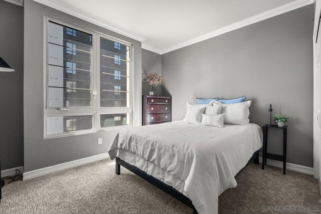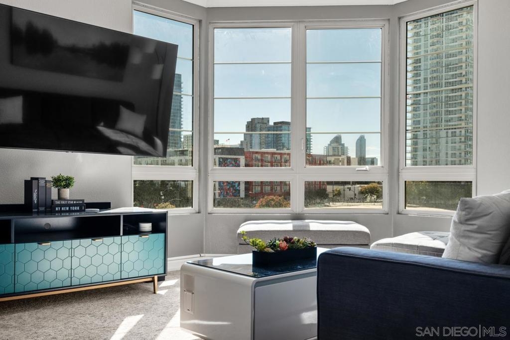 GREAT OPPORTUNITY to own the ** lowest priced 3 bedroom in 92101/92103/92104/92116 ** Welcome to Union Square, where urban convenience meets contemporary comfort. This 5th-floor corner unit is flooded with natural light through expansive windows and features soaring 9-foot ceilings that create an airy, open feel. A true rarity downtown, this is a full **3-bedroom residence—not a 2-plus-den/loft—** with generously sized rooms, an open-concept layout, ample storage throughout, and gorgeous views of the city & Coronado Bridge! The primary suite offers an ensuite bath and a large walk-in closet with built-ins. Both bathrooms feature shower/tub combos, granite vanities, and updated modern lighting. Additional highlights include central AC and heating, two parking spaces with a storage cage above, and a seamless flow between the living, dining, and kitchen spaces—perfect for everyday living or entertaining. Step outside your door and enjoy all that Downtown San Diego has to offer. You’re just steps from San Diego City College, a short walk to Petco Park, and positioned near the highly anticipated East Village Green (Phase 1 opening in 2025). Union Square is a pet friendly building and residents enjoy resort-style amenities, including a fully equipped fitness center with sauna and jacuzzi, BBQ areas, a community lounge and party room, EV charging stations, and a year-round calendar of social events. Onsite management ensures peace of mind, while the vibrant East Village location keeps the best of downtown dining, culture, and entertainment within easy reach.