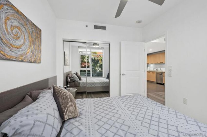 Don't miss this turn-key opportunity! The best location in Little Italy goes a step further. This property provides seamless access to the award-winning courtyard, pool, spa, and downtown amenities without ever having to enter the main building. Enjoy your own Lanai overlooking the tropical waterfalls. Completely upgraded! Too much to list. Hard surface flooring, LED lighting, ceiling fans, extra outlets, wardrobe organizer and doors, blackout blinds, upgraded kitchen appliances, European style cabinets, full backsplash, LG W/D, and arguably best parking in building. SEE THE VIRTUAL TOUR! Location Location Location....Being set between Little Italy; and the Waterfront provides the ultimate walk-ability score. Breeza possesses a true community feel and "casual elegance" Spectacular views occur throughout the building without having to be positioned high in the tower. Proud winner of landscape awards; Breeza features resort like amenities including roof top terrace with stunning views, heated pool and spa, community room, exercise room, common area wi-fi, business center and on-site professional management. *Room Measurements to be confirmed by Buyer.