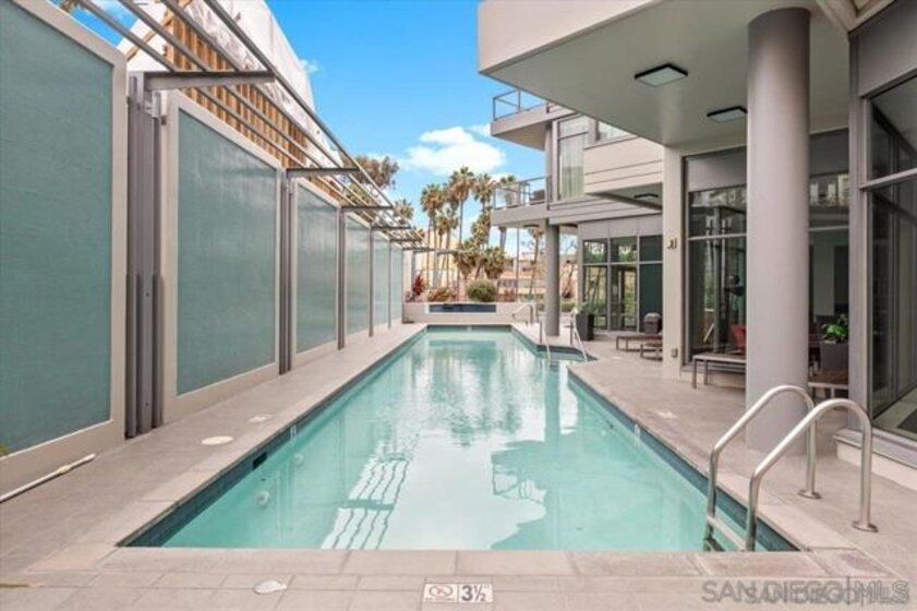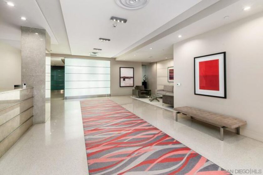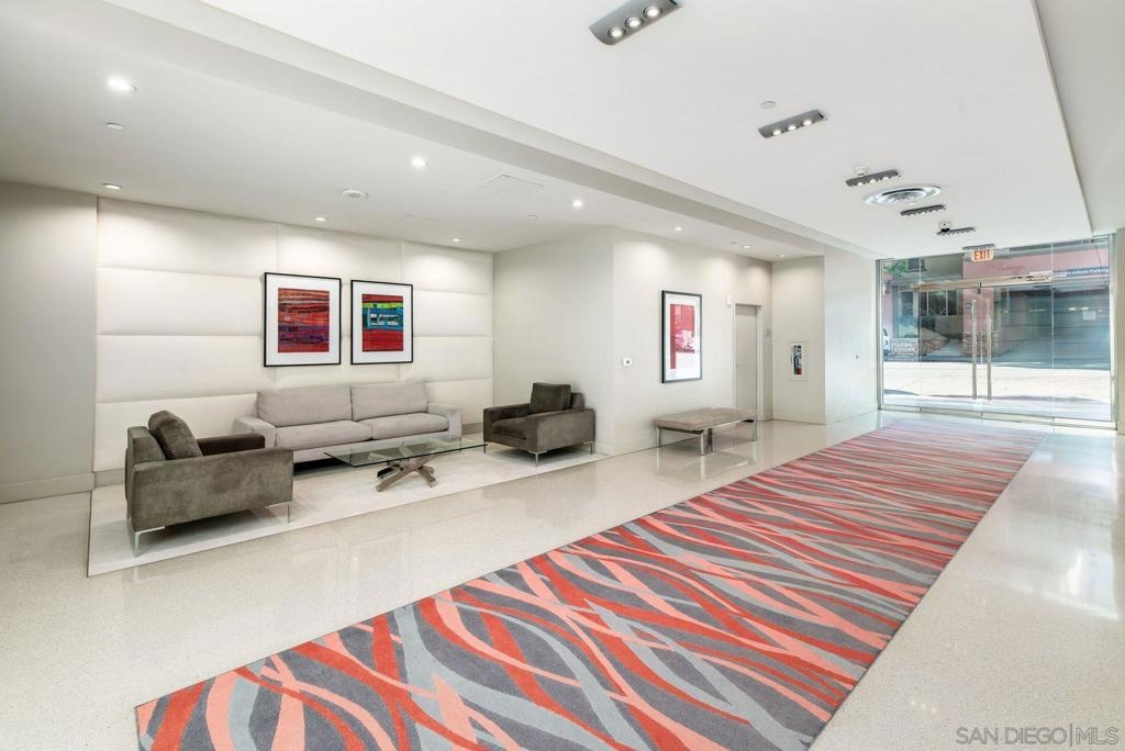 Live in the coveted Aria building perched on Cortez Hill. This contemporary turn key condo has an open floor plan with high ceilings, ample natural light, outfitted for surround sound throughout with Acacia wood flooring. Enjoy your morning coffee or an evening glass of wine on your spacious balcony. Kitchen is complete with quartz island/countertops, glass back splash, newly re-finished cabinets with a 10 year warranty and stainless steel energy efficient appliances. Full size stacked washer/dryer convey. 2 car (tandem) underground secure parking spaces #56. This modern complex features, a gym, rec room/club house, heated pool and spa. Excellent walk score, steps to Balboa Park, Tweat Street Park, Little Italy, Gaslamp District, Hillcrest and short drive to the airport.