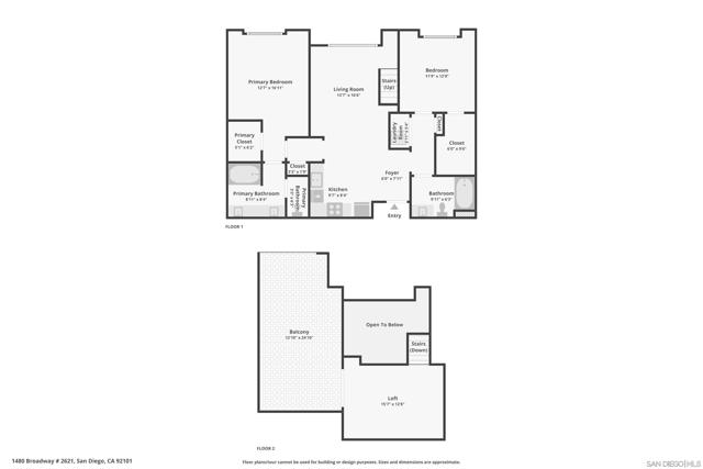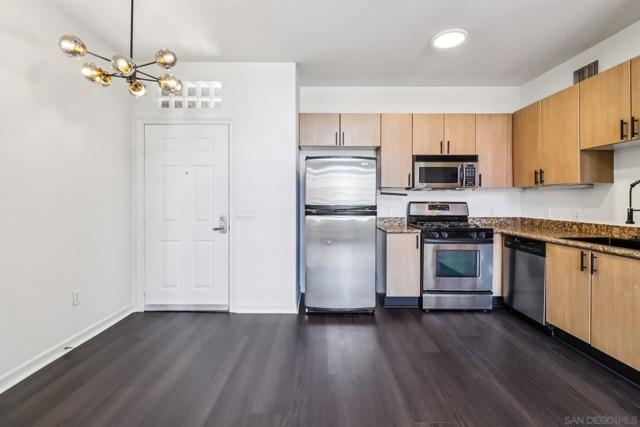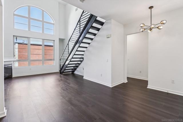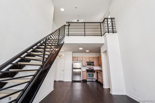 Spacious and light-filled, this nearly 1,300 sq. ft. top-floor condo impresses with vaulted ceilings, clerestory windows, and an open floor plan designed for modern living. The living room features a cozy fireplace and flows seamlessly to the dining area and kitchen—ideal for entertaining. A versatile bonus loft offers space for a home office, family room, or guest suite, and opens to a rare oversized private balcony of nearly 300 sq. ft., perfect for outdoor living. The split-bedroom layout provides flexibility, each bedroom with generous walk-in closets. The primary suite boasts a large bath with dual sinks and plenty of counter space. Fresh paint, new flooring, in-unit laundry with storage, and two secure tandem parking spaces add convenience. Located in a gated, well-maintained community with lush landscaping, water features, a fitness center, rec room, and on-site management, this home offers both comfort and peace of mind. Just minutes from Balboa Park, East Village, Gaslamp, Little Italy, and more, with easy freeway and transit access, this is urban San Diego living at its best!