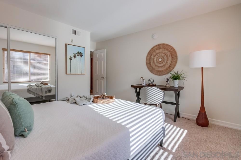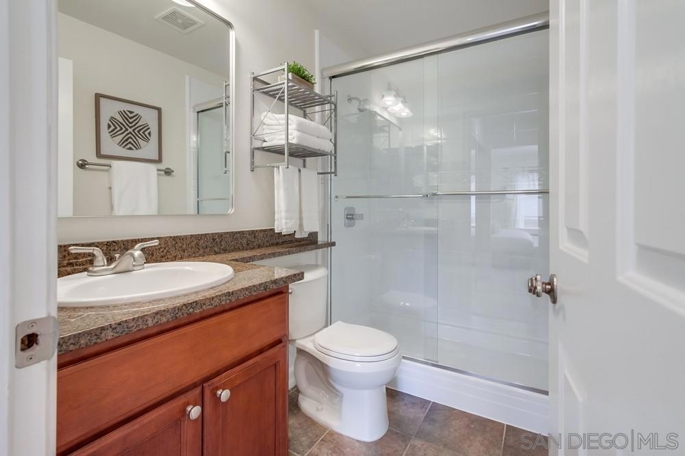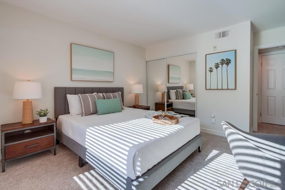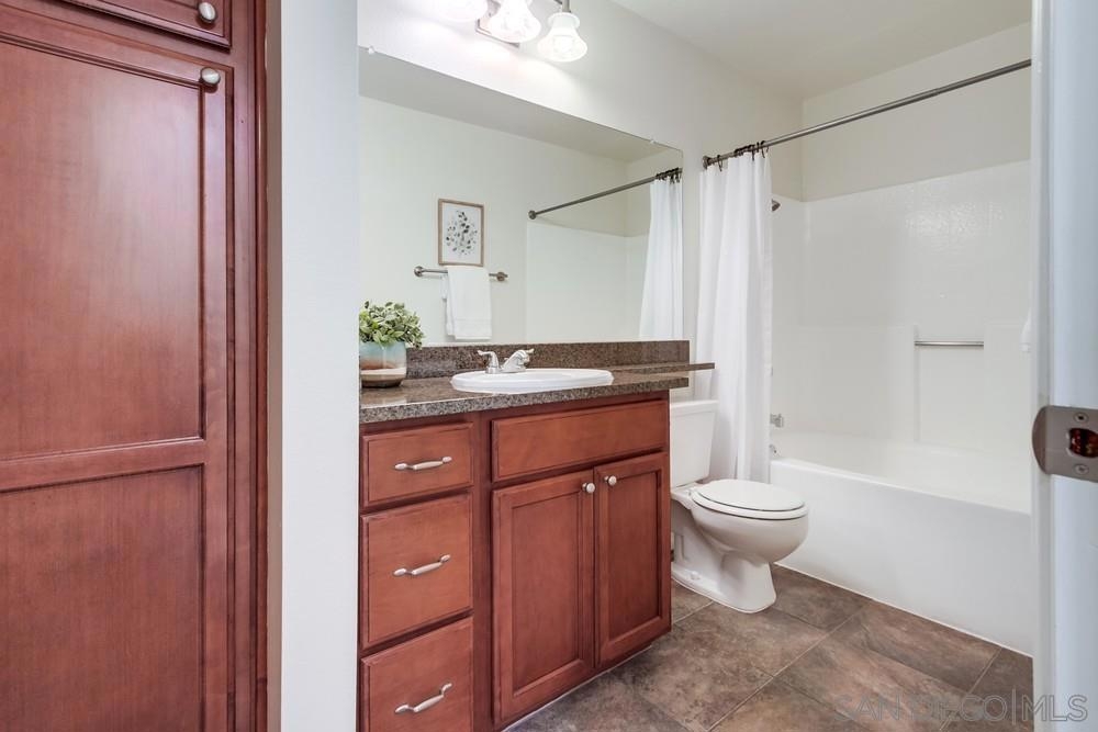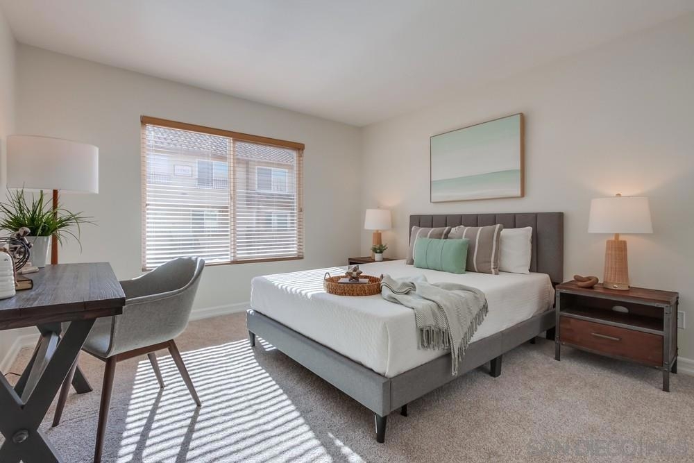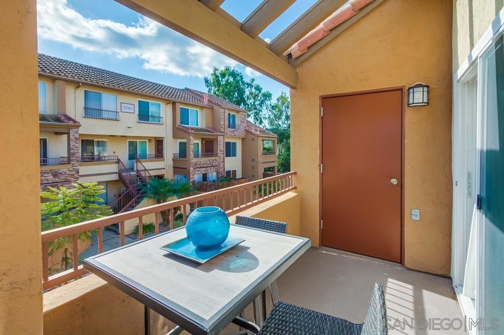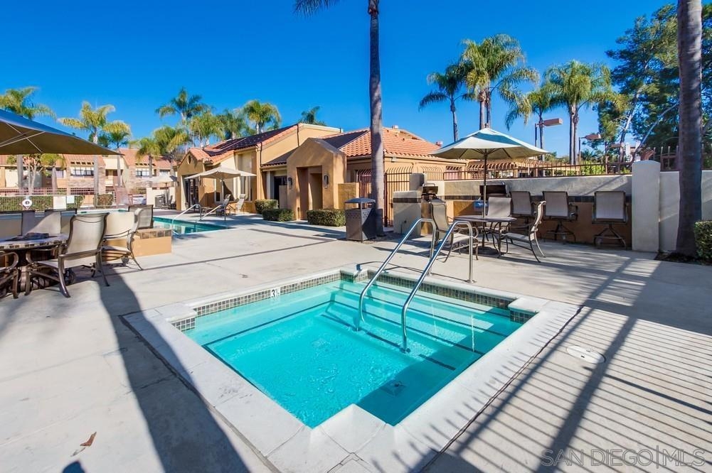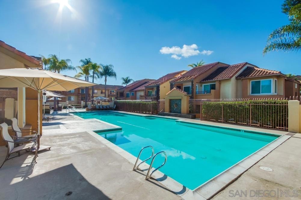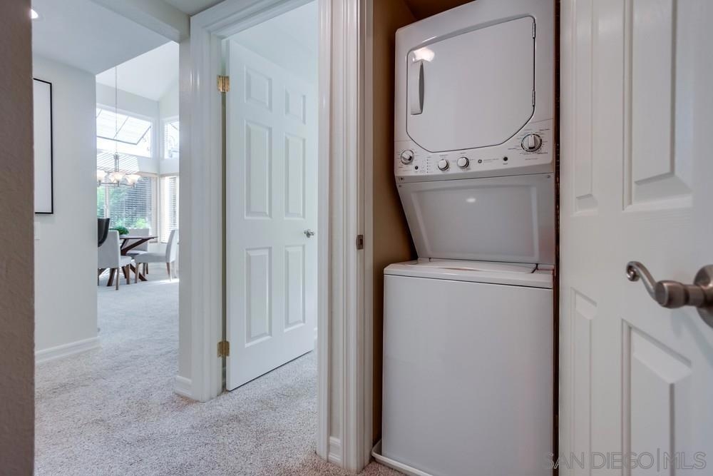 Come see this attractively-priced corner unit in the back of the complex with no one above you! Freshly improved with new carpet and paint, refrigerator, and new primary shower. Vaulted ceilings, washer & dryer in unit, parking for two cars, plus lots of windows and natural light too. Well-maintained complex that offers a fitness center, two heated pools, spa, tennis, and electric-car charging stations. HOA fee includes water and trash. Located in the award winning Poway school district, and close to dining, shopping and freeways - wow!