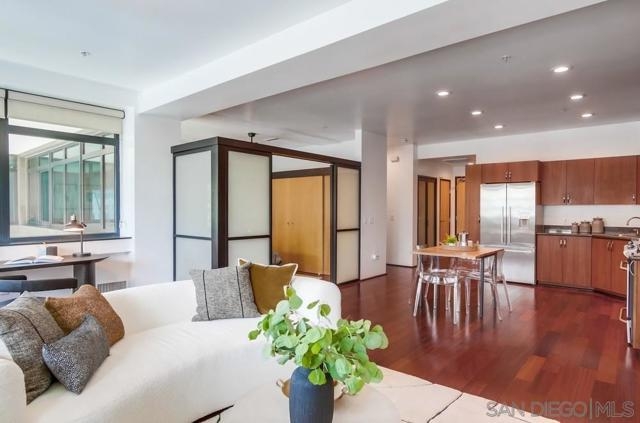 Experience the perfect blend of modern style and everyday convenience in this beautiful 2 bedroom, 2 bathroom condo located in the sought-after Solara Lofts building in downtown San Diego. This spacious residence with plenty of storage boasts an open-concept layout with large windows that flood the space with natural light, highlighting its chic contemporary and industrial design. Enjoy the added convenience of an in-unit washer and dryer and two assigned parking spaces in a gated underground garage. Solara Lofts offers a host of upscale amenities including a fully-equipped fitness center, saunas, massage room, racquetball court, additional storage locker and on-site management. With walkable access to San Diego’s best restaurants, shopping, entertainment, and quick access to major highways, this location can’t be beat. Don’t miss your chance to live in the heart of the city with comfort, style, and convenience all in one place. Experience the perfect blend of modern style and everyday convenience in this beautiful 2 bedroom, 2 bathroom condo located in the highly sought-after Solara Lofts building in downtown San Diego. This spacious residence boasts an open-concept layout with large windows that flood the space with natural light, highlighting its chic contemporary and industrial design. Enjoy the added convenience of an in-unit washer and dryer and two assigned parking spaces in a gated underground garage. Solara Lofts offers a host of upscale amenities including a fully-equipped fitness center, saunas, massage room, racquetball court, additional storage locker and on-site management. With walkable access to San Diego’s best restaurants, shopping, entertainment, and quick access to major highways, this location can’t be beat. Don’t miss your chance to live in the heart of the city with comfort, style, and convenience all in one place.