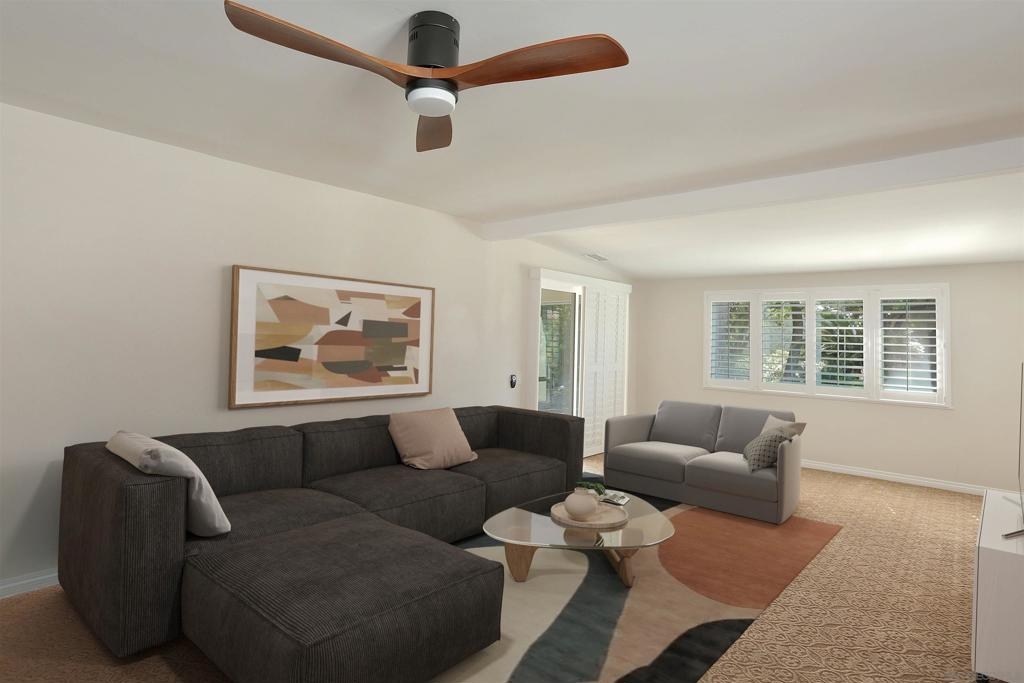 Your comfy oasis awaits, nestled in one of the more secluded dual unit enclaves of Seven Oaks. Beautifully upgraded with warm neutral colors - inviting and cozy are the words that come to mind - and that's how a home should feel. The duplex-like arrangement of this home coupled with the mature spacious landscape is akin to that of a single family home - (See Supplement) (See List of Upgrades - DOC) Upon entering, you'll be welcomed by the expansive family room/living room with cozy fireplace and plush carpeting. A large adjacent dining area and beautifully remodeled kitchen (upgraded cabinetry - sleek track lighting and stainless appliances) complete the front area of the home. Natural light from the oversized windows bathes the primary bedroom which easily accommodates a king bedroom set and sitting area. The ensuite primary bath boasts and over-sized shower and dual vanities with upgraded counters and mirrors. The guest bedroom and bath are ample in size. An interior laundry room has plenty of space even though it is home to both the heating and hot water units. A fully enclosed sun room with slider and glass window wall is located just off the family room and creates the perfect relaxation spot. Enjoy views of the mountains to the east from inside the sun room and outside. Close to Rancho Bernardo shopping, eateries, and community services. You'll truly enjoy the well appointed Community Center. The events and social opportunities make this community one of the most sought after in the area. A complete list of the upgrades is listed in the document section of the MLS. If a "Home" is your goal for the future - You have struck GOLD at this address!