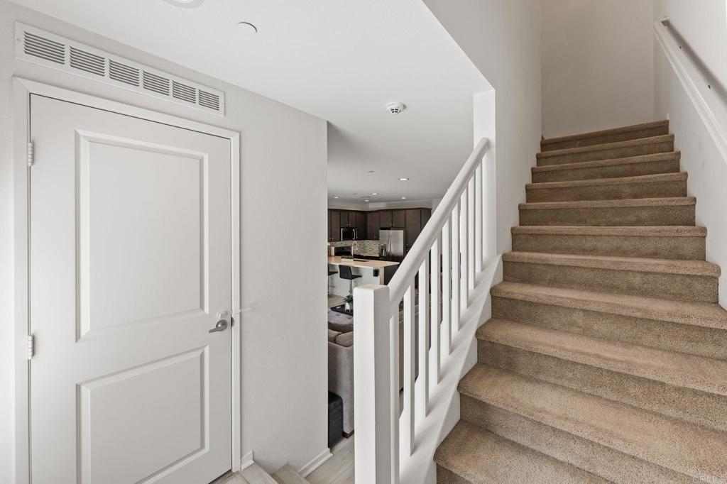 Welcome to Tesoro at Vista Del Sur, where modern design meets everyday comfort in this stylish 3-bedroom, 3-bathroom townhouse. The main living space on the second floor features upgraded flooring throughout, no carpet, giving the home a clean, polished feel that's both practical and inviting. The layout flows easily, making it great for relaxing or hosting. Upstairs, all bedrooms are tucked away on the third floor, offering privacy and a quiet place to unwind. One of the standout features is the owned solar, helping keep energy costs down while adding long-term value. Goes well with the electric water heater in the two-car garage that goes beyond parking, with extra space perfect for a personal home gym, creative studio, or additional storage. Location is hard to beat. With quick access to the 905 and 805, getting around San Diego is simple whether you're heading to work, the coast, or anywhere in between. The area continues to grow, with nearby shopping, dining, and everyday conveniences just minutes away.