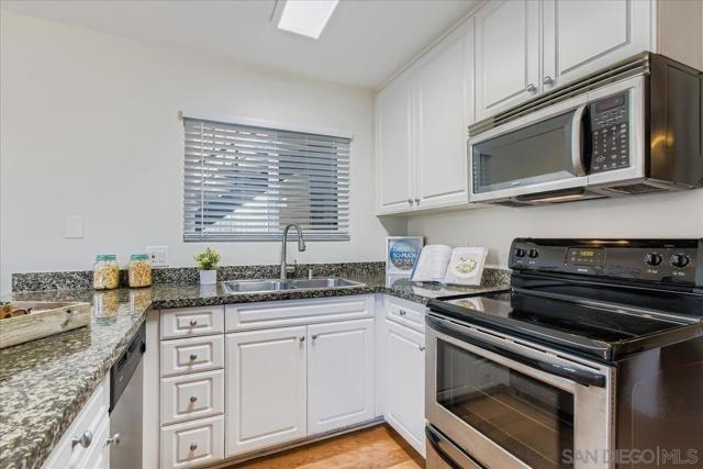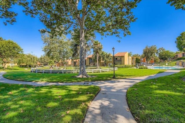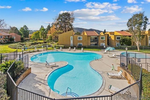 Priced to Sell! Welcome to this beautifully updated 2-bedroom, 2-bathroom home, ideally situated in one of the most desirable areas of the community and within the highly acclaimed Poway Unified School District. Featuring a freshly painted interior, this home showcases a crisp and modern aesthetic. Inside, you'll find a comfortable living space with upgraded dual-pane windows that enhance energy efficiency and help maintain a peaceful indoor environment. The functional layout provides a seamless flow between the living, dining, and kitchen areas—ideal for both daily living and entertaining. Durable laminate flooring runs through the living and kitchen spaces, complemented by crown molding and baseboards for an added touch of elegance. Both bedrooms are spacious and well-appointed, including a primary suite with its own private en-suite bath. The secondary bathroom is equally updated and functional—perfect for guests or family members. Additional features include "ice cold" HVAC system and a brand-new refrigerator, providing comfort and convenience. Residents enjoy access to fantastic community amenities, including a sparkling pool, clubhouse with gym, playground, dog run, and beautifully landscaped common areas. A school bus stop is conveniently located in front of the complex, and homeowners have the option to join the nearby Westwood Club—an exclusive social and recreational center. With top-rated schools, great shopping and dining nearby, and easy access to the 15 freeway, this home offers a wonderful opportunity to live in a peaceful, well-maintained neighborhood with excellent educational access.
