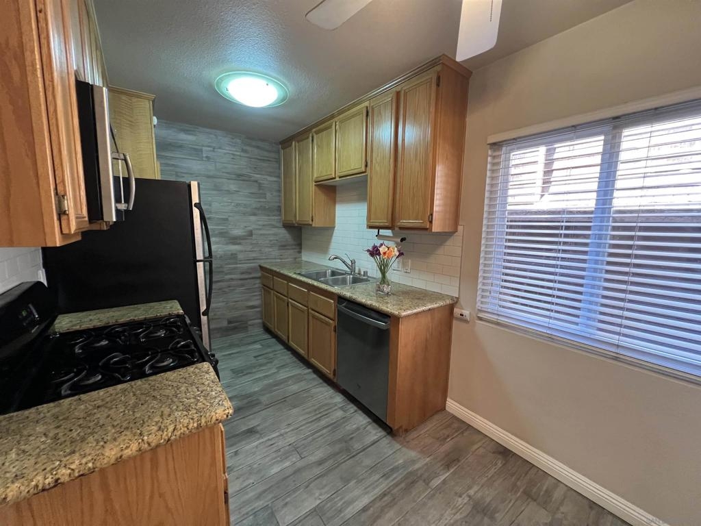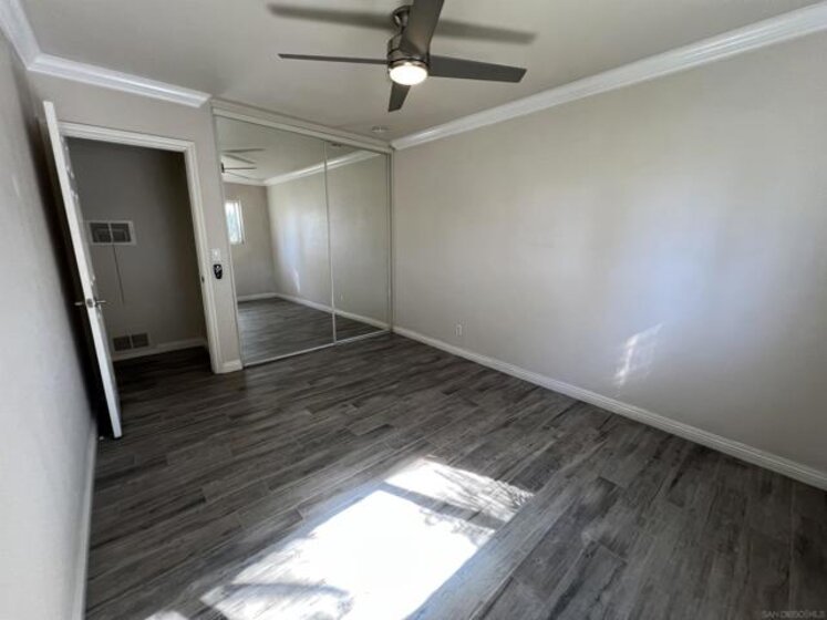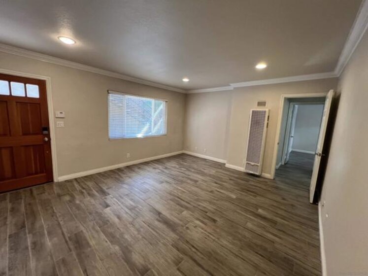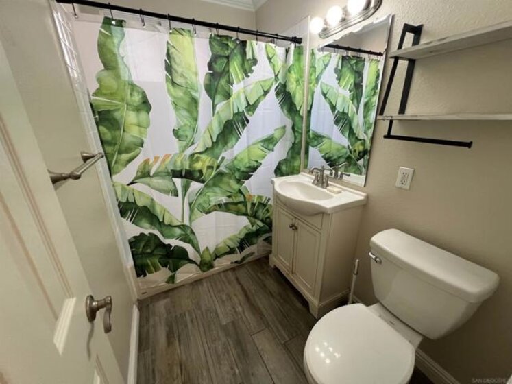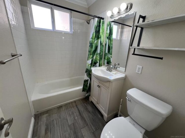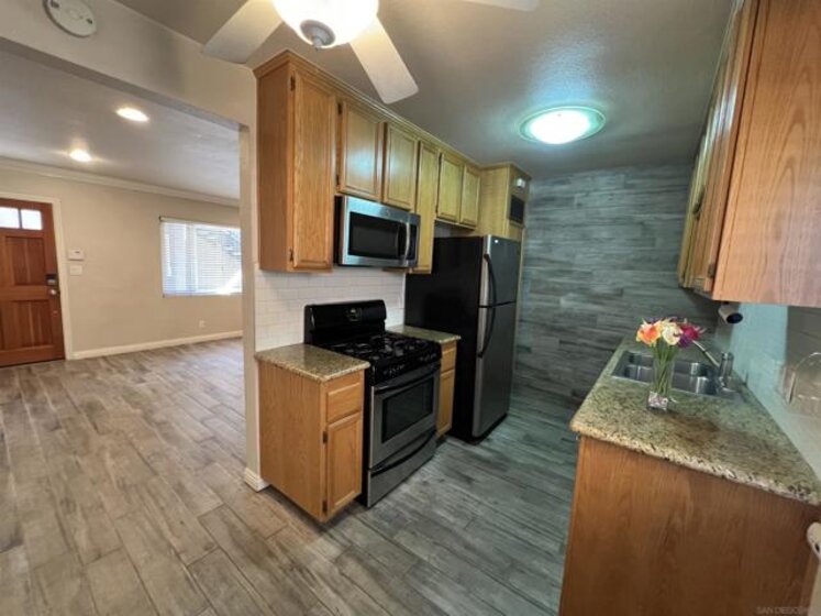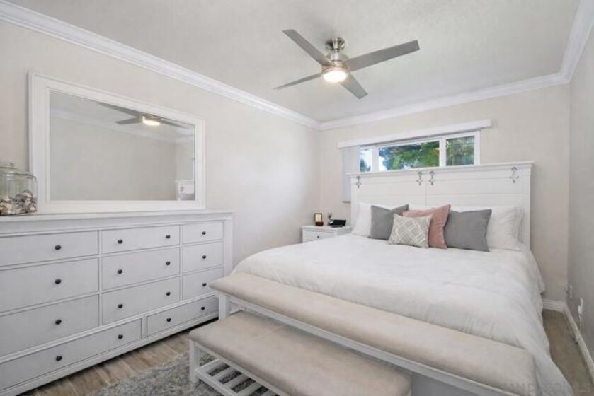 Gorgeous 2-bedroom, 1-bath ground-level end-unit condo in the heart of Pacific Beach — perfect as a primary residence, beach retreat, or income-producing investment. Bright and airy with windows on three sides, this light-filled home offers privacy, natural cross-breezes, and that effortless coastal feel. Move-in ready and meticulously maintained, the interior features beautiful porcelain tile-plank flooring, granite kitchen countertops, a newer dishwasher, recessed lighting, crown molding, pine wood baseboards, and newer dual-pane vinyl windows. The bathroom adds a fresh, modern touch, while the hardwood front door with keyless entry provides both style and convenience. Set within a charming 12-unit gated complex with lush tropical landscaping, this home offers a peaceful escape just moments from the energy of Pacific Beach. Walk three blocks to Trader Joe’s, stroll to Kate Sessions Park for sunset views, or bike to the beach for morning surf sessions. Enjoy easy access to PB’s vibrant shops, cafés, restaurants, and nightlife — all while returning home to your own quiet, secure retreat. Low HOA dues include water and trash. Convenient shared laundry facilities located on the property. One assigned parking space included. Experience the best of coastal living — where convenience, charm, and lifestyle come together.