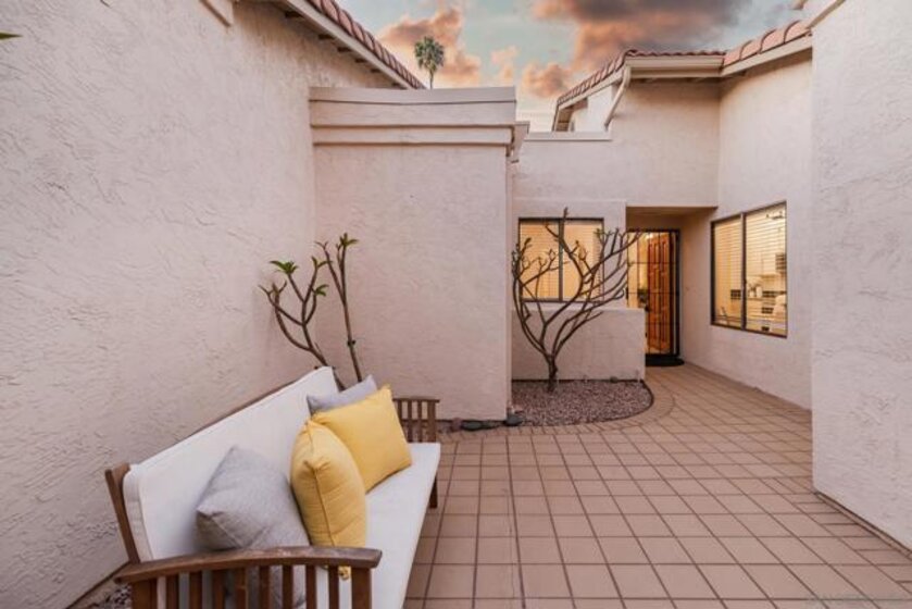 Located within the sought after 55+ community of Oaks North, this thoughtfully refreshed 2 bedroom/2 bathroom Villas offers a comfortable and well designed single level living experience. Recent updates include new interior paint, luxury vinyl plank flooring, modern lighting, and custom window treatments, creating a clean and cohesive feel from the moment you enter. Vaulted ceilings and skylights bring in an abundance of natural light, enhancing the home’s open and airy layout. The floor plan features an eat-in kitchen with granite countertops, two primary suites and two full bathrooms, offering flexibility for guests or a home office. A peaceful patio and gated courtyard provide 2 spaces for private outdoor relaxing or entertaining, while the direct access garage and dedicated laundry room add everyday convenience. Beyond the home, Oaks North is known for its vibrant and active lifestyle. Residents enjoy access to the Oaks North Community Center, which offers a wide range of amenities including a pool and spa, pickleball and tennis courts, billiards room, library, auditorium, woodworking shop, and a variety of social clubs and activities. Ideally located approximately one mile from the Oaks North Golf Course and the Rancho Bernardo Winery, and just minutes from the Rancho Bernardo Inn, shopping, and dining, this home offers both comfort and connection to the surrounding community.
