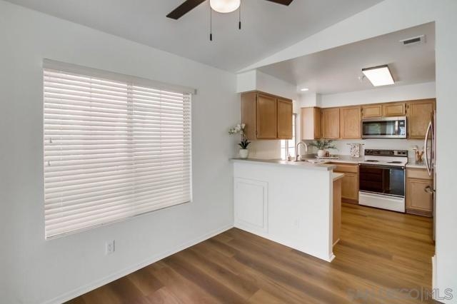 This upstairs corner condo offers privacy along with beautiful sunrise views of Battle Mountain from the balcony and stunning sunsets right from the living room. Inside, you’ll find fresh paint, new LVP flooring, and a smart layout featuring two primary suites, each with its own bathroom. The home also includes a full-size washer and dryer in the unit and a covered parking space and EV chargers nearby. There are two HOAs here. Morada is a gated neighborhood with its own private pool nearby, plus electric car chargers. Fees also cover water and trash, making life low-maintenance and cost-effective. Beyond that, residents also enjoy access to Bernardo Vista Del Lago, another gated community that feels like a resort with two pools, a spacious gym, tennis courts, walking trails, and a clubhouse. This home is VA approved and located in a quiet, well-kept community that’s close to shopping, dining, top-rated schools, and easy freeway access. It’s move-in ready and waiting for its next owner to enjoy. This home has been freshly updated with new flooring, lighting and paint, plus a great layout with two primary suites (yep, each with its own bathroom!) You’ll love having your own full-size washer & dryer, a covered parking spot, and all the perks of living in Morada, a gated neighborhood with security, a private pool + EV chargers. Even better, You also get access to Bernardo Vista Del Lago’s resort-style amenities — two sparkling pools, a big gym, tennis courts, walking trails, and a clubhouse that feels like a retreat. Low-maintenance living (water + trash included), VA approved, and close to shopping, dining, top-rated schools, and freeways.