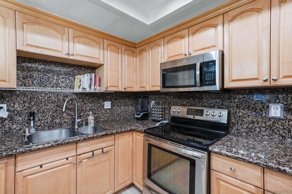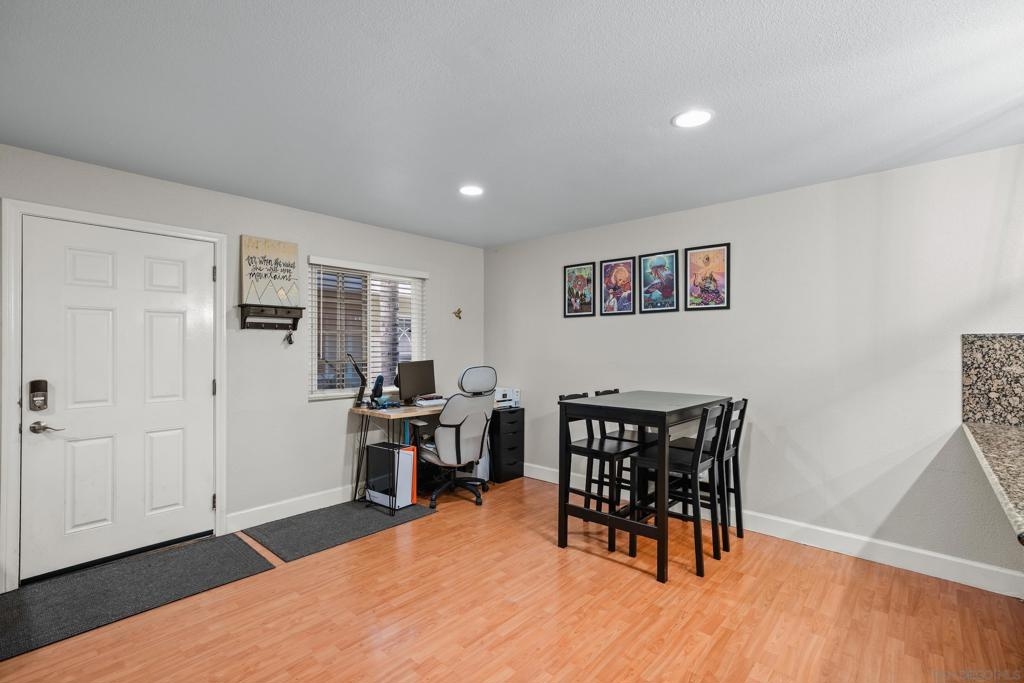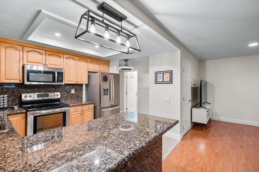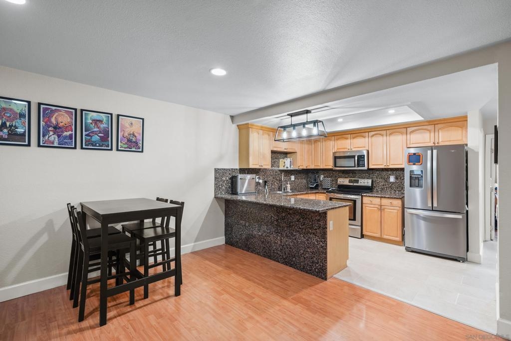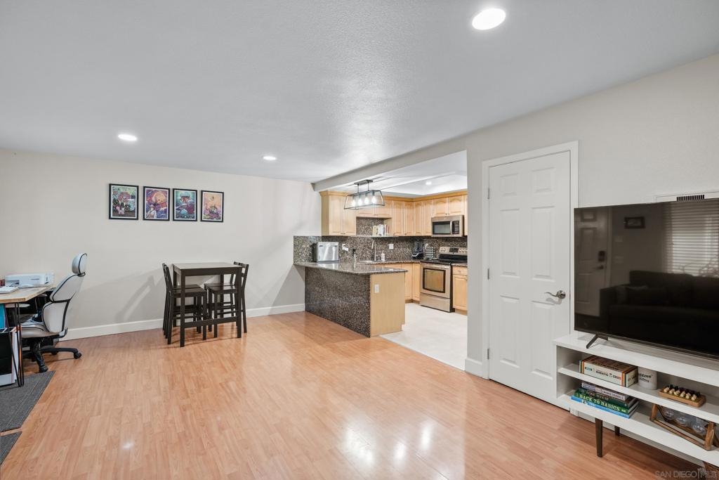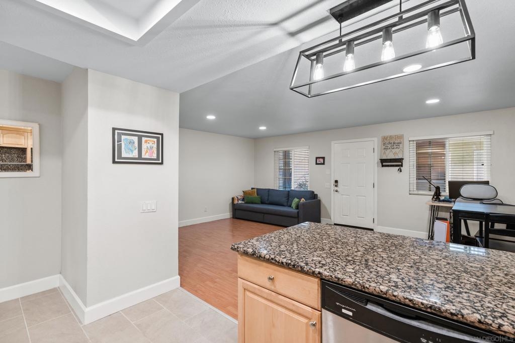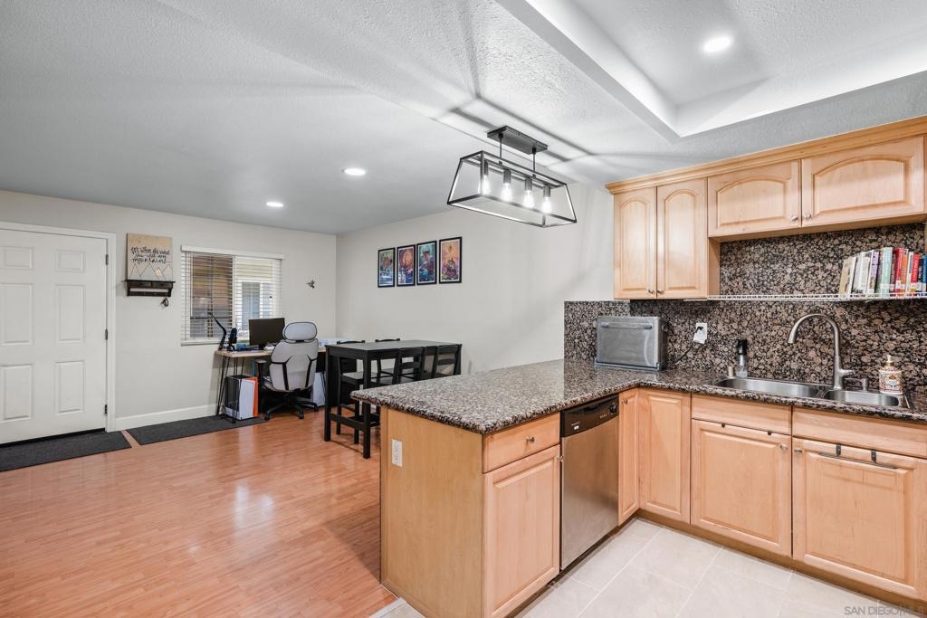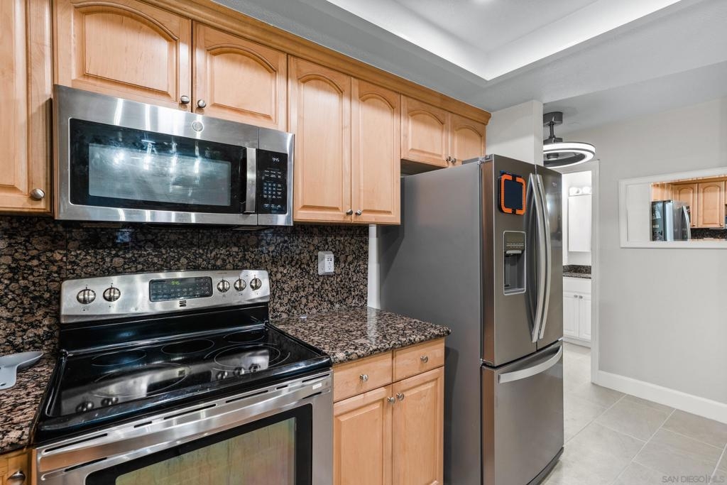 VA & FHA approved fully gated complex! Come check-out this beautiful ground-level condo with THREE parking spots! Yep - you get a 2 car tandem garage and a spot to park outside the garage. This unit has upgrades throughout - flooring, lighting, blinds...It is move-in ready. Granite tile can be found in the kitchen and full bathroom. Bedrooms are bright with sizable closet/storage space. There is a large, shared laundry facility on-site. Ideally located, minutes away from the 163, 8 and 805 freeways as well as North Island and Miramar bases. Fashion Valley is also right around the corner. We are also PET FRIENDLY!! Hurry over!