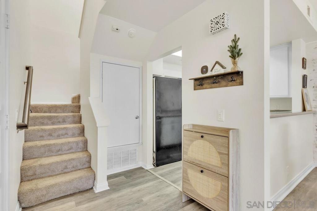 Welcome to this cozy and bright 2 bedroom 1 bathroom two level condo with an open floor plan. Features include: 1st floor vinyl flooring, recessed lights in the kitchen, retiled fire place, composite decking on the patio, cast-iron tub, newer tile in the bathroom, tamper resistant outlets, newer GFCI's, newer decorative switches throughout and newer appliances. Home includes new central A/C, in unit washer/dryer, carport parking spot and one guest spot. This community also has a fitness room, pool, spa and is in walking distance to shopping centers and multiple malls. Quick fwy access to the 8, 163 and 15.