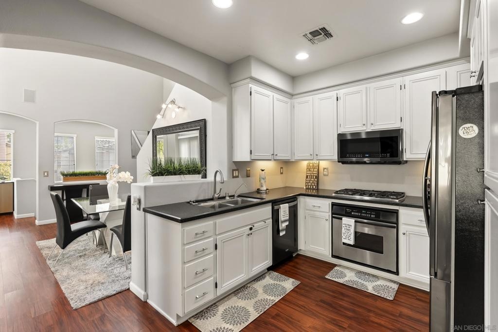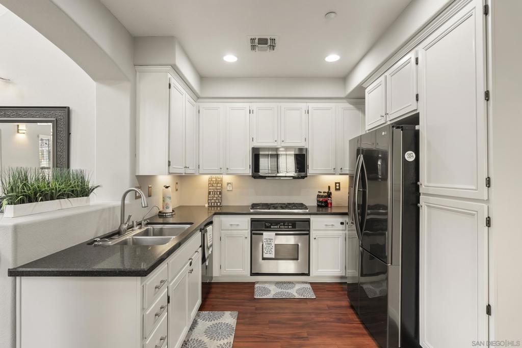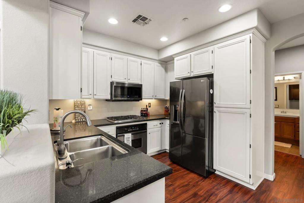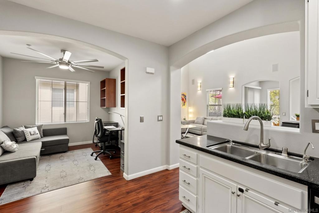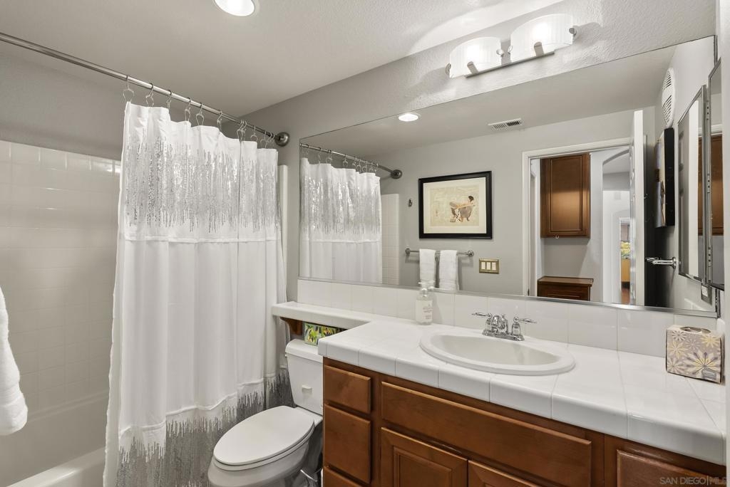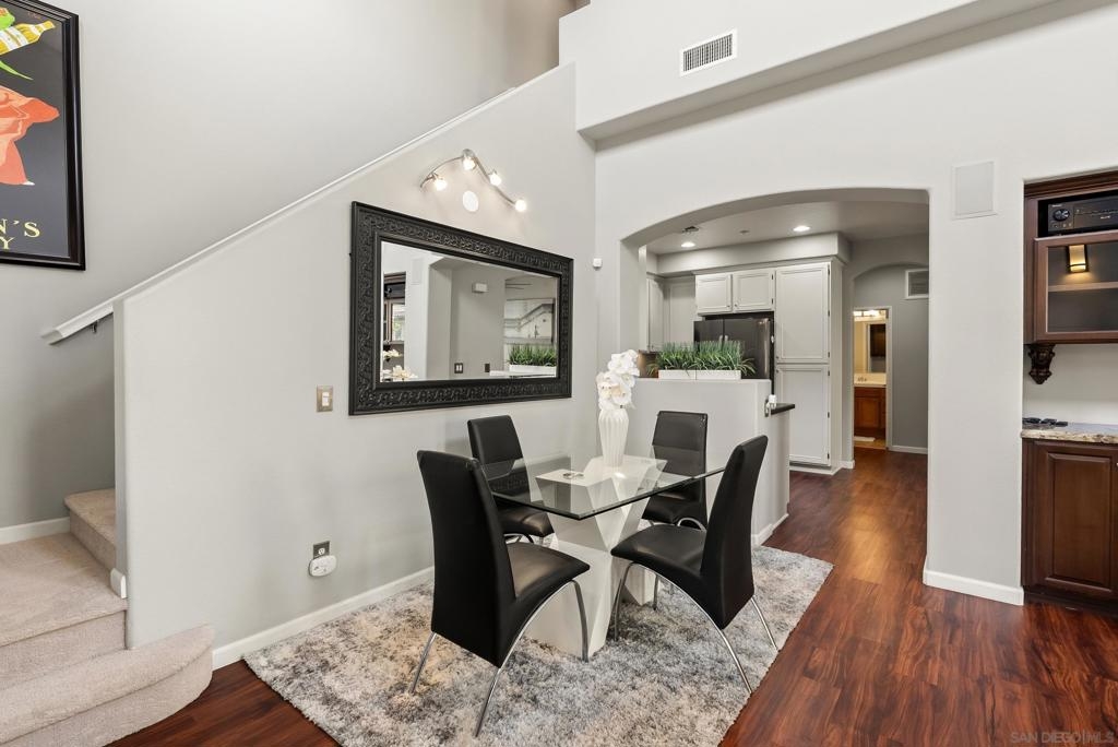 Don't miss this beautifully upgraded townhome, perfectly situated near Fashion Valley Mall, top-rated restaurants, the stadium, and major transportation hubs. This home offers both style and convenience in a gated community with meticulously maintained grounds. Featuring a spacious master suite upstairs with two walk-in closets, this bright and airy home boasts high-volume ceilings and large windows that welcome an abundance of natural light. The main level includes a second bedroom—ideal as an office or guest room as well as a full bathroom. Separate laundry room for added convenience with storage! May show for back-up offers Enjoy modern comforts such as stainless steel appliances, a smart refrigerator, plantation shutters, and a cozy fireplace. Step outside to your private balcony, perfect for morning coffee or evening relaxation. With a direct-access attached garage and a prime location, this townhome truly has it all.