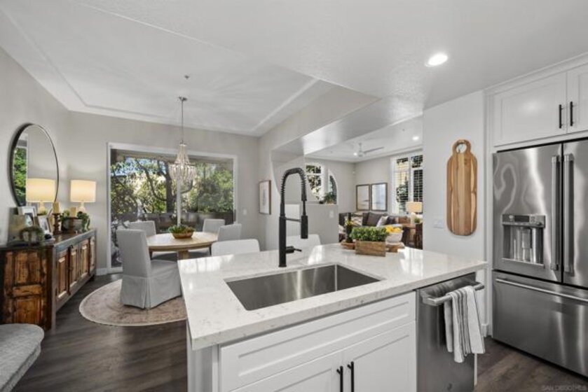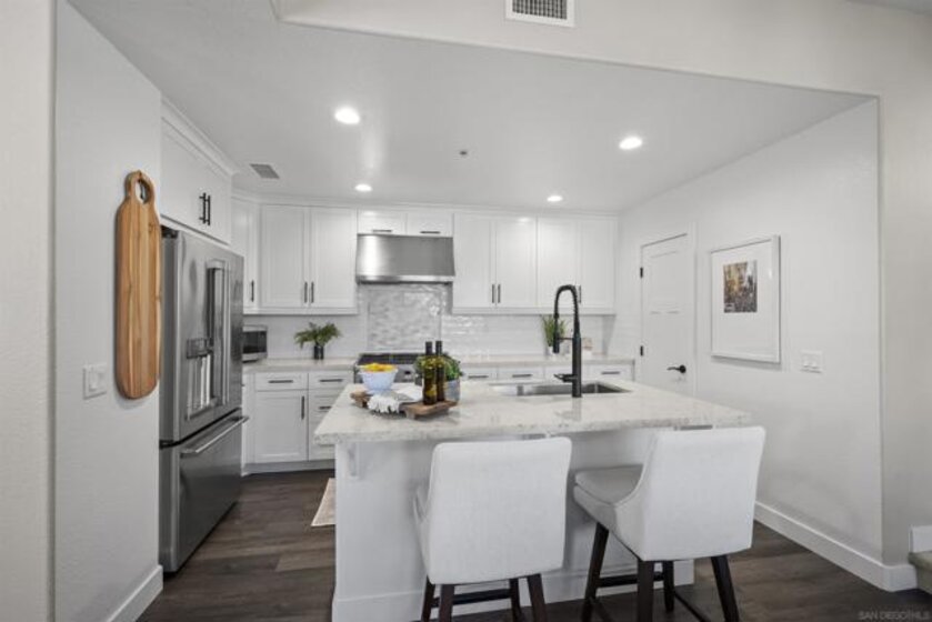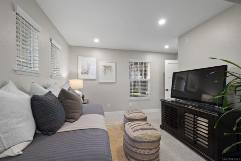 Luxury living in this rarely available, turn-key 3 bedroom3.5 bath end unit townhome in the heart of Liberty Station. This spacious home has been beautifully upgraded with vinyl wood plank flooring, Berber carpeting and shutters throughout. Gourmet Kitchen with Caesar stone Lyra countertops, custom kitchen cabinets, tiled backsplash, and GE Café series appliance package including Café refrigerator and 6-burner stove. Baths have newer cabinets, counter tops, mirrors and fixtures. Added bonus is the Halo home water purification system installed in 2024. Surrounded by trees, this home offers the utmost in privacy and green views. It's just a short walk to restaurants, cafes, shopping including Trader Joe's, the famed Liberty Public Market, movie theater, NTC Park spanning 46 acres on the waterfront, sporting club and the newly opened Cygnet theater. Minutes to downtown, airport, entertainment and all that San Diego has to offer.