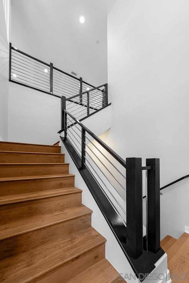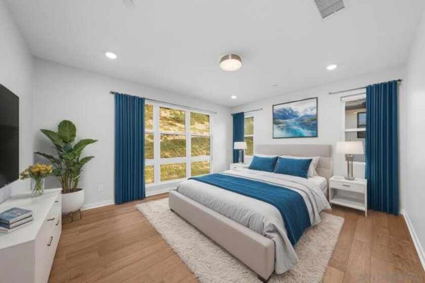 Welcome to this stunning tri-level townhome ideally nestled along the hillside, offering exceptional privacy and expansive views. This modern, spacious, and open residence features an attached two-car garage on the first level and shows like a model throughout. The living space is thoughtfully designed with premium wood flooring, abundant natural light, and seamless indoor-outdoor flow to a spacious balcony with incredible views. The sleek, upgraded kitchen is both stylish and functional, ideal for everyday living and entertaining. The second level adds a versatile bedroom with a private bathroom, a large closet, perfect for a home office, guest room, or additional living area. The upper level features two bedrooms and two bathrooms - a generous primary suite with attached bath and huge walk-in closet, and an additional bedroom with a convenient adjacent bathroom. Enjoy all of the resort-style amenities Civita is known for, including award-winning park, pools, fitness center, dog parks, walking trails, and vibrant community spaces. Unmatched in location, this home is insanely central, just minutes from Mission Bay, San Diego’s beaches, and the endless shopping and dining options of Mission Valley. Easy access to the 8, 163, 15, and 805 freeways makes getting anywhere in San Diego effortless. A rare opportunity to own a beautifully upgraded home in one of San Diego’s most dynamic and centrally located communities.