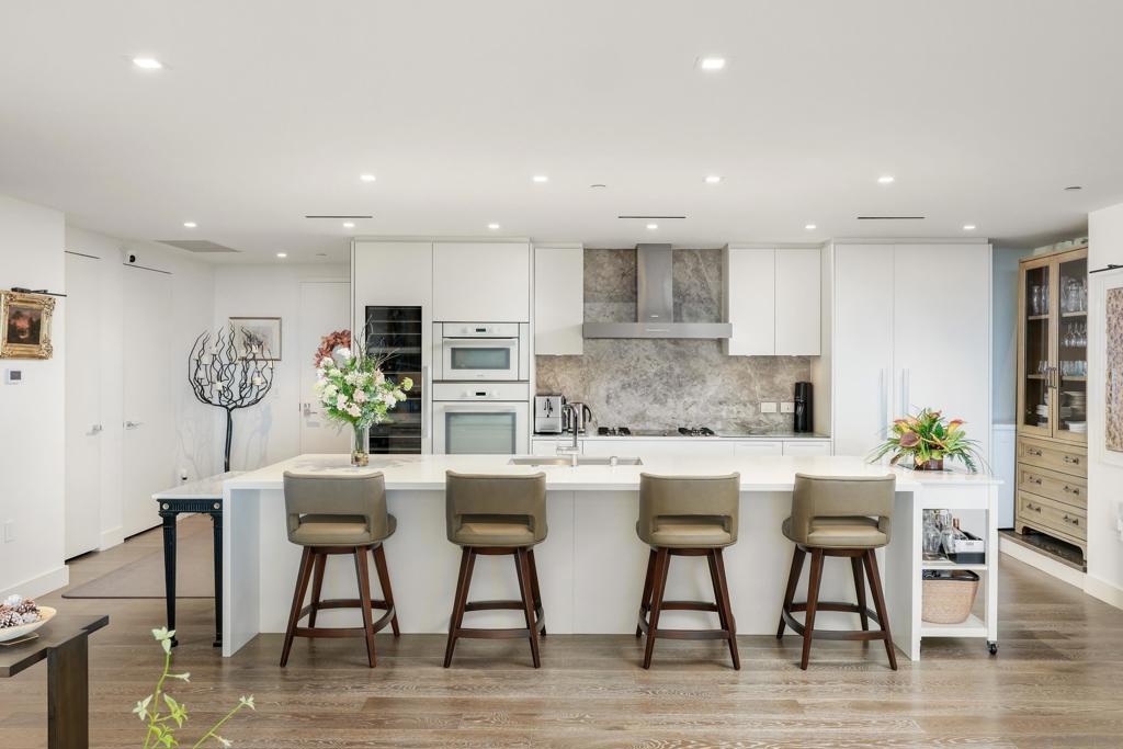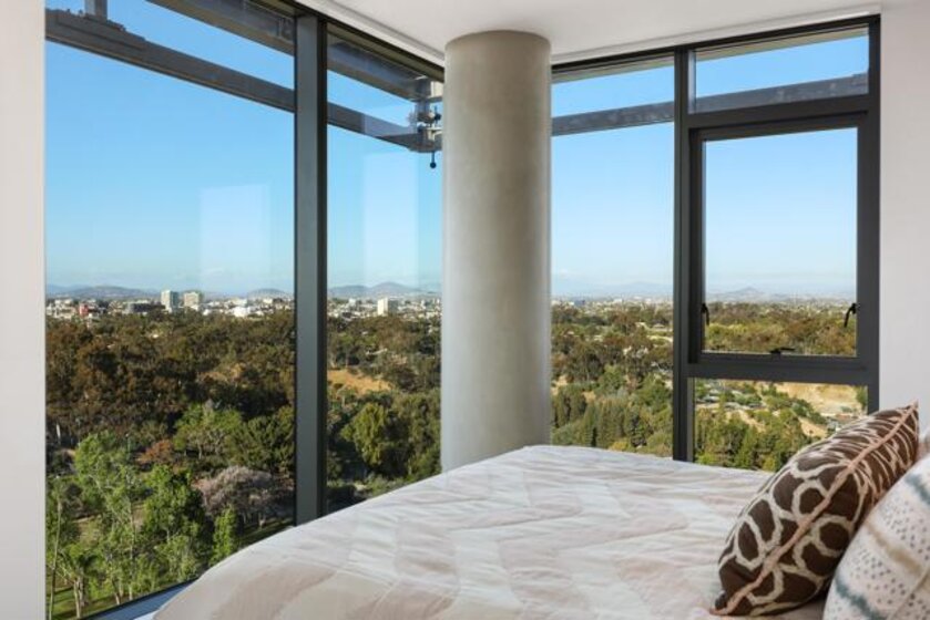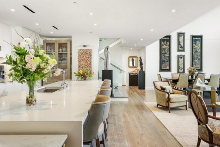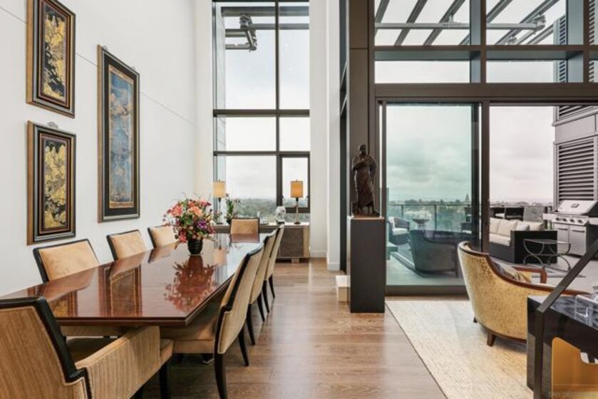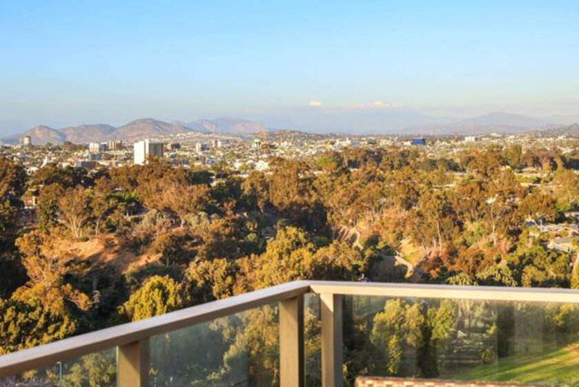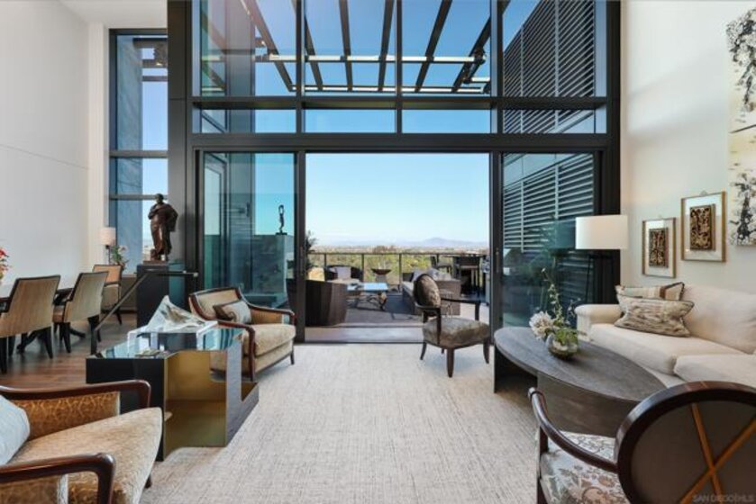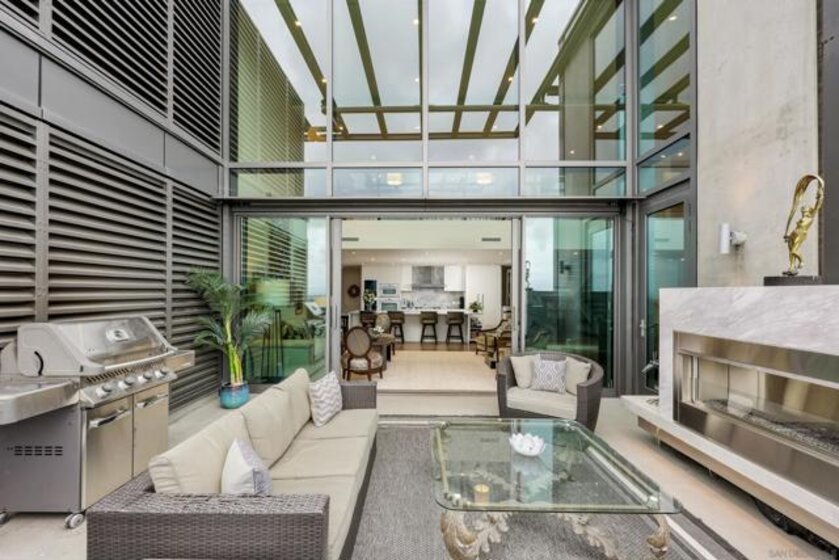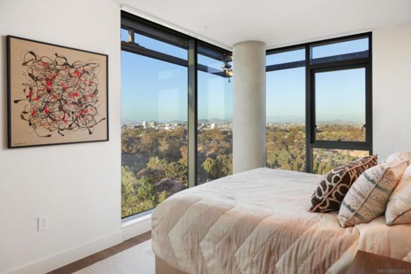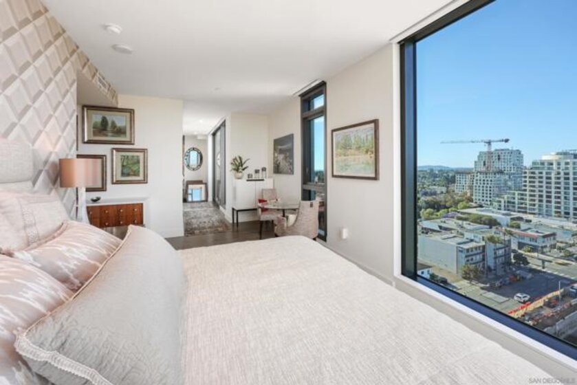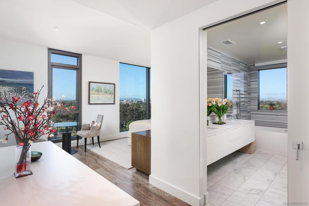Perched high above the city within The Park at Bankers Hill, Penthouse 1302 is a rare and extraordinary offering that redefines elevated living in San Diego. Arriving via a private, direct-access elevator that opens into a grand foyer, the residence immediately reveals a sense of scale and exclusivity, defined by soaring 20-foot ceilings and dramatic floor-to-ceiling glass. Designed to seamlessly integrate indoor and outdoor living, the home offers two expansive terraces, complete with a private outdoor gas fireplace, overlooking the lush, protected canopy of Balboa Park and capturing rare, unobstructed views into the iconic San Diego Zoo. With an ideal east and northeast orientation, the residence is filled with soft natural light, creating a calm yet striking atmosphere throughout. Thoughtfully appointed with refined European finishes and bespoke upgrades, the chef’s kitchen serves as a sculptural focal point, showcasing a full suite of Miele appliances, including a 4-burner gas and electric cooktop, built-in refrigerator, oven, microwave, dishwasher, wine refrigerator, and vent hood, paired with Boffi cabinetry in Arctic White and a dramatic book-matched stone backsplash, all complemented by a walk-in pantry. DuChâteau Key West Duvall hardwood floors extend throughout, enhanced by custom Lutron lighting and designer window coverings that elevate both comfort and design. The thoughtfully designed two-level layout offers a rare sense of flexibility, with one bedroom on each floor, expansive open living areas, and a dramatic upper-level loft defined by exceptional ceiling height, complemented by a spacious private study or office. Both spa-inspired suites are elegantly appointed with soaking tubs, refined finishes, GROHE fixtures, and Toto toilets, while the primary suite is further distinguished by generous closet space, including a walk-in and multiple additional storage areas. Additional highlights include Honeywell climate control, a full-size Whirlpool washer and dryer, three side-by-side parking spaces with EV charging capability, and a private storage room. The main terrace enjoys added privacy, with no shared wall with any neighboring residence. Ideally positioned just moments from Balboa Park, acclaimed dining, boutique shopping, and cultural destinations, Penthouse 1302 represents a true statement residence and a rare opportunity to own one of San Diego’s most exceptional homes in the sky.