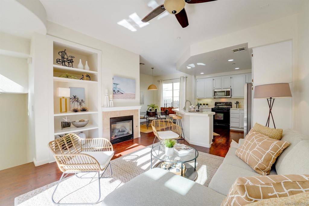 Price Improvement! VA approved! This charming and popular plan 1 Bridges condo is beautifully appointed with gleaming wood floors, freshly painted kitchen cabinets, large windows and spacious balcony. The kitchen island is perfect for entertaining. A large attached two car garage has extra storage cabinets and the home is equipped with central air conditioning. The Escala community is a gated development with two pools, spa, tennis courts, playground, dog park and a beautiful clubhouse for private events. Close to all - beaches, shopping, restaurants, downtown, trolley and freeways are within minutes. The true essence of work, live and play!