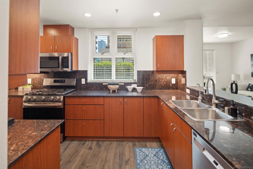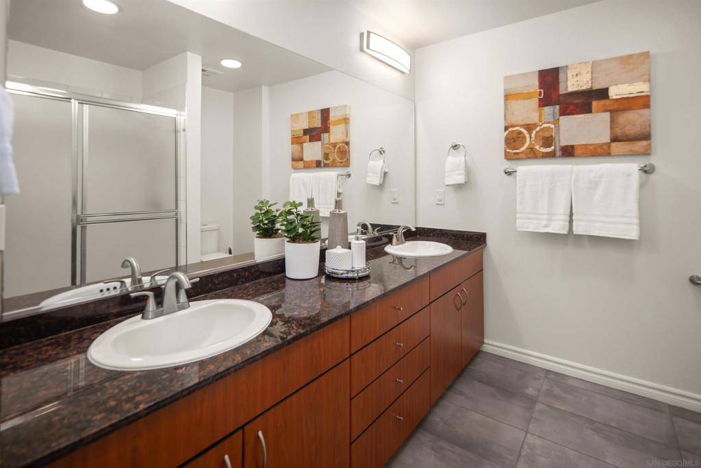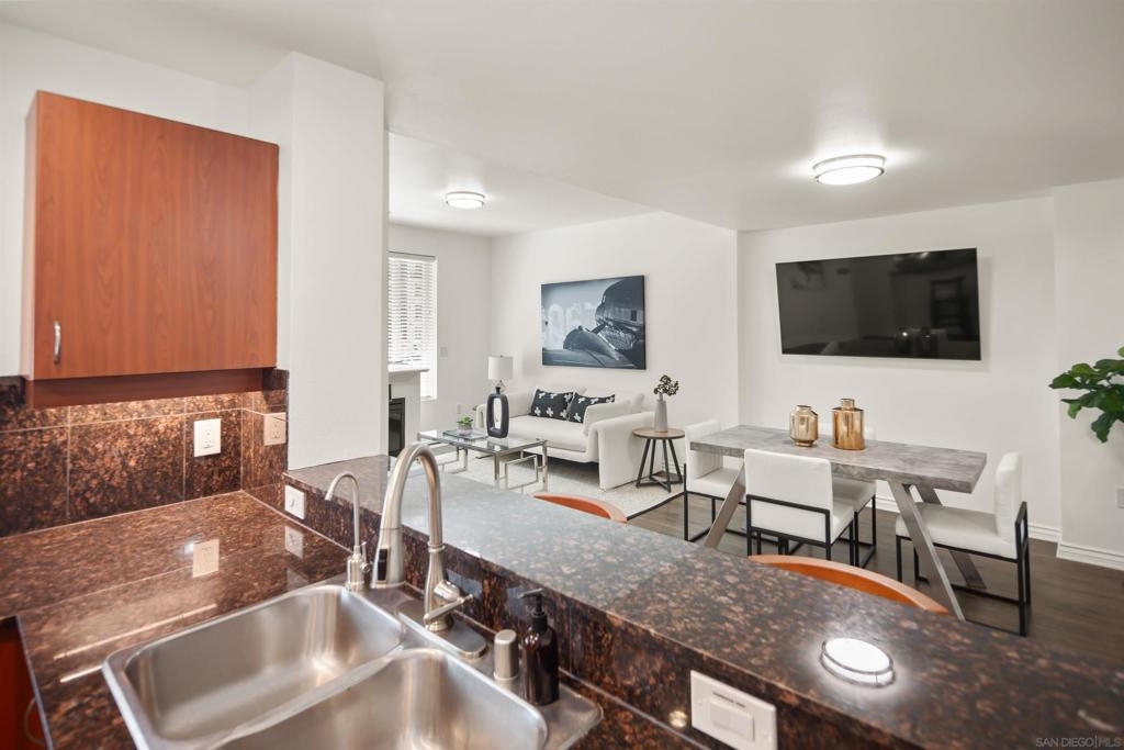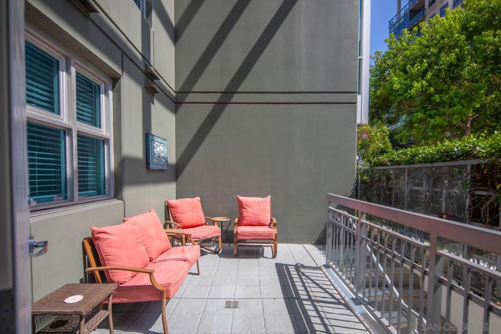 La Vita, located in Little Italy, is a highly desirable high-rise community offering top-tier amenities such as a pool, spa, fitness center, and secure underground parking. This spacious ground-floor townhouse features 3 bedrooms, 2 of which come with its own bathroom, plus a versatile flex space perfect for an office, gym, podcast studio, or media room (see floor plan - 4 rooms total). With a large patio and proximity to top dining and the Bay, this property offers endless possibilities in a vibrant neighborhood. Its unbeatable location puts the best of Little Italy right at your doorstep. The property itself is a spacious ground-floor townhouse with a private, secure walk-up entrance and a large patio, offering both privacy and convenience. There’s also a second entrance from the building’s lobby level for added ease. Inside, the first floor features an open living and dining area, a generous kitchen, a half bathroom, a laundry closet, and a large storage area under the stairs. Upstairs, you’ll find three bedrooms, two with their own bathroom. One of the standout features is the flexible media room or office space off the third bedroom, which measures over 10' x 8'. This space could be used as an office, podcasting room, home gym, media room, kids play room or even a storage area for a small business. The possibilities are endless! The first floor has newer LVP flooring, while the second level features grey tile throughout, giving the home a sleek and modern feel. This townhouse offers plenty of opportunities to customize the space to suit your needs, making it a standout in this vibrant community.