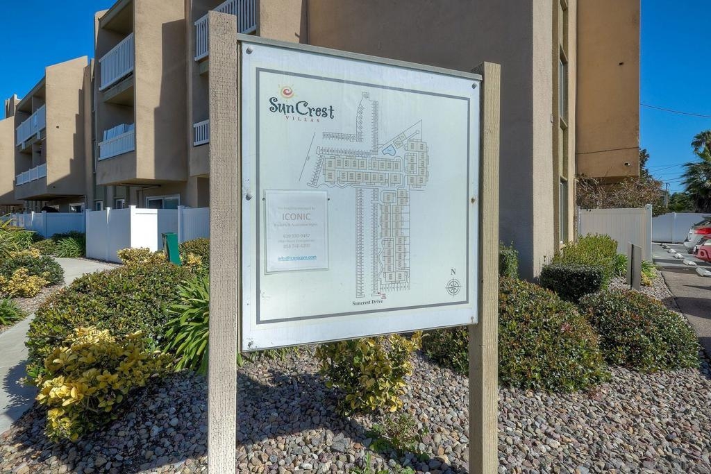 HIGHLY SOUGHT AFTER LOCATION! Suncrest Villas is a quiet, pet-friendly community tucked amongst single family homes, one block from 30th and Adams. Bordering University Heights & Normal Heights, this area is known for its hip vibe with easy access to microbreweries, eateries, coffee shops, music festivals, street fairs, and more. Leaving the neighborhood, you have easy access to 805 and 15, or go 1.5 blocks to catch one of two bus lines: a direct line to San Diego State, or head to downtown through Hillcrest or South Park… This bright, second story, 1B/1B condo boasts of upgrades including recessed lighting, new carpeting and paint, remodeled bathroom, along with granite countertops, plenty of quality kitchen cabinetry, 4-paned doors with lever handles, dual paned windows, and a slider off of the living room, leading to the balcony. The HOA is responsive, with one of the lowest fees you'll find for this VA and FHA approved community that includes water, hot water, sewer, and trash, as well as a host of amenities - community pool, sauna, BBQ and picnic area, fitness center and club house. The parking space is close to the unit, and the laundry room is right around the corner on the same floor. Overall, this home offers a desirable living environment, centrally located, convenient amenities, and upgraded features, making it an attractive option for potential buyers or renters seeking a vibrant and walkable community in the San Diego area.