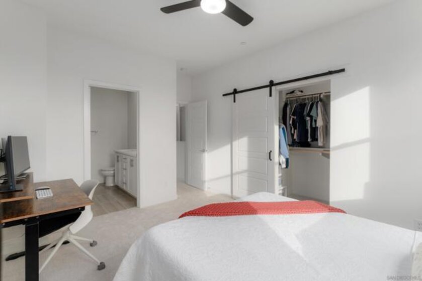 Sunset west-facing views! 2022 build. Very rare to have views at this price point — truly the best deal in Civita! Welcome to 3045 Marquee Way, located in the highly desirable Marquee at Civita community in the heart of Mission Valley. This modern 2022-built home features one bedroom plus a spacious loft and showcases premium upgradesthroughout, including enhanced flooring, designer lighting, sleek countertops, high-end appliances, a large closet, and generous storage space. Enjoy the convenience of an oversized one-car garage and the exceptional lifestyle that Civita is known for. Residents have exclusive access to resort-style amenities such as a state-of-the-art recreation center, two sparkling pools, a two-story fitness center, scenic walking and hiking trails, and a beautifully designed 16-acre park. Nearby parks, shopping, dining, and additional trails make this location as practical as it is desirable. Don’t miss this rare opportunity to own a view home at an unbeatable value in Civita!