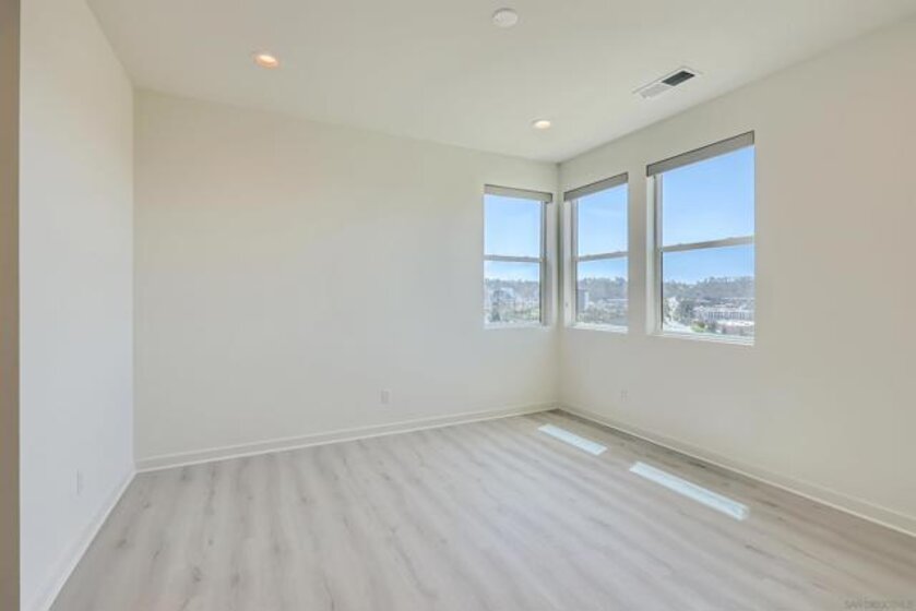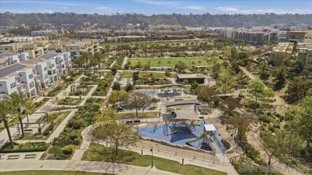 Stunning Corner Townhome in Marquee at Civita with Panoramic Mission Valley Views! Rare opportunity to own a 3-bedroom, 2.5-bath corner townhome in Marquee at Civita, one of Mission Valley’s most sought-after neighborhoods. Built in 2022, this light-filled residence offers panoramic views, a premium corner location, and a highly desirable floor plan that rarely becomes available in this community. Designed for modern living, the home features approximately 1,570 square feet of thoughtfully upgraded interior space, including luxury vinyl plank flooring, tiled bathrooms, upgraded lighting, and custom light-filtering roller shades. The modern kitchen is beautifully appointed with quartz countertops, full-height backsplash, and premium stainless steel appliances, while the spacious private balcony offers the perfect place to relax and enjoy the views. An oversized attached 2-car garage includes epoxy flooring, ceiling-mounted storage racks, and a flexible bonus space ideal for storage, a hobby room, or home gym. Additional conveniences include an upper-level laundry area with full-size washer and dryer. This smart home also allows you to control the front door, garage, lighting, and A/C directly from your smartphone. Residents of Civita enjoy access to resort-style amenities including pools and spas, a two-story fitness center, parks, play areas, a community garden, and splash pad, all just minutes from shopping, dining, Fashion Valley, downtown San Diego, and major freeway access.