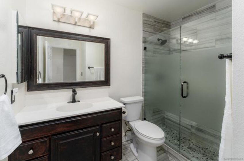 *New Windows* *2-Car Private Garage* *Convenient Location* Welcome to 3207 Midway Drive #104, a rare top floor condo that blends comfort, privacy, and exceptional value in the heart of San Diego’s Midway District. Updated 2BR/2BA condo in the heart of the Midway District, priced to sell at $549,000. This upgraded, move in ready home features an open floor plan, a spacious kitchen, dedicated dining area, breakfast bar seating, and wood-like porcelain tile flooring throughout. New windows enhance natural light, energy efficiency, and overall quietness. The expansive primary bedroom offers an ensuite bathroom, while the secondary bedroom includes a walk-in closet for excellent storage. Additional conveniences include in unit laundry, a private balcony/patio with storage, and only one shared wall for added privacy. A major highlight is the oversized 2-car private garage which is a rare find in this neighborhood and a valuable asset for parking and storage. The well-kept community offers a pool, spa, community laundry, and guest parking. Close to bike lanes and transit, the property is located minutes from Point Loma, Liberty Station, Mission Bay, Ocean Beach, Old Town, shopping, dining, and freeway access, this home offers exceptional central convenience and coastal proximity. Ideal for first-time buyers, downsizers, or investors seeking strong value, meaningful upgrades, and a highly functional layout. This one is priced to move and certainly won’t last. Welcome to 3207 Midway Drive #104, a rare top floor condo that blends comfort, privacy, and exceptional value in the heart of San Diego’s Midway District. Priced to sell at $549,000, this move in ready residence offers meaningful upgrades and one of the best opportunities in the area for buyers seeking convenience and coastal proximity. Step inside to an inviting open floor plan featuring a large kitchen, dedicated dining area, breakfast bar seating, and hard-surfaced, wood-like porcelain tile flooring throughout. The home spans 2 bedrooms and 2 bathrooms across 976 sq. ft., enhanced by new windows that improve energy efficiency, natural light, and quietness. The expansive primary bedroom includes an ensuite bathroom, while the spacious secondary bedroom features a walk-in closet, offering excellent storage. Enjoy everyday convenience with an in-unit laundry closet and a private balcony/patio with an additional storage closet. One of the standout benefits of this property is the oversized, private 2-car garage, a true rarity in this neighborhood and an invaluable bonus for parking and storage. As a top floor unit with only one shared wall, the home provides an elevated sense of privacy within a well-kept community that includes a sparkling pool, spa, community laundry and guest parking. The location is unbeatable: just minutes from Point Loma, Liberty Station, Mission Bay, Ocean Beach, Old Town, shopping, dining, and freeway access. Whether you're a first-time buyer, downsizer, or investor, this home delivers upgrades, functionality, and a central coastal lifestyle. With its rare garage, new windows, and desirable layout, this condo is priced to move and certainly won’t last. Building is VA approved.