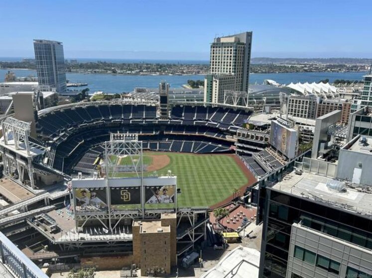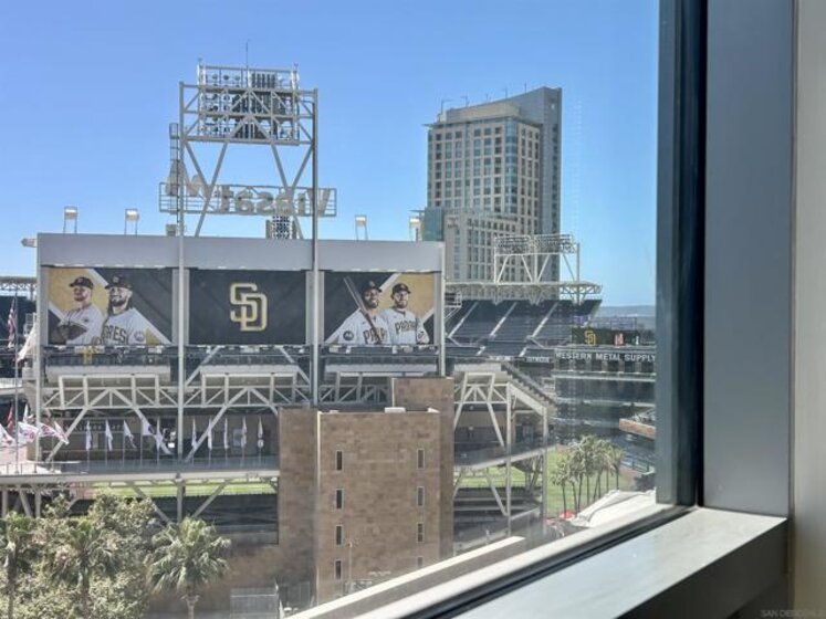 Experience elevated urban living in this stunning 2-bed/2-bath residence at ICON building, one of Downtown San Diego’s most sought-after high-rises. Situated on the 9th floor, this corner unit with SouthWest exposure offers captivating views of Petco Park along with scenic water views. Featuring an open-concept layout with floor-to-ceiling windows, the home is filled with abundant natural light and refreshing San Diego Bay breezes. The modern kitchen showcases sleek cabinetry, granite countertops, and stainless steel appliances—ideal for both everyday living and entertaining. The spacious primary suite offers a peaceful retreat with ample closet space and a spa-inspired bathroom. Additional highlights include a generously sized private balcony, in-unit laundry, and one assigned parking space in the secure garage at convenient Level P1. Residents of ICON enjoy 24/7 concierge service, private underground parking, and resort-style amenities including a state-of-the-art fitness center, movie theater, clubhouse, and the iconic rooftop Skybox with stadium seating and direct views into Petco Park. The rooftop also features a lounge area, BBQ terrace, and sweeping Downtown skyline views along with scenic views of the Bay and Coronado Bridge. Ideally located in East Village, adjacent to the vibrant Gaslamp Quarter, this home places you steps from premier dining, nightlife, shopping, and the waterfront. Whether as a full-time residence, second home, or investment opportunity, this exceptional condo embodies the best of Downtown San Diego living.