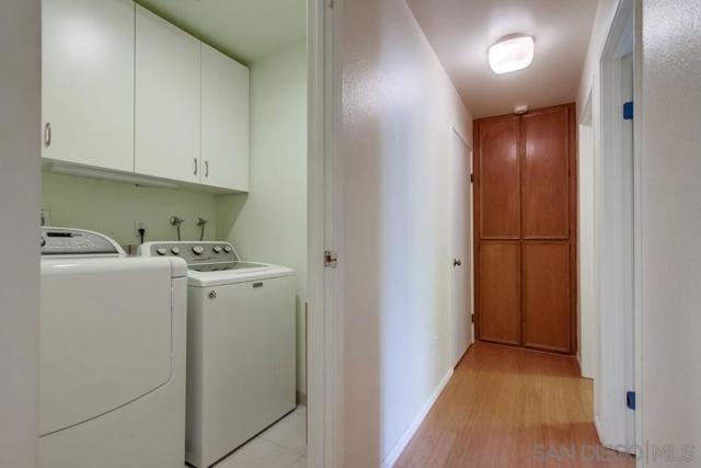 Step into this bright and inviting first-level unit, featuring hard surface flooring and tasteful upgrades throughout. Floor-to-ceiling windows fill each room with natural light, while ceiling fans provide year-round comfort. The upgraded kitchen includes matching white appliances, a built-in microwave, and plenty of cabinet space. The living area offers custom built-in cabinetry for stylish and functional storage. Enjoy a spacious primary bedroom complete with a well-organized walk-in closet and en suite bathroom. The secondary bedroom is thoughtfully designed with a full wall of office cabinetry and dual desks — perfect for working or studying from home. Additional highlights include an in-unit laundry room, a relaxing front patio, and an assigned gated parking space. The centrally located community offers great amenities, including a sparkling pool and spa. In the heart of Serra Mesa, this move-in-ready home combines comfort, convenience, and style — a must-see property you’ll love to call your own!