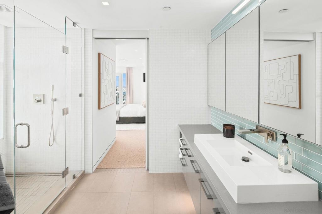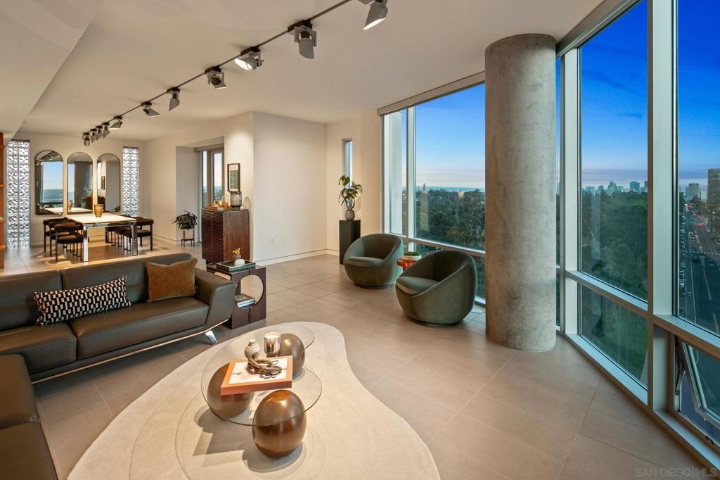 Live “on top of the world” in this full-floor residence at Park One on 6th & Upas. Stunning Balboa Park, downtown, and bay views from every main room. Redesigned with high-end finishes, the home features a gourmet kitchen with gas cooking, updated appliances, and wine chiller; remodeled baths; custom flooring and lighting; walk-in closets; and a den/office with built-ins. Expansive terrace off the dining, and primary suite plus private terrace off the second bedroom. Private elevator entry, in-unit laundry room, private trash chute, and abundant storage. Gated complex with underground parking, side-by-side spaces with storage and EV charger. One residence per floor, unparalleled privacy and location across from Balboa Park. Perched at the corner of 6th and Upas, this exceptional home captures breathtaking views in every direction, lush Balboa Park greenscape to the southeast, vibrant city and bay panoramas to the southwest, and peaceful north-facing views from the secondary bedroom. Floor-to-ceiling windows frame these views from every main living area, with an expansive terrace off the dining room, and primary suite, plus a private terrace from the second bedroom. Thoughtfully redesigned by its current owner, this residence features a beautifully remodeled kitchen and baths, designer lighting, custom flooring, and a generous walk-in closet. The gourmet kitchen includes gas cooking, high-end upgraded appliances, and a wine chiller, perfect for entertaining. A den or office nook with built-in shelving offers a smart and stylish workspace. Additional conveniences include a laundry room with side-by-side appliances, private trash chute, and abundant in-unit storage. Within this gated, boutique building, residents enjoy secure underground parking with side-by-side spaces, additional storage, and EV charging. With only one residence per floor, you’ll enjoy the utmost privacy and exclusivity. Your private elevator opens directly into your living room, a signature feature of Park One. Balboa Park is literally at your doorstep, with Banker’s Hill’s vibrant dining, shopping, and cultural scene just steps away. Experience the best of urban luxury and park-side tranquility, it doesn’t get better than this.