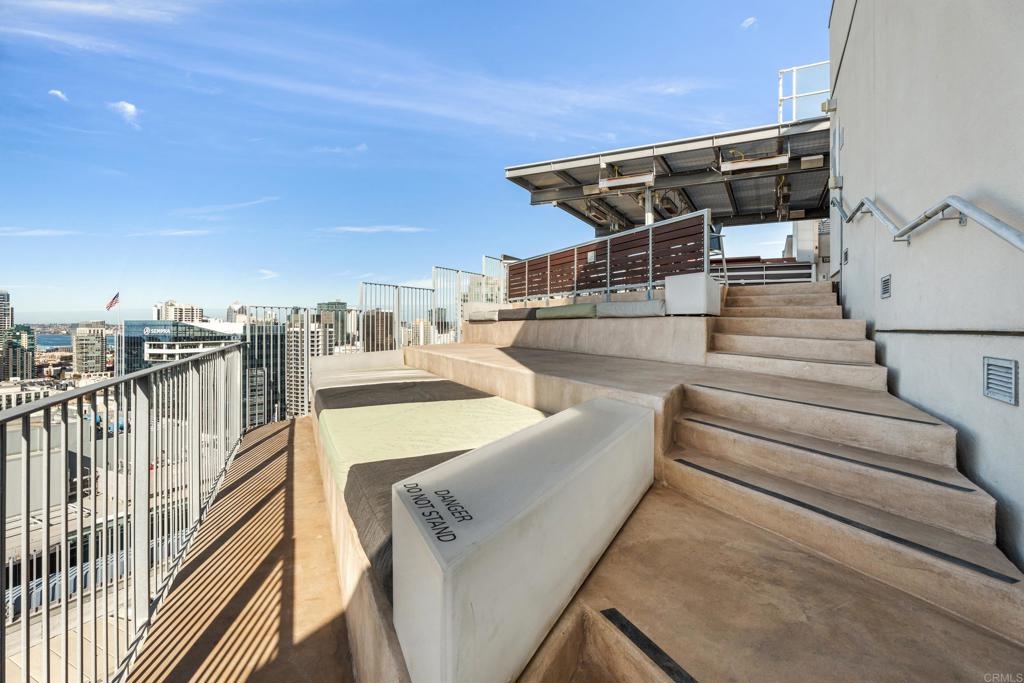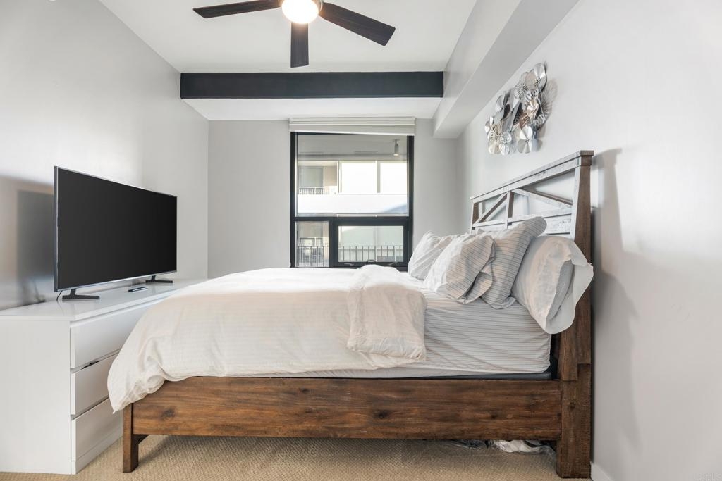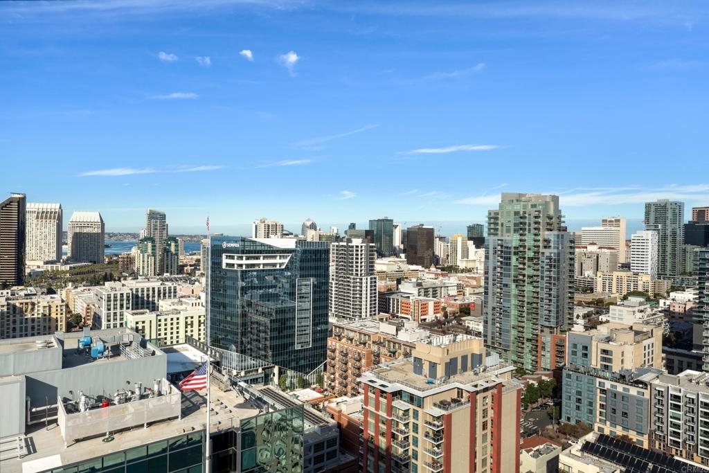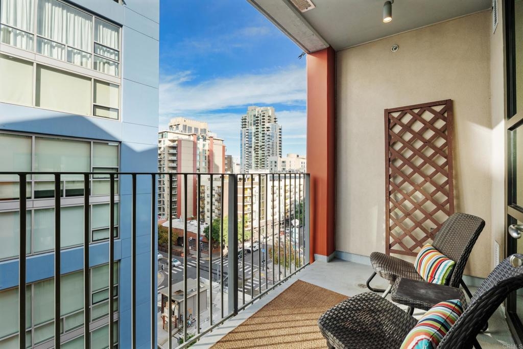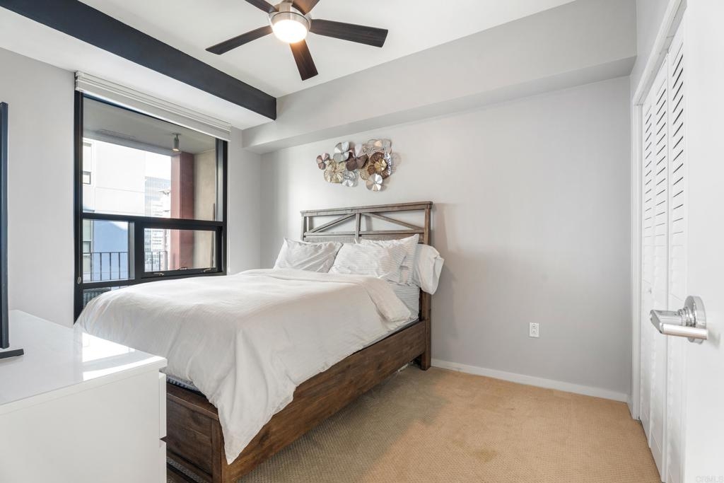 Downtown San Diego living! Ideally located in the popular Icon Building in East Village, enjoy the views/amenities in your new home. Super convenient, secured with an underground, permitted parking space right off street level. As you enter this nicely maintained one bedroom, one full bath condo, enjoy the open and bright spaciousness of the unit, with a wonderful kitchen, complete with refrigerator, microwave, dishwasher, gas stove and oven (convection too), pantry room, laundry closet with washer and dryer that all convey. Some amenities of the Icon building are a recently renovated lounge area with a full kitchen (available to reserve/rent) and a rooftop skybox with BBQs overlooking Petco Park. Enjoy the 1700 square foot gym and common areas including Community theater room with raised seating, featuring 135 inch HD screen, WiFi, Direct TV, Cox Cable, and Netflix capabilities. The renowned Icon Building has 24-hr front desk security and secure mail and package facilities. There are tons of restaurants, bars, and convenience stores just a short walk away. There is an Albertsons and a Ralphs supermarket about 10 minutes away on foot, and a Grocery Outlet just 2 minutes from your door. The Gaslamp Quarter is only a 10-minute walk, so there’s no need to drive or Uber to your favorite spots. The amenities at Icon are amazing! There’s a fully equipped gym, a common area with a full-size kitchen, TVs, couches, and tables for reunions, conferences, or meetings. The views are incredible—you can see the San Diego Harbor, Mexico, Coronado, Point Loma, and even PETCO Park. Watching Padres games or concerts from the rooftop is a huge bonus! Security here is top-notch, with roving watch standers checking the whole complex (and its surroundings) every 30 minutes. Cleaning staff are constantly maintaining all areas of the building, keeping everything spotless. The condo has a partial view of 10th Avenue, and the balcony is perfect for enjoying a quiet Sunday morning with a cup of coffee. You never had to turn on the A/C or heater, which keeps the electricity bill under $100 a month. The HOA fees cover water, gas, trash, and high-speed Wi-Fi (Google Fiber Webpass). The thick, soundproof windows also block out any noise from games, concerts, or the streets. See it to believe it!
