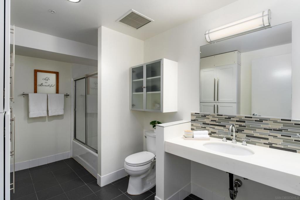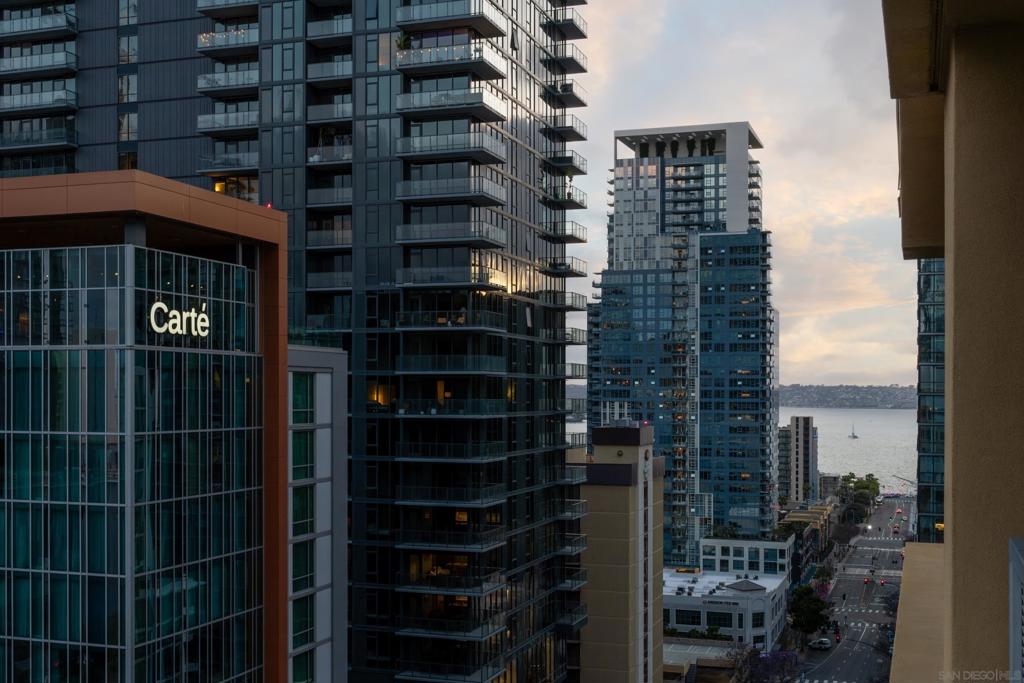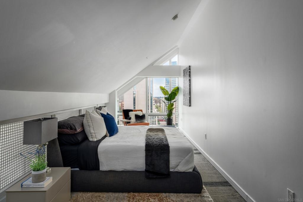 Sleek urban Penthouse in the heart of Little Italy! Perched on the top floor of 350 W Ash, this sky-high sanctuary offers panoramic views from the bay to the city skyline. This corner unit features floor-to-ceiling windows that flood the open-concept living space with natural light, while the oversized wraparound patio space is perfect for entertaining, relaxing and taking in the sunset - it truly feels like your own private rooftop escape. The kitchen features modern cabinetry, stainless steel appliances, and an eat-in bar that flows seamlessly into the living and dining areas. The upstairs primary retreat is thoughtfully separated for privacy and ocean views. The in-unit laundry, two side-by-side secured parking spaces, and separate assigned storage unit add incredible convenience to this one-of-a-kind property. Just steps to Little Italy's renowned dining, cafes, boutiques, and the weekly farmer's market - this is downtown living at its best, mixed with the lifestyle you never knew you needed.