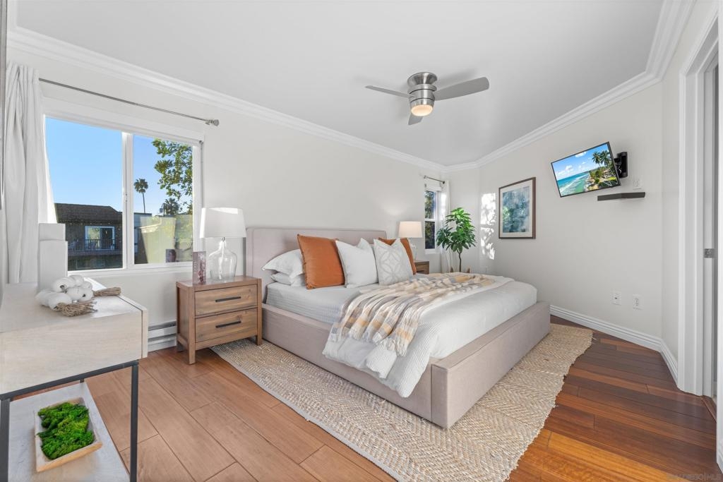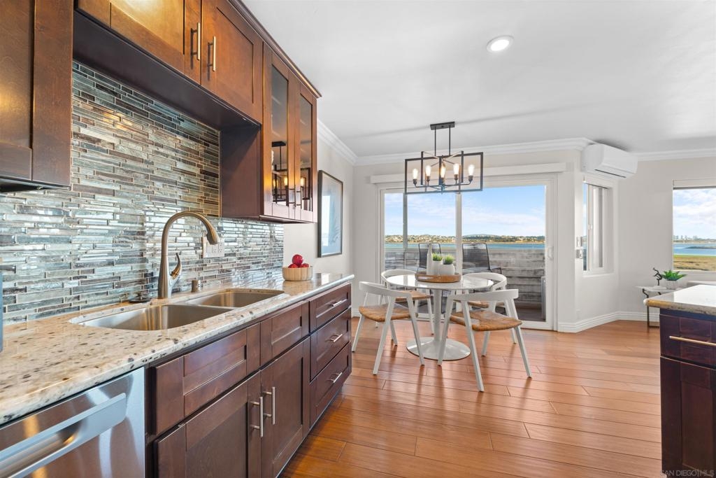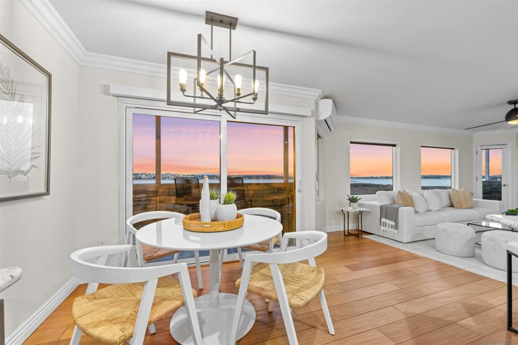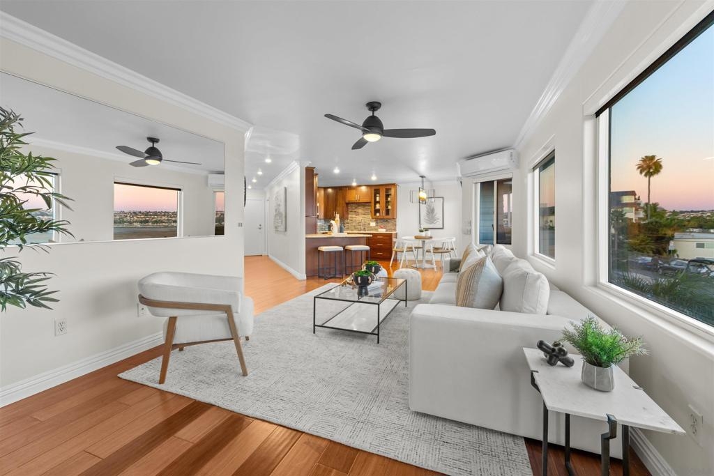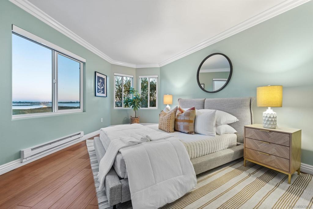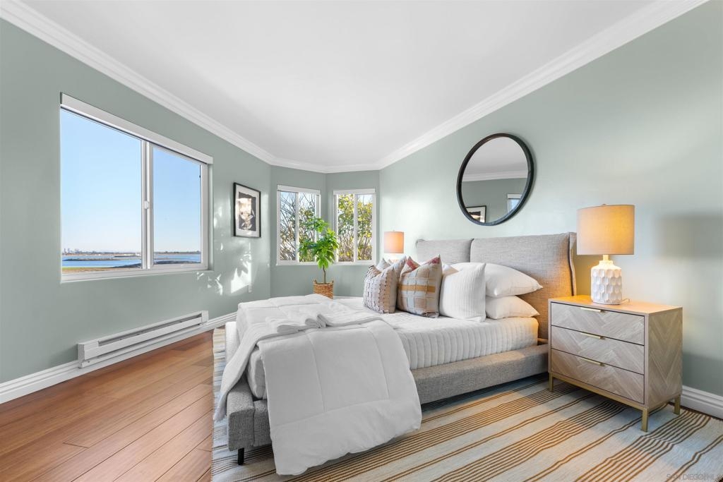 Turn-key, Remodeled, and jaw-dropping Panoramic Views of Mission Bay and the San Diego skyline! Wake up to the stunning sunrise over Mission Bay and wildlife estuary, or enjoy the nightly SeaWorld fireworks and dazzling city lights!! This 3BR 2BA corner-unit spans over 1,369 sq ft, with an open floor-plan flowing from the living room, family room, dining area, and open kitchen. 2 water-front balconies provide ample outdoor living and serene relaxation space. Other luxurious features include: remote electric blinds, gas fireplace, high end showers, 2 walk-in closets, 2 garaged parking spaces, full sized washer and dryer (in-unit)! Only 10 units in this fully gated complex, offering a quaint, and boutique community feel! This remarkable home is a testament to stylish and warm water-front living in one of California's most sought-after locations.