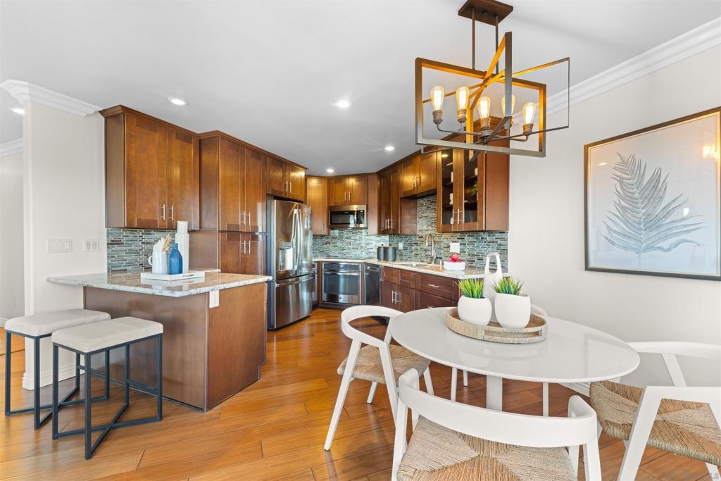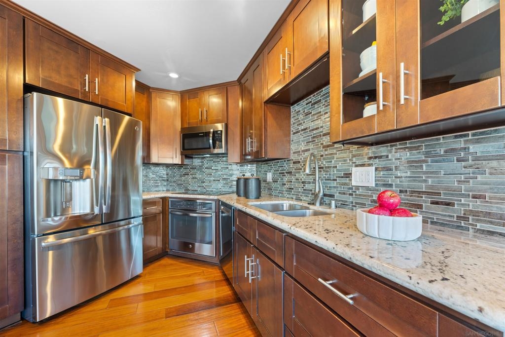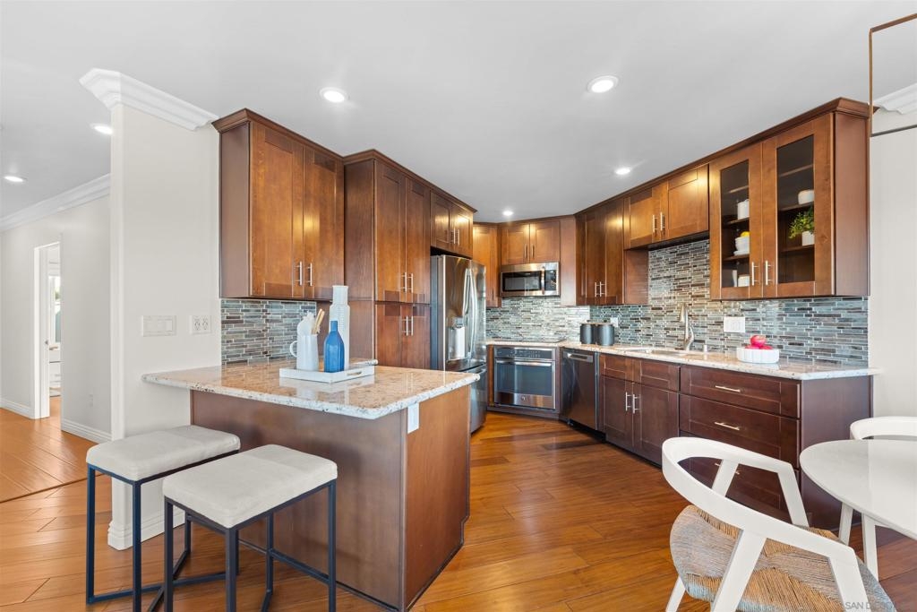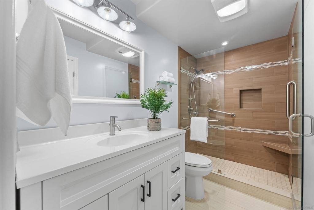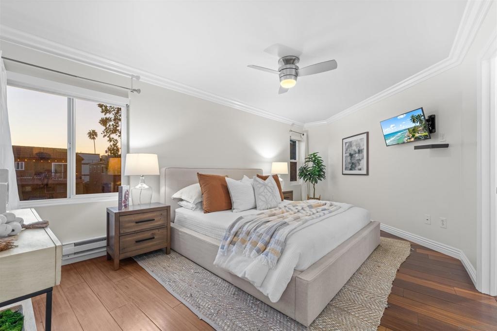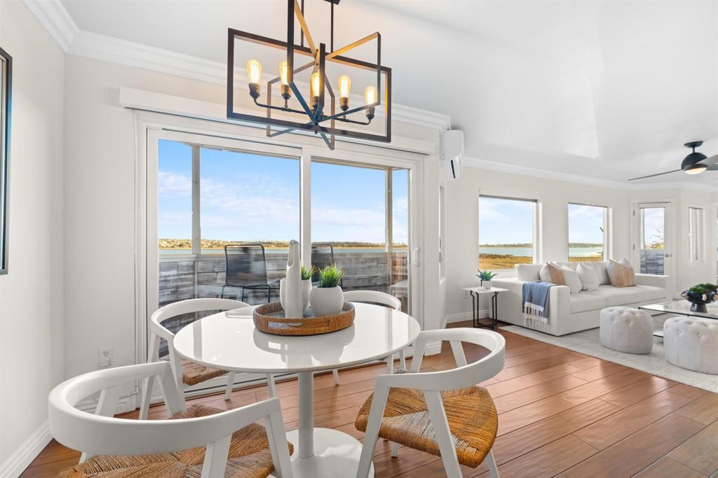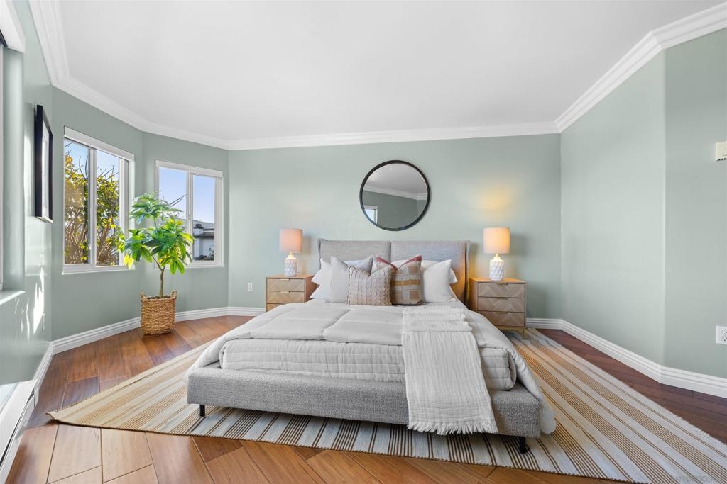 Turn-key, Remodeled, and jaw-dropping Panoramic Views of Mission Bay and the San Diego skyline! Wake up to the stunning sunrise over Mission Bay and wildlife estuary, or enjoy the nightly SeaWorld fireworks and dazzling city lights!! This 3BR 2BA corner-unit spans over 1,369 sq ft, with an open floor-plan flowing from the living room, family room, dining area, and open kitchen. 2 water-front balconies provide ample outdoor living and serene relaxation space. Other luxurious features include: remote electric blinds, gas fireplace, high end showers, 2 walk-in closets, 2 garaged parking spaces, full sized washer and dryer (in-unit)! Only 10 units in this fully gated complex, offering a quaint, and boutique community feel! This remarkable home is a testament to stylish and warm water-front living in one of California's most sought-after locations.