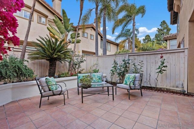 Welcome to this beautifully updated 3-bedroom, 2.5-bath townhome located in the heart of Carmel Valley. This home is walking distance to top ranked elementary, middle, and high schools, and offers easy access to shopping, dining, parks, the library, and beaches. Tucked into a quiet interior location within the sought-after Montemar community, this townhome offers tranquility, abundant natural light and convenience. Inside, tile flooring flows seamlessly through the main living areas, where plantation shutters and abundant natural light create a warm and welcoming atmosphere. The spacious living room centers around a gas fireplace and opens to the dining area, offering an ideal space for both everyday living and entertaining. The adjacent kitchen has been thoughtfully updated with sleek European-style cabinetry, granite countertops, stainless steel appliances, and functional pull-outs that blend style with practicality. Just beyond, sliding glass doors open to a private, hardscaped patio surrounded by a blooming rose garden. This inviting outdoor lounge area is ideal for unwinding, enjoying the sunshine, and taking in the cool coastal breeze. A generous powder room and generous under-stair storage complete the main level. Upstairs, newly installed carpet enhances all three bedrooms. The primary suite boasts vaulted ceilings, dual closets, and backyard views. The en-suite bath offers a dual-sink vanity, tub and shower combo, and private water closet. Down the hall, two additional bedrooms share a well-appointed full bath. One of these bedrooms includes a built-in desk and shelving, ideal for a home office or study space. Residents of Montemar enjoy access to a community pool, spa, and tennis courts, all with low HOA and Mello-Roos fees, plus a new roof installed May 2025. With an unbeatable central location and thoughtful updates throughout, this townhome truly offers the best of Carmel Valley living.