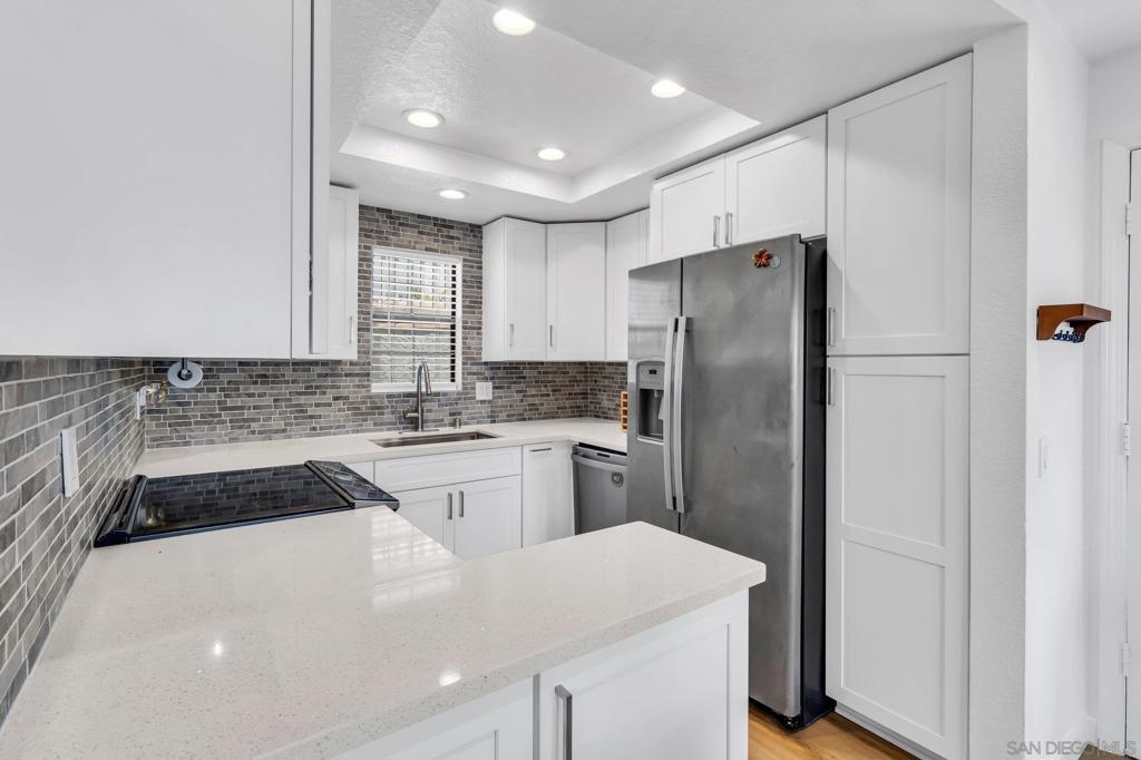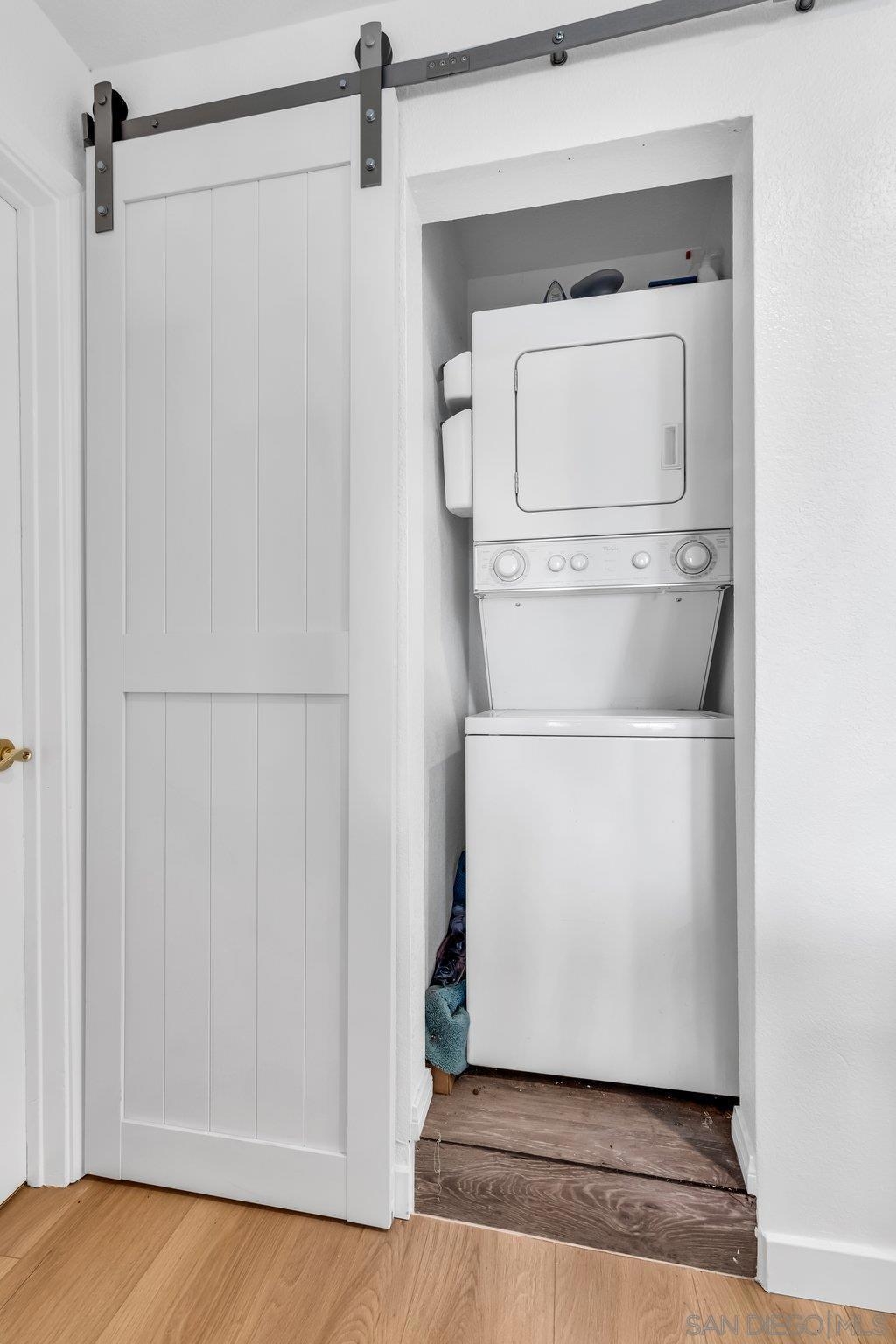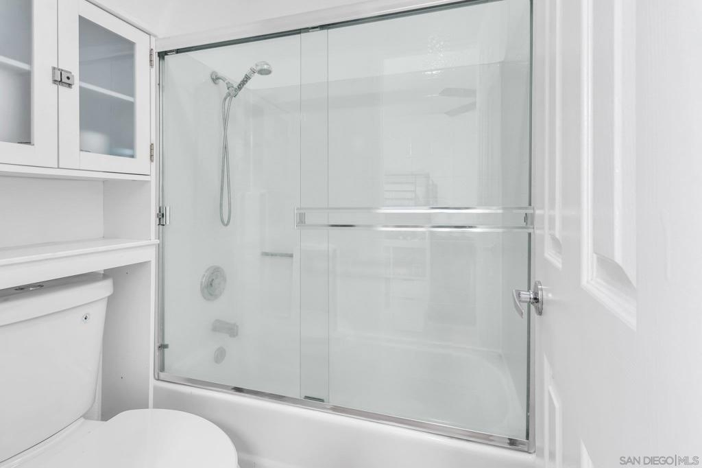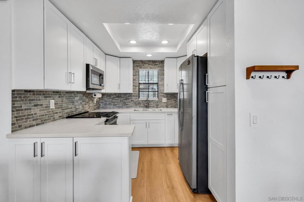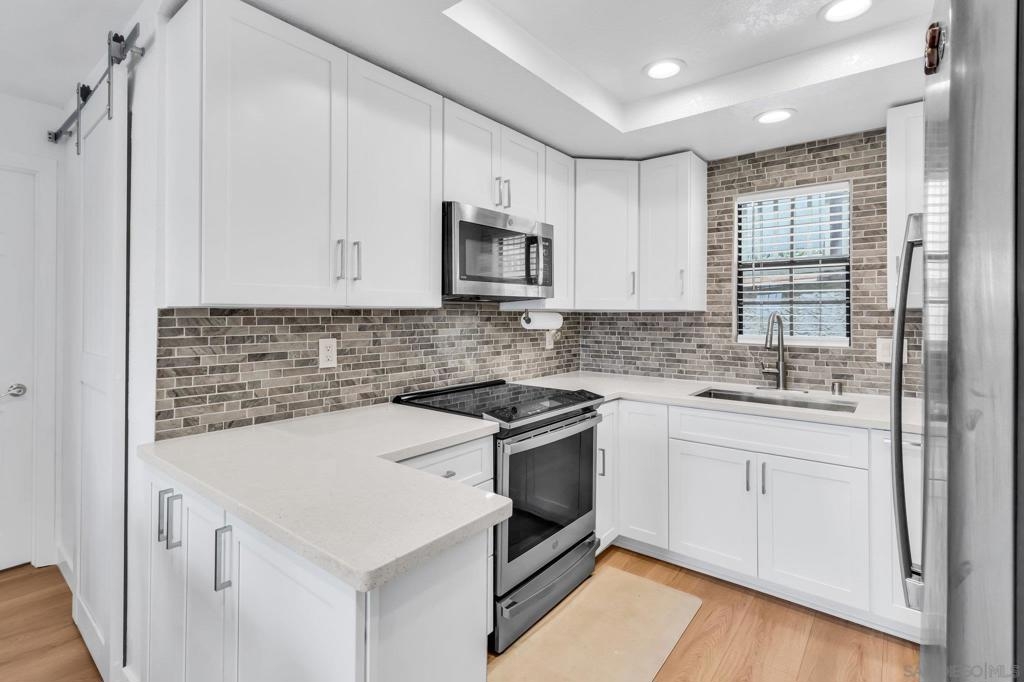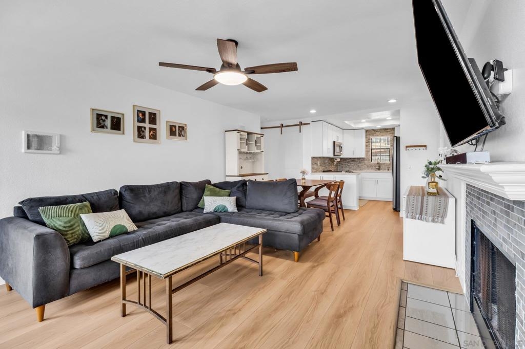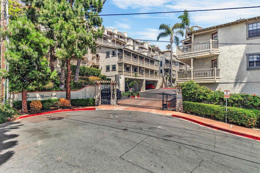 This updated 2-bedroom, 2-bath condo sits hillside in the gated Terraces at Mission Hills, perfectly positioned between Old Town and Mission Hills. Inside, enjoy a bright open layout with quartz countertops, white shaker cabinets, new flooring, a cozy fireplace, and in-unit laundry. The primary bedroom opens to a private patio with stunning west-facing views of the city skyline, bay, airport, and Point Loma — beautiful by day and magical at dusk. Window A/C units keep the home cool, and the fireplace adds warmth in cooler months. The community is pet-friendly and secure, offering a pool, spa, gym, elevator, and a covered tandem parking spot plus private storage. With shops, restaurants, parks, and the trolley steps away — and quick access to downtown, the airport, Balboa Park, and beaches — the location is unmatched. An optional 2.75% assumable VA loan (subject to lender and VA approval) makes this an exceptional opportunity for qualified buyers.