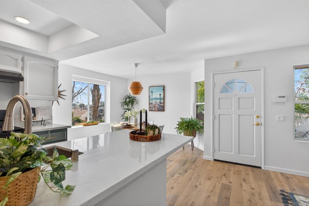 This top floor light and bright end unit condo boast east, south, and west windows. With an abundance of natural light and cool afternoon breezes. The property features beautiful new quartz countertops, luxury vinyl flooring, and modern lighting, all complimented by a fresh coat of paint throughout and brand new fixtures. Strategically situated on the border of University Heights and North Park. This condo offers the best of two of San Diego’s most walkable neighborhoods. From your front door you can stroll to coffee shops, restaurants, markets, and music venues, or explore nearby Balboa Park and the San Diego Zoo. The neighborhood is known for its vibrant café culture, craft breweries, and local eateries which combine to make everyday feel like part of the San Diego life style.