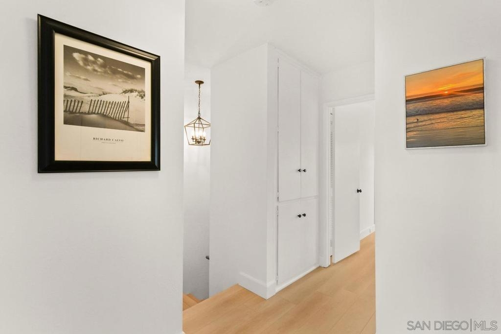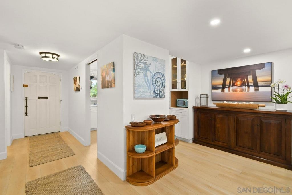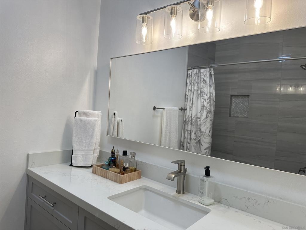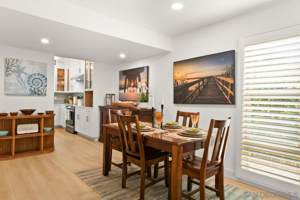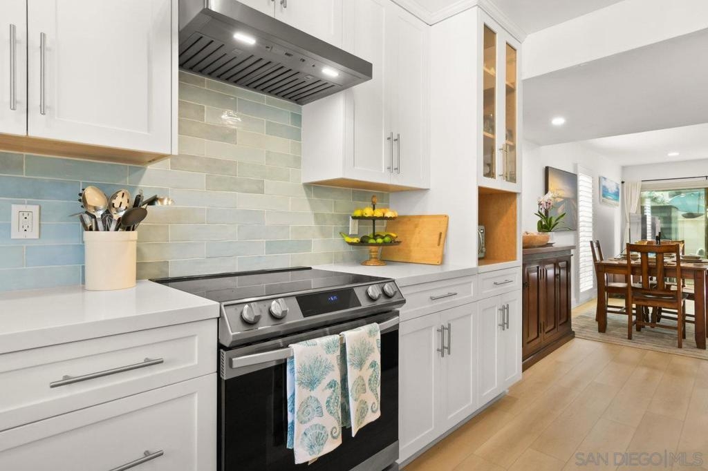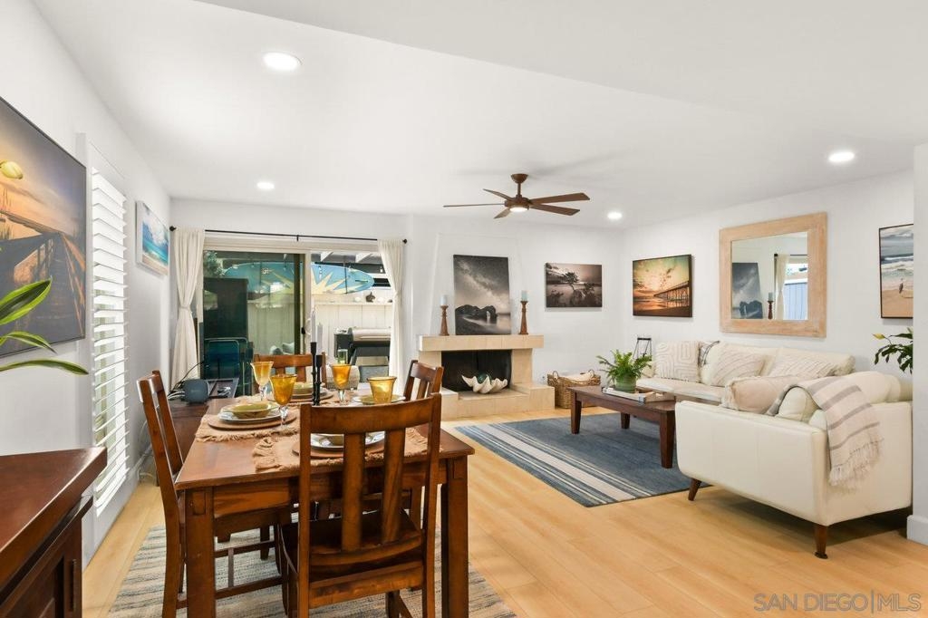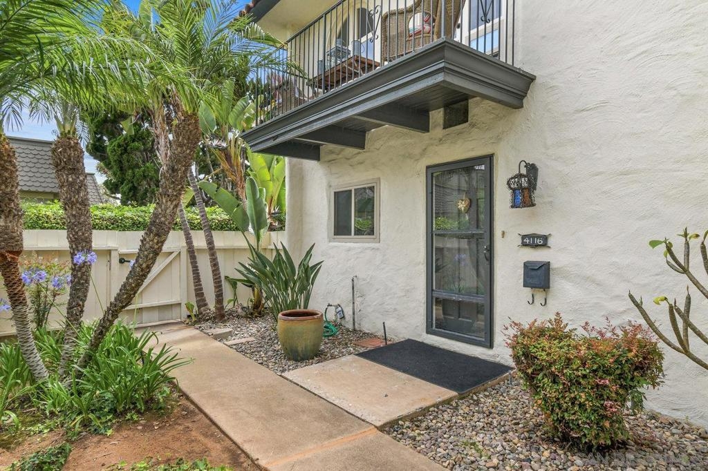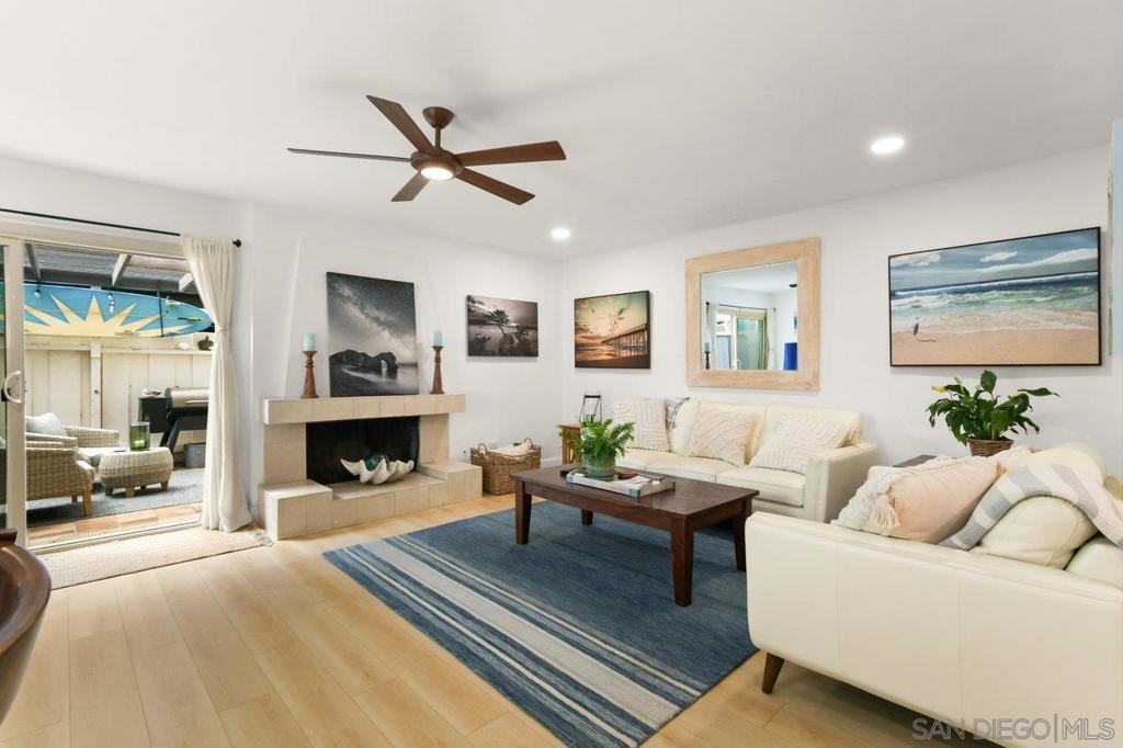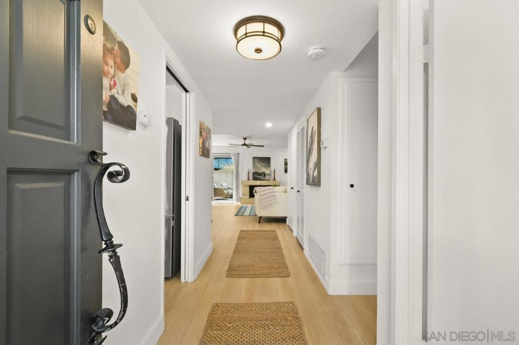 Totally updated 3 bedroom end unit townhome in Point Loma. Solid surface countertops, custom cabinets and quality appliances in the kitchen. Both bathrooms are updated with attractive finishes. Engineered flooring, baseboards and custom plantation shutters through out. Living room has fireplace and sliding glass doors to large tiled and covered patio area. Separate laundry room with water heater, York heating system, and 2 covered carport parking spaces.