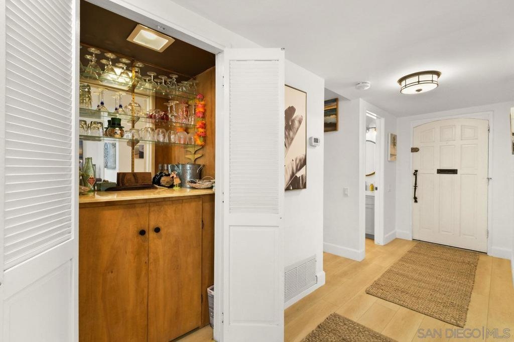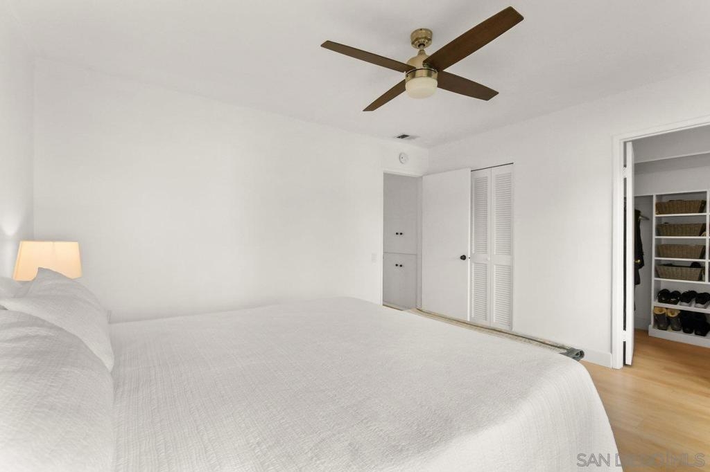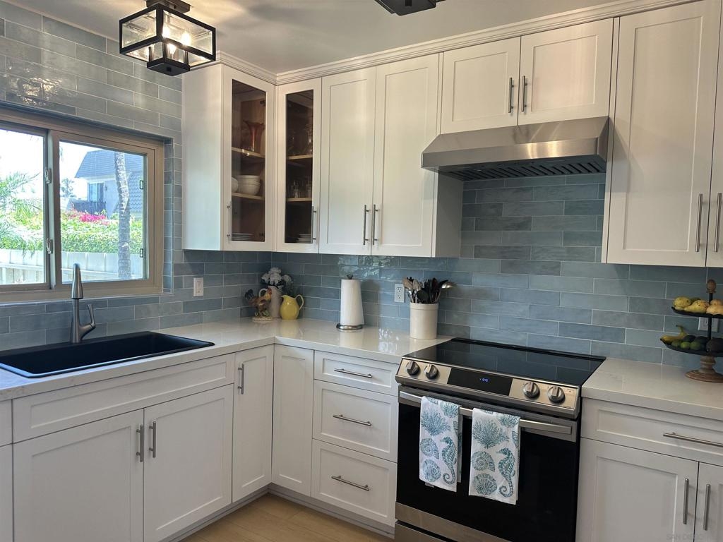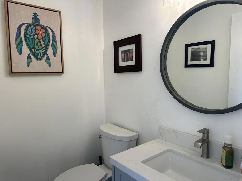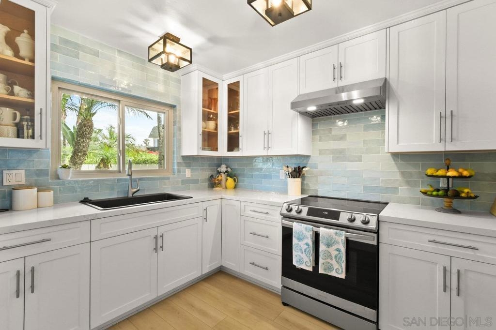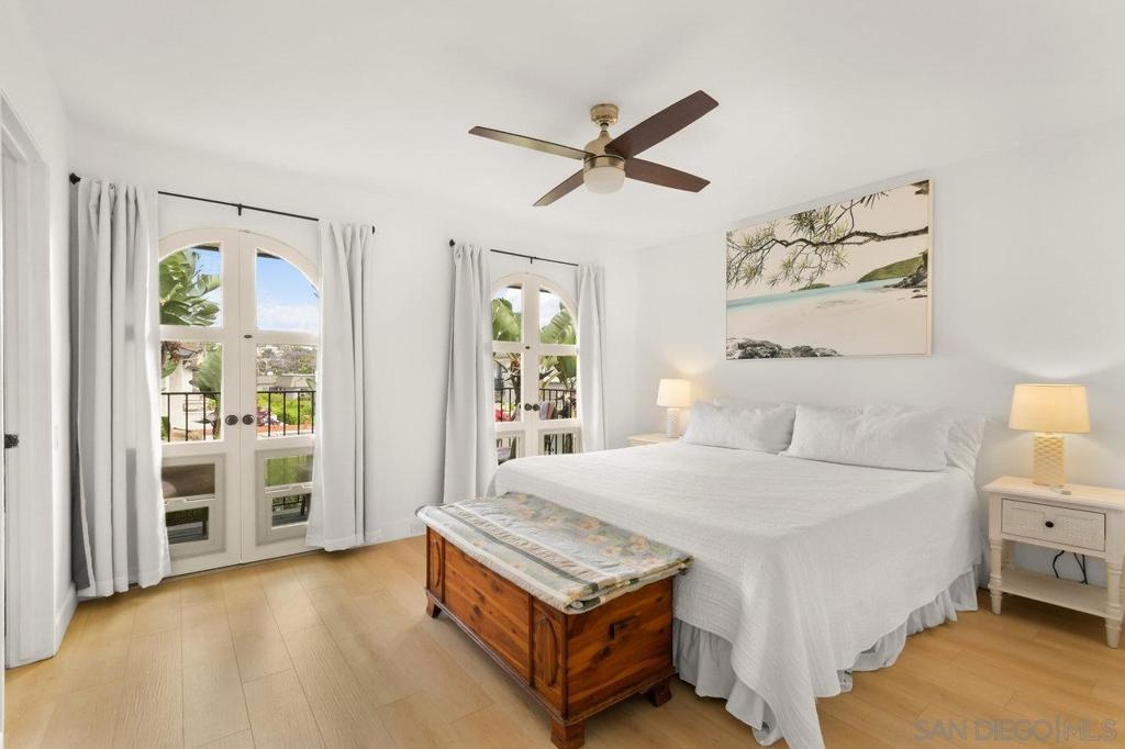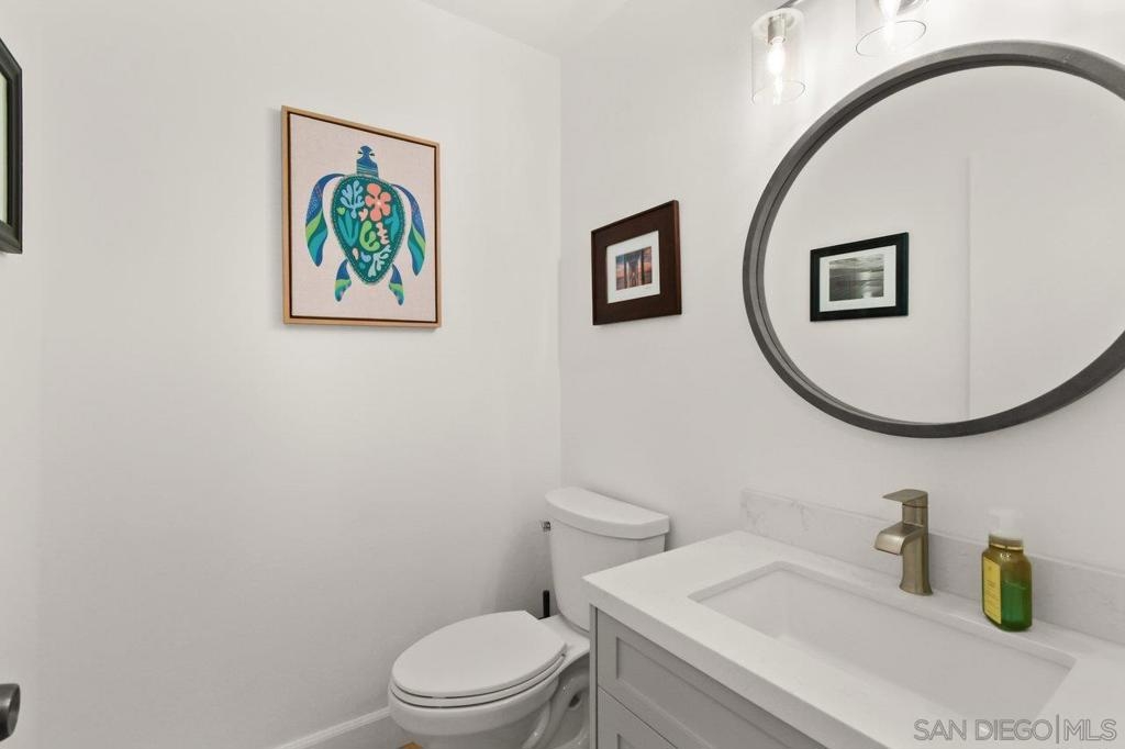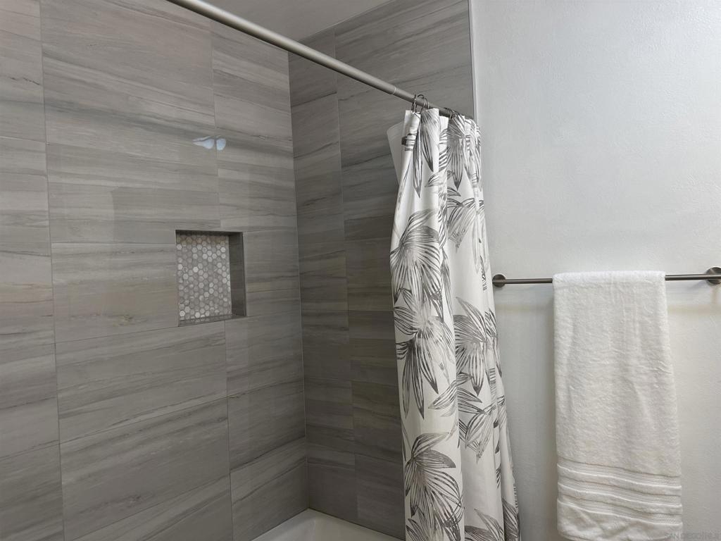 Totally updated 3 bedroom end unit townhome in Point Loma. Solid surface countertops, custom cabinets and quality appliances in the kitchen. Both bathrooms are updated with attractive finishes. Engineered flooring, baseboards and custom plantation shutters through out. Living room has fireplace and sliding glass doors to large tiled and covered patio area. Separate laundry room with water heater, York heating system, and 2 covered carport parking spaces.