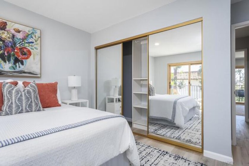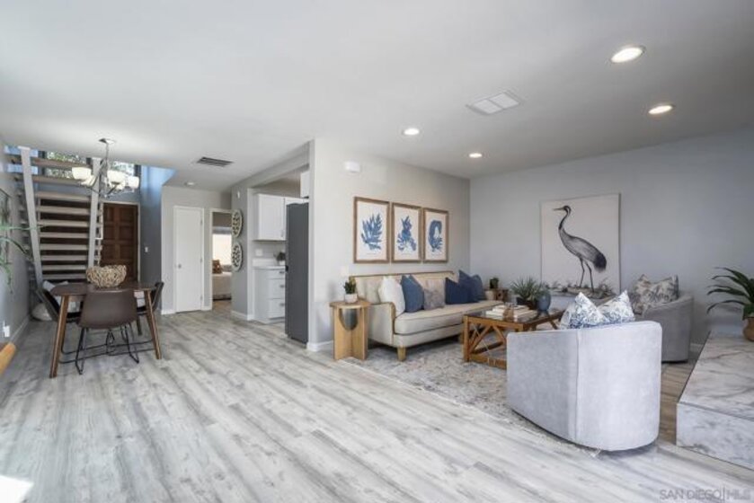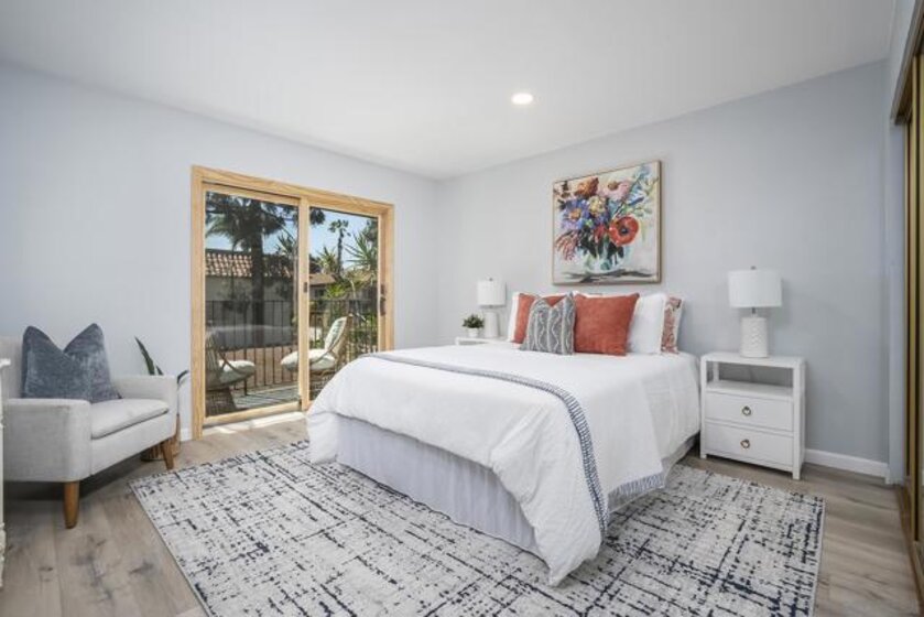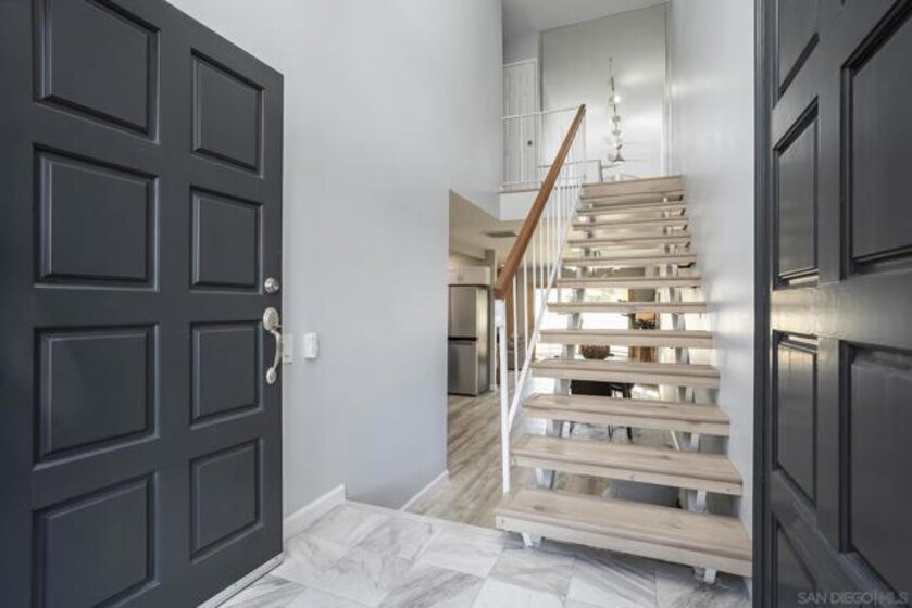 The aristocratic heritage of old Spain, blended with the spirit of early California’s Dons, echoes through time—bringing the charm of a bygone era into today’s fast-paced world. Set against this rich and romantic backdrop, Loma Riviera is a walled community designed to offer refuge from the bustle of San Diego’s business life, where comfort, convenience, and recreation come together to support the needs of active modern households. This home offers three bedrooms and two baths, including a bedroom and full bath on the first level, and is elegantly designed for both everyday living and entertaining, featuring a floating steel staircase, massive double front doors, and a tiled entry. The living room, kitchen, patio, and balcony are all generously sized to meet the demands of today’s families, while a convenient laundry room is located just off the patio. The home also includes two carports, providing two dedicated parking spaces. Loma Riviera captures the grace and beauty of a time when hospitality was a way of life, and residents enjoy a wealth of amenities including a swimming pool heated year-round, BBQs & outdoor fireplace, and a party sized clubhouse complete with a kitchen and meeting/library room. As you stroll along its quiet, winding streets, you’ll discover a thoughtfully planned community of townhomes created for gracious, carefree living.