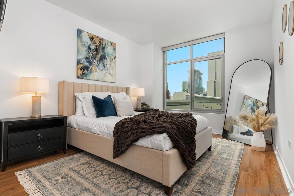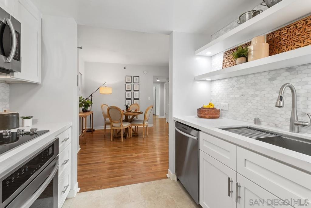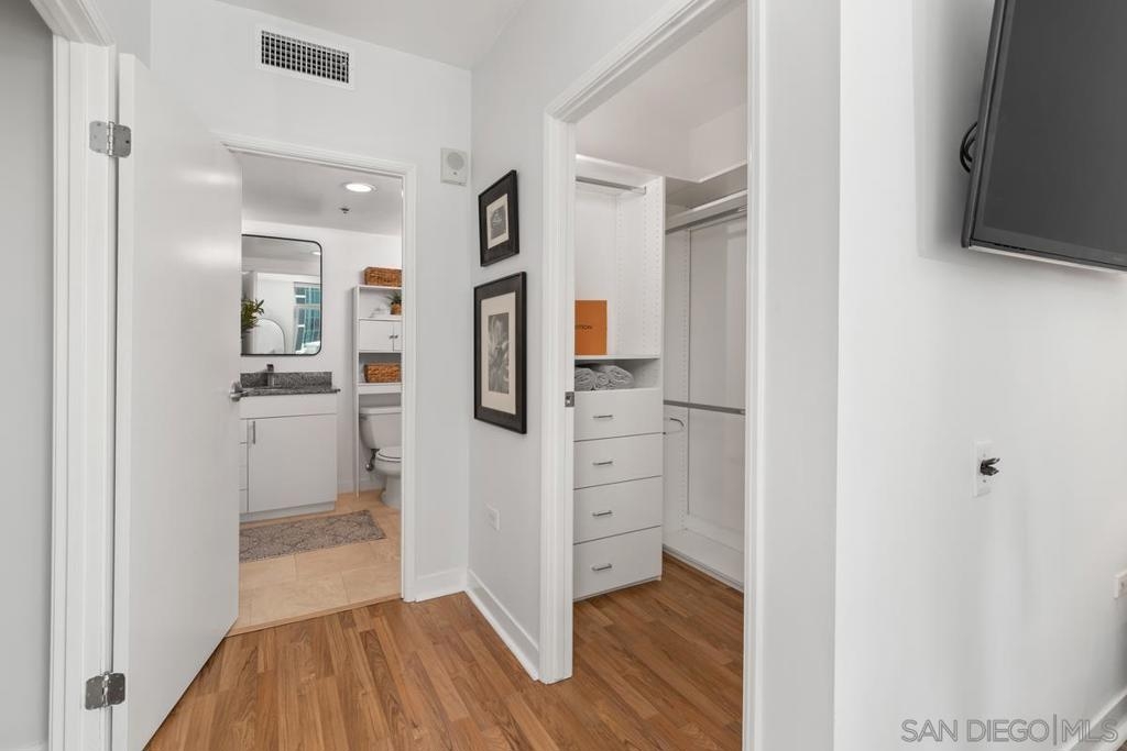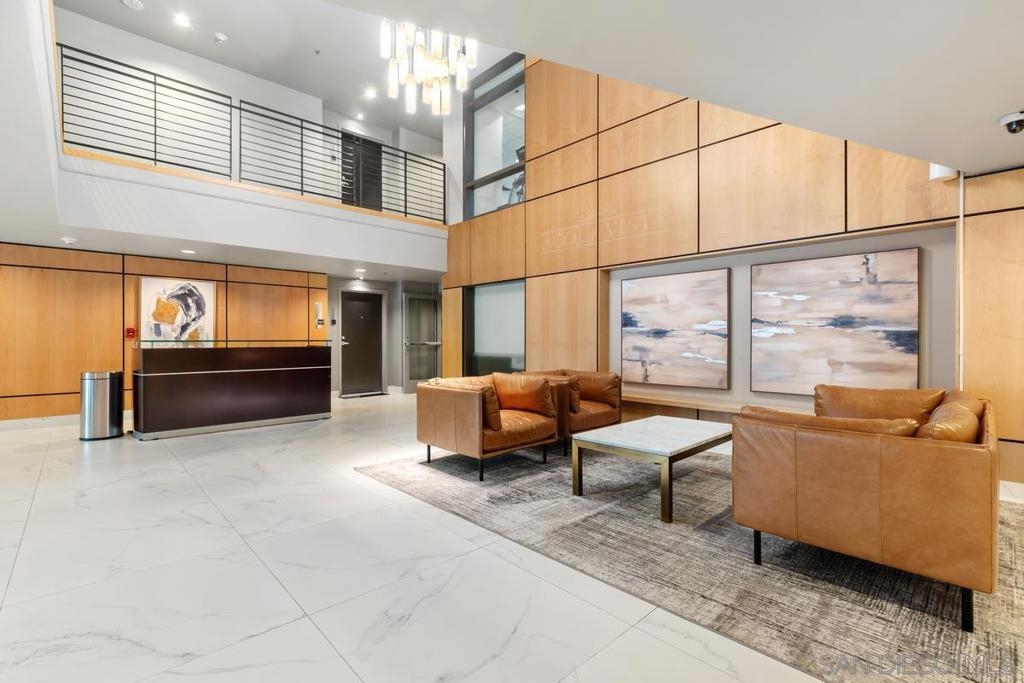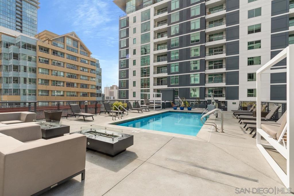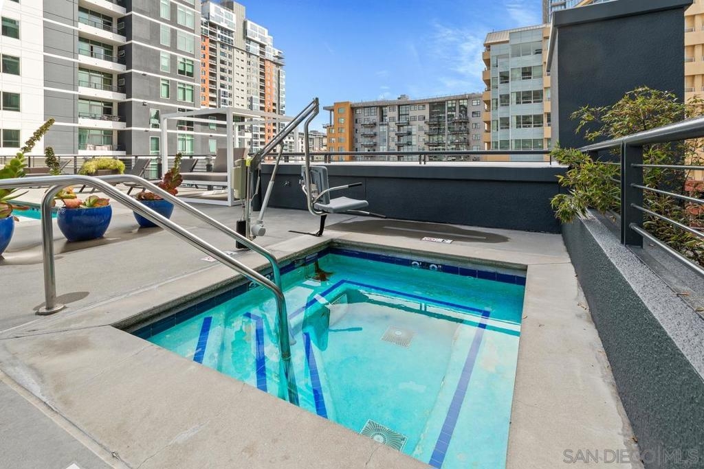 Experience the San Diego lifestyle in this beautiful Acqua Vista residence in Little Italy. Dine at your choice of stellar restaurants nearby and enjoy downtown living just 2 blocks from the Bay. The chef’s kitchen has been completely remodeled- quartz counters, honed marble backsplash, stainless-steel sink, filtered water, premium soft-close cabinets, pullout and floating shelves, and high-end appliances. South-east views over the rooftop and beautiful natural light. Other features include view patio, new W/D, custom walk-in closet, solid surface floors, designer paint, and convection range with 5-burner ceramic cooktop. Both baths are also renovated with travertine flooring, new lighting, faucets, and mirrors. Community amenities include secure entry, 24-hour security staff, heated pool and spa with views, lounge chairs and fire table on the 8th floor, BBQ grills, no-tip valet parking, EV car charging stations, fitness center, onsite Amazon Hub and a package delivery room. Acqua Vista recently underwent a complete redesign with the expert leadership of prestigious architects, DNA Design Group. Community improvements include new custom interior and exterior paint, new common area designer carpet, updated artwork, and completely reimagined lobby/entrances.
