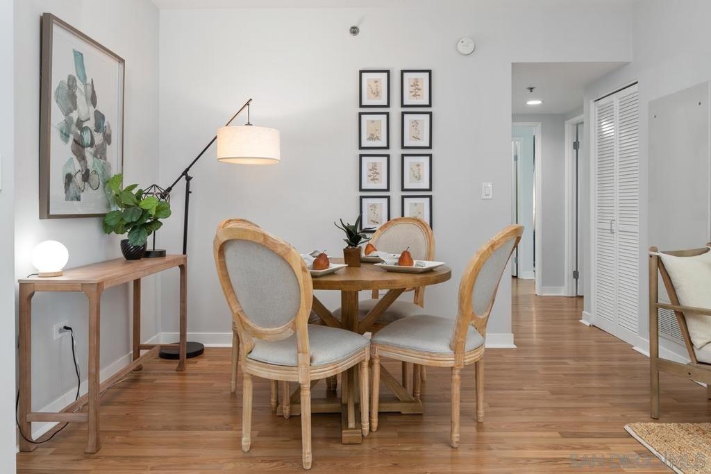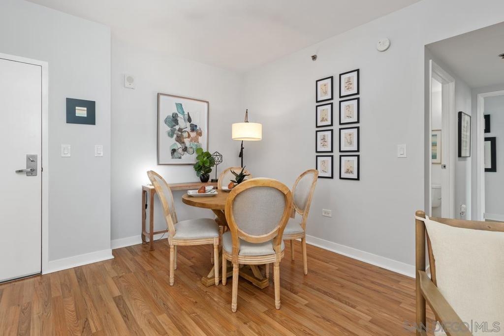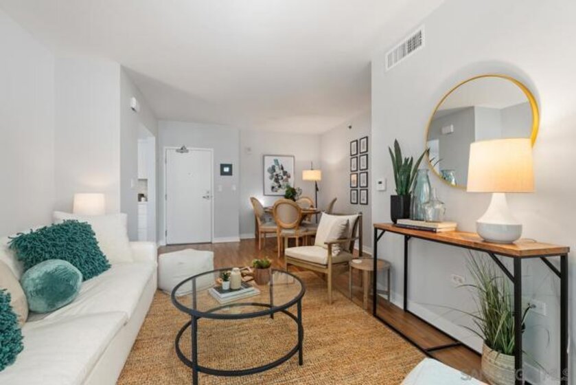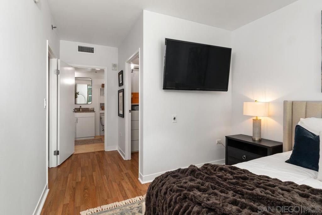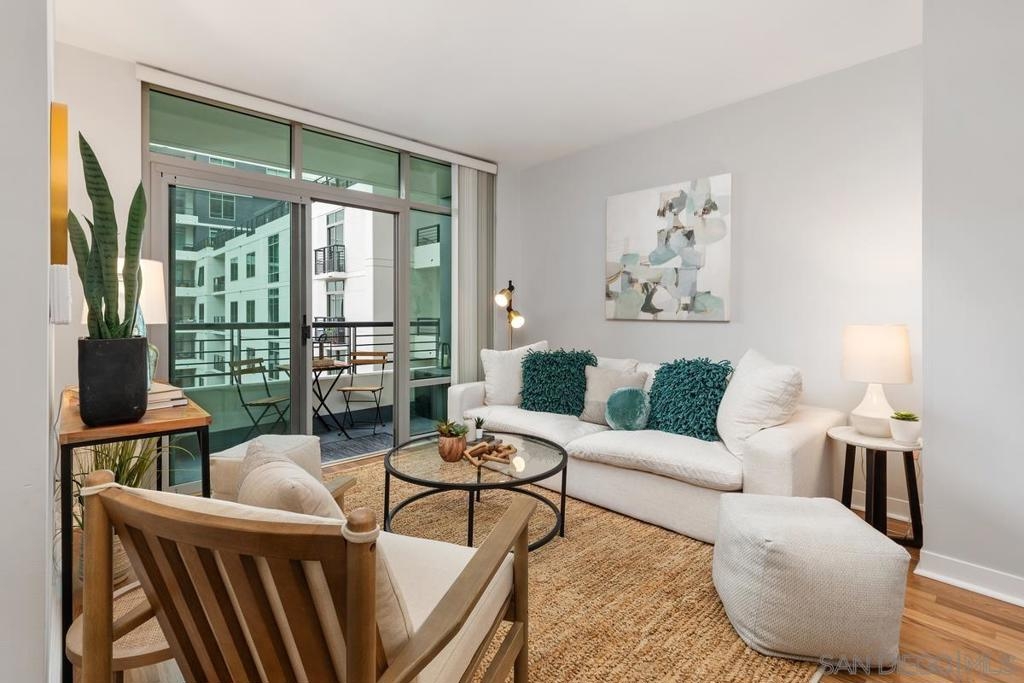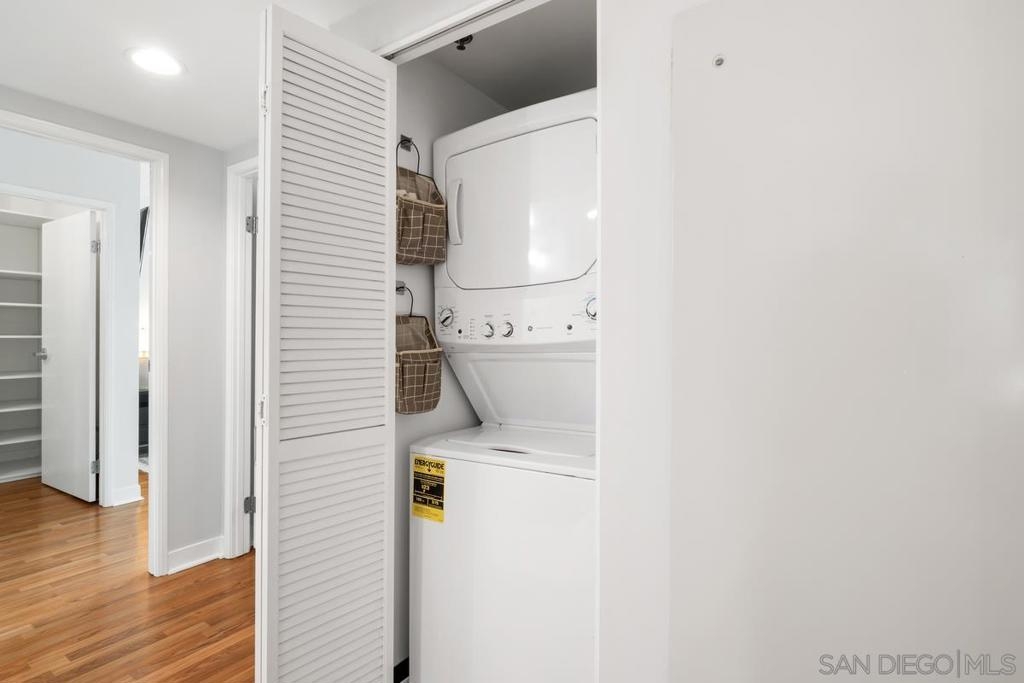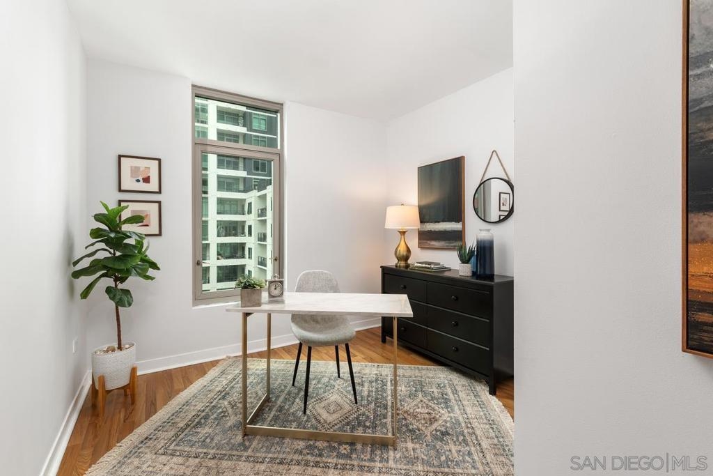 Experience the San Diego lifestyle in this beautiful Acqua Vista residence in Little Italy. Dine at your choice of stellar restaurants nearby and enjoy downtown living just 2 blocks from the Bay. The chef’s kitchen has been completely remodeled- quartz counters, honed marble backsplash, stainless-steel sink, filtered water, premium soft-close cabinets, pullout and floating shelves, and high-end appliances. South-east views over the rooftop and beautiful natural light. Other features include view patio, new W/D, custom walk-in closet, solid surface floors, designer paint, and convection range with 5-burner ceramic cooktop. Both baths are also renovated with travertine flooring, new lighting, faucets, and mirrors. Community amenities include secure entry, 24-hour security staff, heated pool and spa with views, lounge chairs and fire table on the 8th floor, BBQ grills, no-tip valet parking, EV car charging stations, fitness center, onsite Amazon Hub and a package delivery room. Acqua Vista recently underwent a complete redesign with the expert leadership of prestigious architects, DNA Design Group. Community improvements include new custom interior and exterior paint, new common area designer carpet, updated artwork, and completely reimagined lobby/entrances.