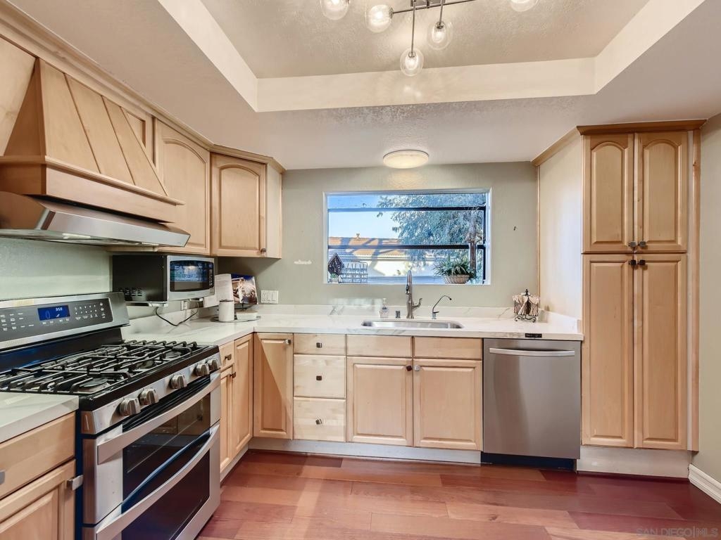 Live in desirable Kensington! Lovely updated end unit. This popular “D” floor plan includes 3 beds, 2.5 baths, & a large 2-car attached garage. Plus, your own private patio & yard – a rare find for a townhome in this area! Light, bright, with vaulted ceilings & situated on a peaceful street with a park-like setting. This property is close to SDSU & all the best of San Diego living. You’ll love living close to everything Mission Valley has to offer while still being able to come home to peace & quiet. SEE SUPP. Welcome home to desirable Kensington Park Villas! Step inside this beautifully updated unit & you’ll immediately be impressed with the attention to detail & care of the current owners. Gleaming wood floors, refinished fireplace with stone surround, fresh, neutral paint, & updated light fixtures are just a few of the upgrades you’ll find inside. The vaulted ceilings add to the feeling of spaciousness. The kitchen features newer wood cabinetry, white marble counters, SS appliances, & plenty of storage. Both bedrooms are large with mirrored closet doors & lots of light. The attached garage offers plenty of room for additional storage & includes hookups for a full-sized W/D. Outside, enjoy your morning coffee or dining al fresco on your stone patio. Mature trees & landscaping lend themselves to the peaceful, park-like atmosphere. Kensington is a fantastic community tucked away near SDSU. It offers an ideal location for commuting North or South to downtown. Just a short drive, walk, or bike ride over to Normal Heights & North Park! Don’t miss this one! Equipment: Dryer,Garage Door Opener, Range/Oven, Washer Sewer: Sewer Connected Topography: GSL Frontage: Open Space