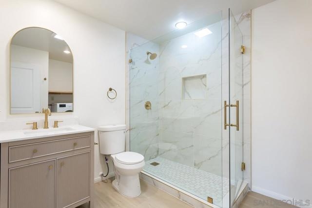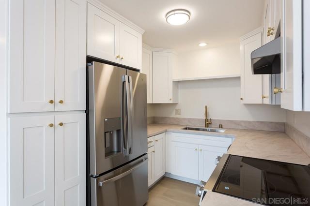 Beautifully renovated end-unit townhome in Playmor La Jolla. This single-level home features a brand-new kitchen with timeless shaker cabinets, stainless steel appliances, honed quartz countertops, brass finishes, and abundant cabinet space with pantry. Light-filled interiors flow to a private enclosed patio with deck, perfect for indoor/outdoor living. Luxurious new bathroom offers a trendy vanity, walk-in shower with glass enclosure, and large-format tile. New LVP flooring & the comfort of in-unit laundry. A modern, stylish retreat near UCSD, shopping & beaches. Beautifully renovated end-unit townhome in Playmor La Jolla. This single-level home features a brand-new kitchen with timeless shaker cabinets, stainless steel appliances, honed quartz countertops, brass finishes, and abundant cabinet space with pantry. Light-filled interiors flow to a private enclosed patio with deck, perfect for indoor/outdoor living. Luxurious new bathroom offers a trendy vanity, walk-in shower with glass enclosure, and large-format modern tile. New LVP flooring & the comfort of in-unit laundry. A modern, stylish retreat near UCSD, shopping & beaches.