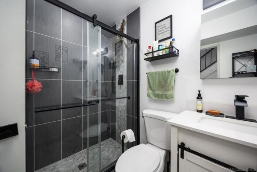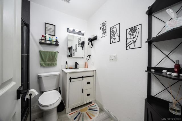 Completely updated Point Loma townhouse is situated in an ideal location; only 5 minutes from Ocean Beach and everything else San Diego has to offer. This two-story townhome offers an amazing layout for entertaining with a living room and kitchen upstairs, and with bedroom downstairs. Recent upgrades include new luxury vinyl flooring, paint, and appliances. Mere minutes from all beaches, with 5 minutes by car gives you access to the 5 & 8 freeways. Entering the home, you will be met with a dedicated laundry room, hallway linen closet, primary bedroom, and completely updated bathroom. Back upstairs, open concept living and dining room with a balcony that allows slight views of Seaworld and fireworks. This unit also comes with TWO tandem parking spaces, central heating, and air. Amazing opportunity for a first time buyer, investor or someone looking to downsize.