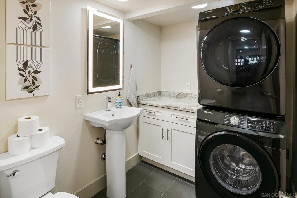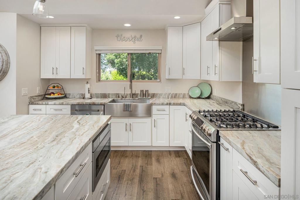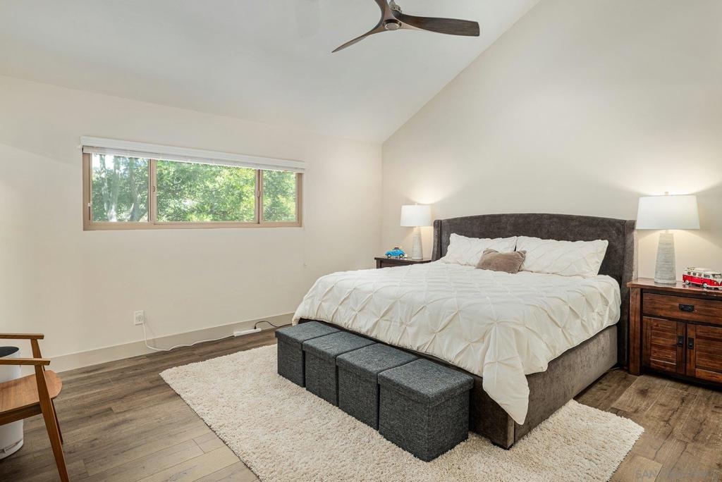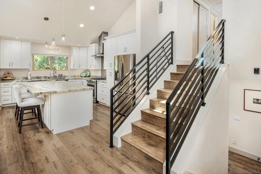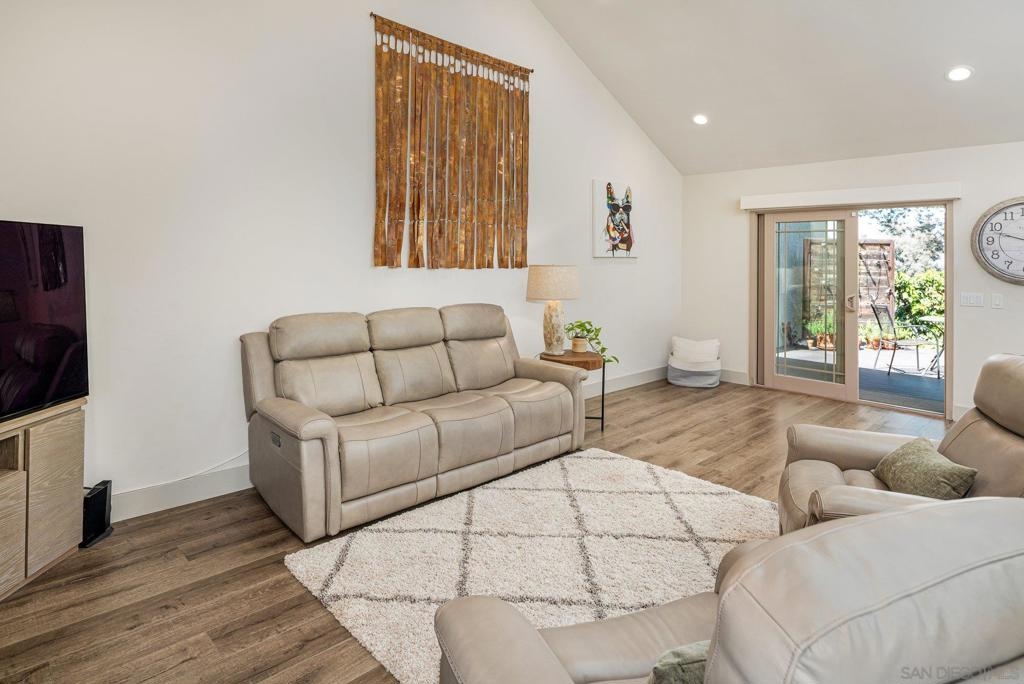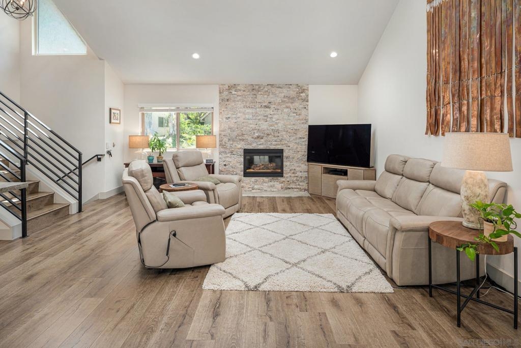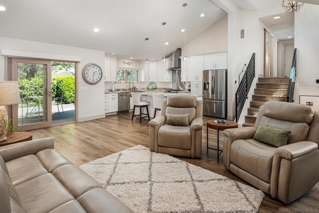 Tucked privately in the serene hills near Kensington, this exquisite home within Kensington Park Villas offers the perfect blend of tranquility and luxury. Kensington Park Villas is set within a gated community, this oasis is surrounded by nature, featuring a Koi Pond, two sparkling pools, two spas, saunas, and a clubhouse. Enjoy access to a private gate leading to the charming Village of Kensington via a walking path in the community. Beautifully remodeled, this home boasts vaulted ceilings throughout, creating an open and airy atmosphere. It includes dual-paned windows, a new HVAC system, and an expansive open-concept kitchen with a large island, leathered granite countertops, custom cabinetry and stainless steel appliances. The kitchen also features a microwave drawer and a farmhouse-style sink. For added convenience, there are upgraded electrical outlets, rocker switches, and USB ports in the kitchen. The home exudes modern elegance with recessed lighting, ceiling fans in every room, upgraded step-in showers with glass doors, inside laundry and stylish Kuna lights on the front and rear porches. Relax by the charming gas fireplace in the living room which showcases the seamless flooring that runs throughout the entire home. The backyard offers a peaceful retreat with a privacy fence and a large, extended Trex deck perfect for enjoying cool evenings. A two-car garage includes a tankless water heater and app-controlled garage door openers for ultimate convenience. Finally, there is a soft water system with reverse osmosis in kitchen sink and refrigerator. SEE SUPPLEMENT Kensington Park Villas is a planned unit development, not a condominium, with ownership held in fee simple. A fantastic location that is parklike and ideally located near I-8, I-15, and I-805, this home provides easy access to Fashion Valley, local beaches, and a quick drive downtown, making it a perfect spot to enjoy all the best San Diego has to offer.