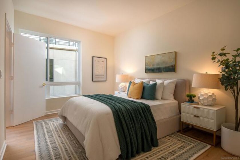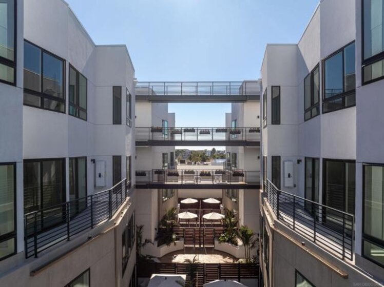 Rendezvous presents a rare opportunity to purchase new construction in North Park, one of San Diego’s most sought-after urban communities. This contemporary 2-bed, 2.5-bath, two-story condominium offers an exceptional layout with dual primary bedrooms, each featuring walk-in closets and ensuite baths with dual sinks. A rare 500 sq. ft. private outdoor courtyard extends the living space, while added north-facing windows in the dining room, primary bedroom, and primary bathroom enhance natural light throughout. The home features 10-ft ceilings, central heat and air, tankless water heating, and a modern open-concept design. Residents enjoy a secure building with fob/key access, two assigned parking spaces in the subterranean garage, and a pet-friendly community set within an exciting, highly walkable neighborhood close to dining, shopping, and everyday conveniences. Discover Rendezvous, an exclusive collection of 35 newly built condominium homes in the heart of North Park. Situated at the center of one of San Diego’s most vibrant lifestyle districts, residents are steps from dining, shopping, and cultural amenities. Rendezvous offers a refined blend of contemporary design and timeless appeal, featuring thoughtfully crafted floor plans and quality architectural details. The community includes single-level two-bedroom, two-bath condominiums, as well as two-story townhomes with two bedrooms and two-and-a-half baths, ranging from approximately 1,200 to 1,500 sq. ft. Each residence includes two parking spaces in a secure, gated subterranean garage with direct lobby access. Interiors feature ten-foot ceilings, expansive windows, and sliding doors that enhance natural light. Kitchens are appointed with custom cabinetry, quartz countertops, central waterfall islands, and stainless-steel appliances. Bathrooms include custom cabinets, quartz countertops, and satin brass fixtures. Homes offer stackable laundry closets or dedicated laundry rooms, and most include private balconies or terraces. Pre-wiring for security systems is also included. Rendezvous presents a rare opportunity to purchase new construction in North Park, one of San Diego’s most sought-after urban communities.