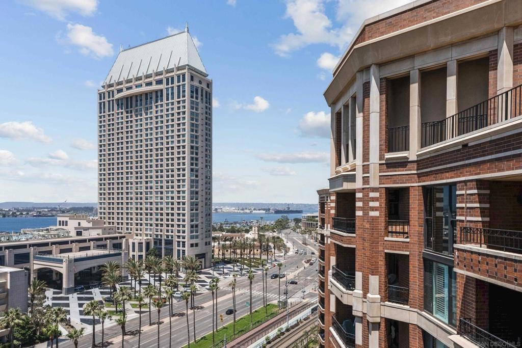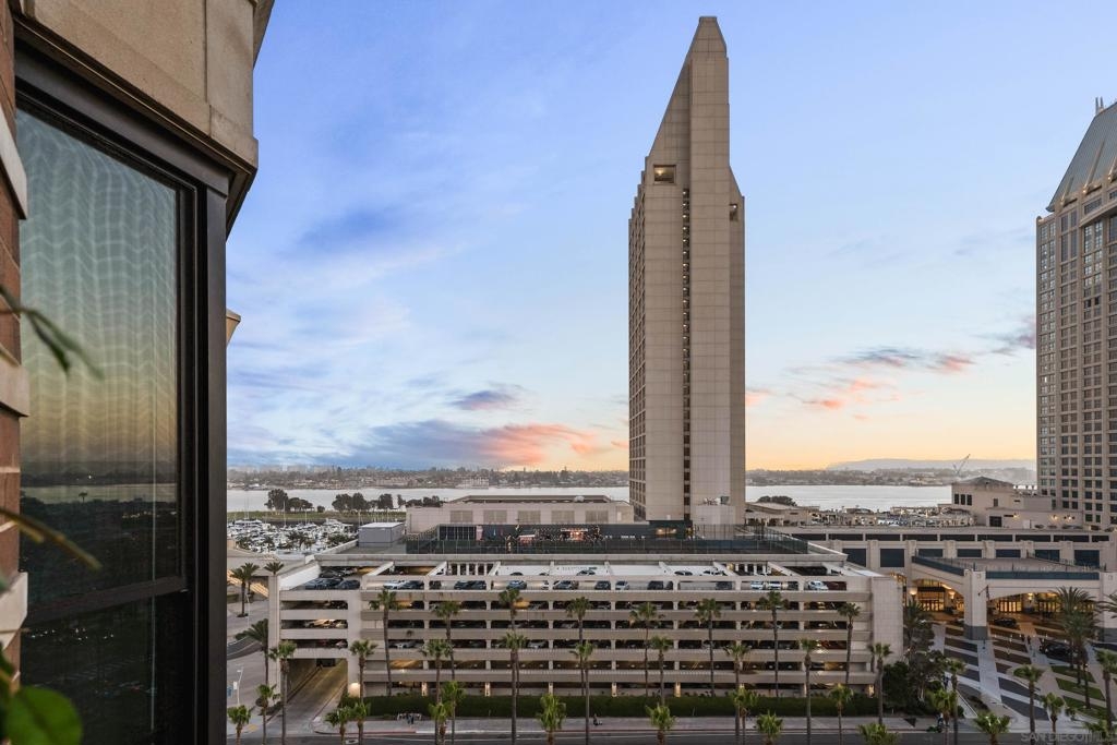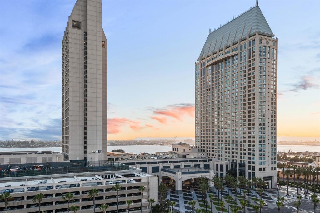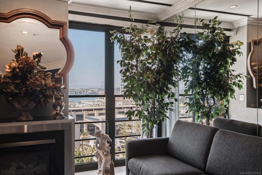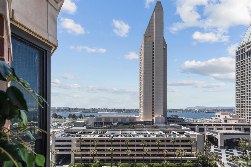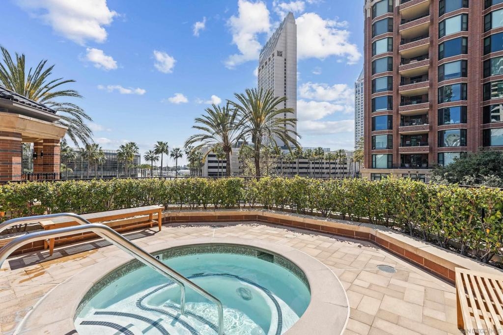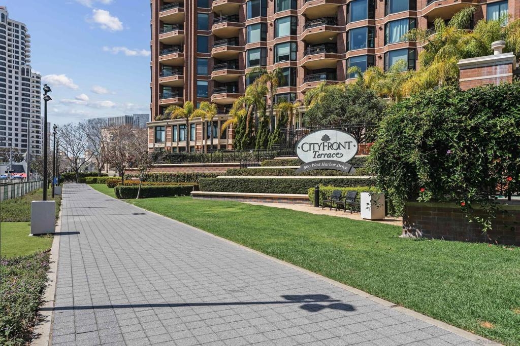 Stunning 1BR + bonus room, 1BA penthouse in the prestigious CityFront Terrace. Located on the 13th floor with no units above, this home offers sweeping bay views from the bedroom, living room, and spacious private patio for unmatched sunsets and views all the way to Point Loma. Virtually soundproof, the unit features a top-of-the-line kitchen with premium stainless steel appliances, in-unit laundry, a cozy fireplace, and a flexible bonus room perfect for guests or a home office. Unit has patio access from bedroom or living room. The spacious, open floor plan offers seamless indoor-outdoor living, ideal for relaxing or entertaining. Includes three assigned parking spaces plus valet—an exceptionally rare offering in downtown San Diego. Just steps to Petco Park, Seaport Village, the Convention Center, and the city’s best dining, shopping, and entertainment. CityFront Terrace is a full-service luxury community in the heart of the Marina District. Amenities include two heated pools, (a 75-ft lap pool and splash pool), spa, saunas, and a 3,500 sq ft fitness center. Residents enjoy the award-winning Urban Canyon: two acres of lush gardens, majestic oak trees, a 90-ft waterfall, BBQ area, gazebo, fire pit, and walking paths. The building also offers a business center, conference room, EV charging stations, bike storage, secure underground parking, 24-hour concierge, and premium services including package handling, dry-clean drop-off, and in-home maintenance. A rare opportunity to own a top-floor residence in one of San Diego’s most iconic and amenity-rich communities.