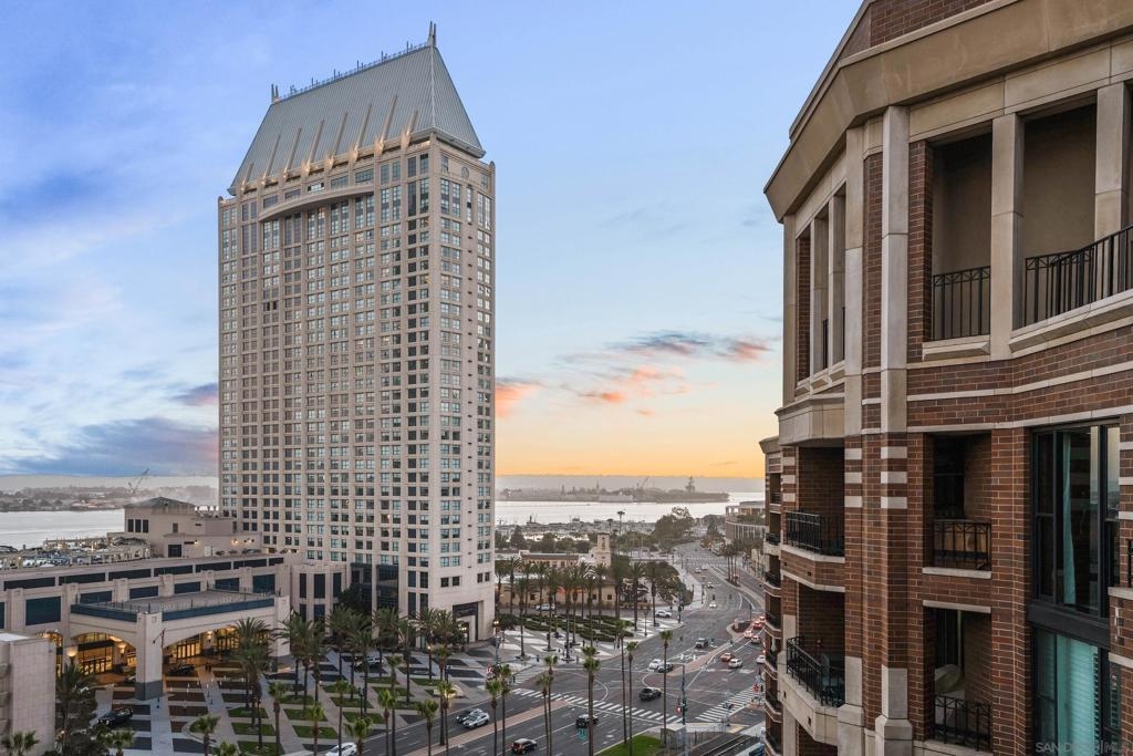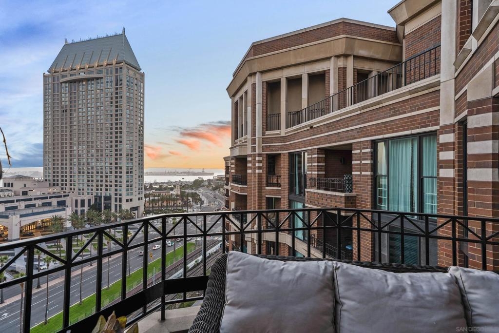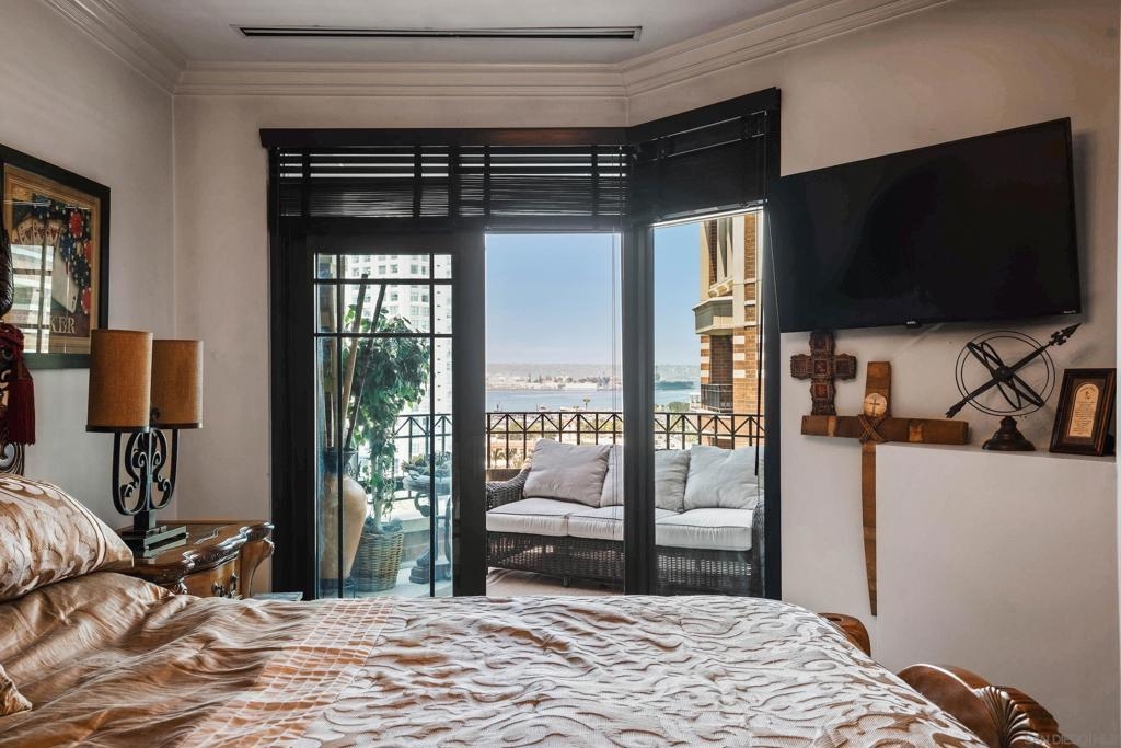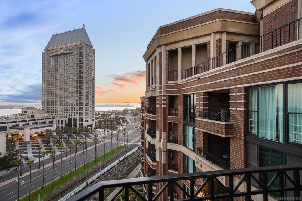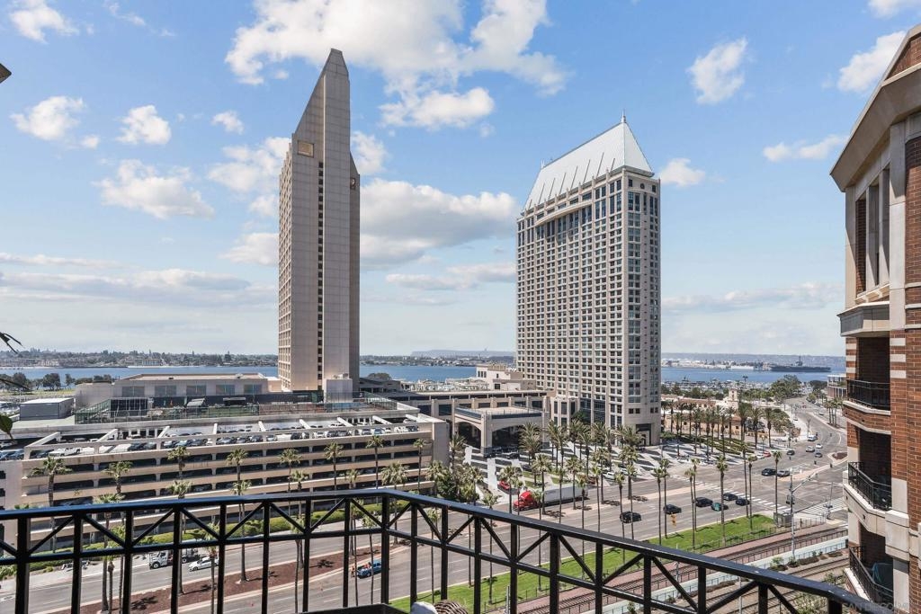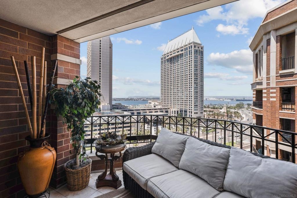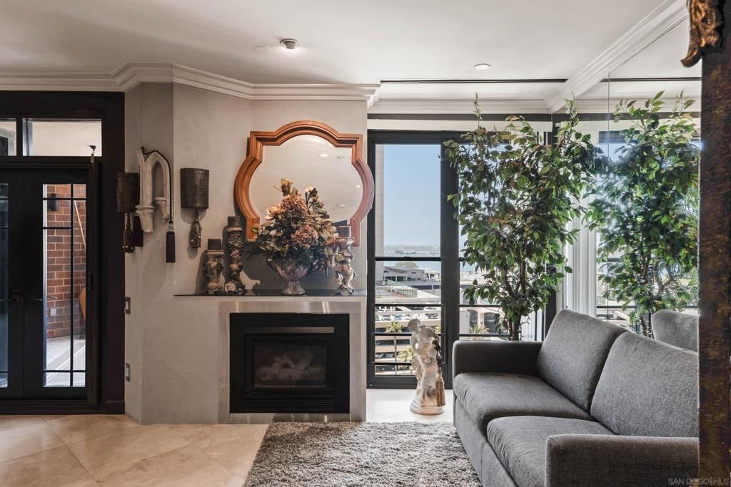 Stunning 1BR + bonus room, 1BA penthouse in the prestigious CityFront Terrace. Located on the 13th floor with no units above, this home offers sweeping bay views from the bedroom, living room, and spacious private patio for unmatched sunsets and views all the way to Point Loma. Virtually soundproof, the unit features a top-of-the-line kitchen with premium stainless steel appliances, in-unit laundry, a cozy fireplace, and a flexible bonus room perfect for guests or a home office. Unit has patio access from bedroom or living room. The spacious, open floor plan offers seamless indoor-outdoor living, ideal for relaxing or entertaining. Includes three assigned parking spaces plus valet—an exceptionally rare offering in downtown San Diego. Just steps to Petco Park, Seaport Village, the Convention Center, and the city’s best dining, shopping, and entertainment. CityFront Terrace is a full-service luxury community in the heart of the Marina District. Amenities include two heated pools, (a 75-ft lap pool and splash pool), spa, saunas, and a 3,500 sq ft fitness center. Residents enjoy the award-winning Urban Canyon: two acres of lush gardens, majestic oak trees, a 90-ft waterfall, BBQ area, gazebo, fire pit, and walking paths. The building also offers a business center, conference room, EV charging stations, bike storage, secure underground parking, 24-hour concierge, and premium services including package handling, dry-clean drop-off, and in-home maintenance. A rare opportunity to own a top-floor residence in one of San Diego’s most iconic and amenity-rich communities.