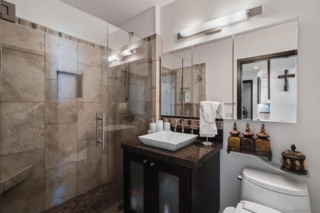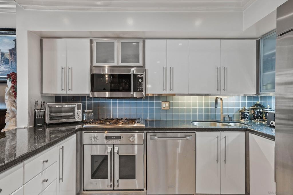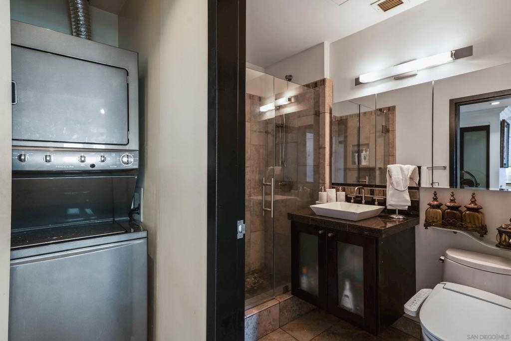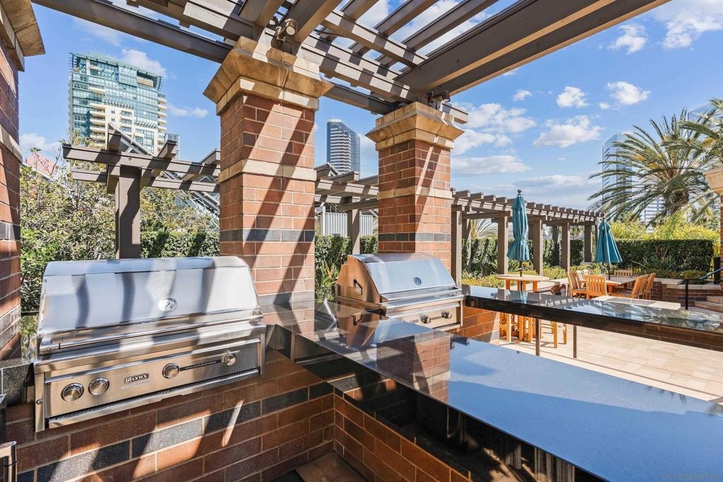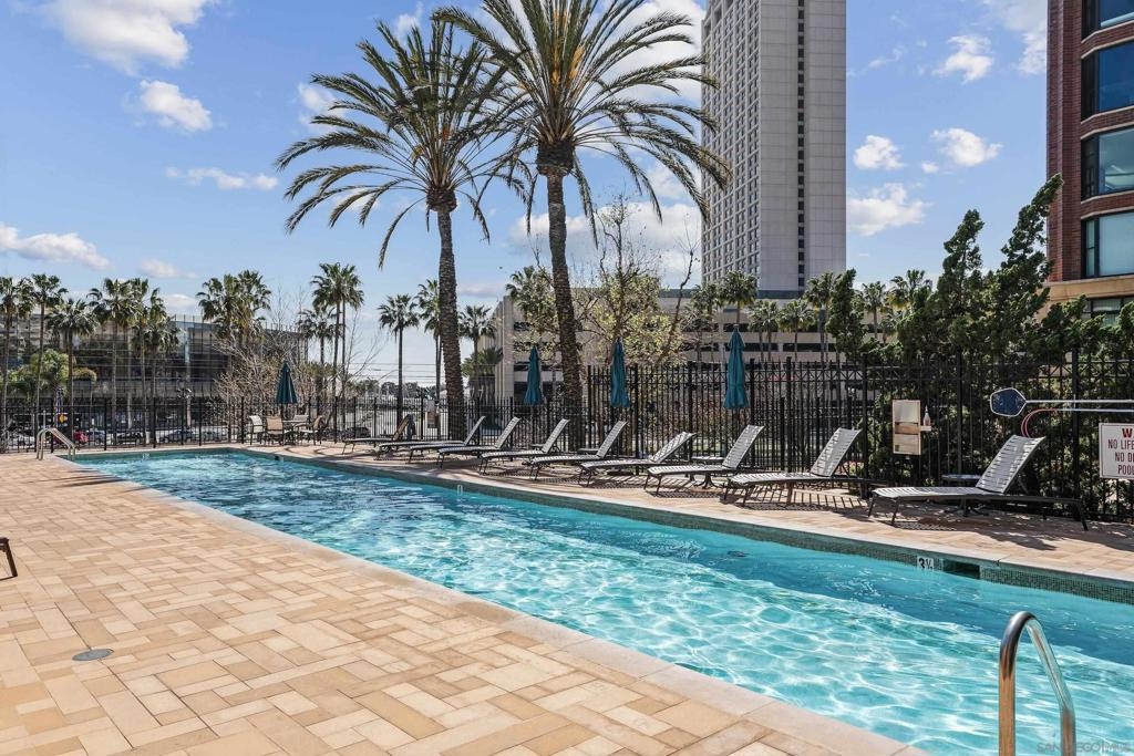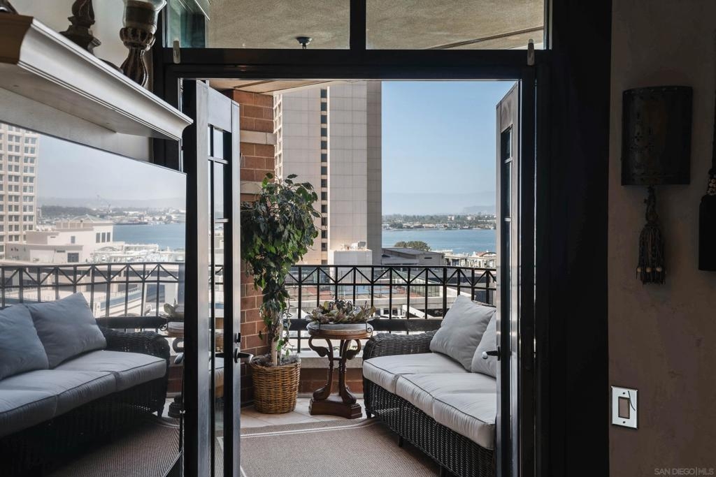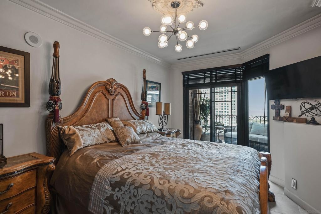 Stunning 1BR + bonus room, 1BA penthouse in the prestigious CityFront Terrace. Located on the 13th floor with no units above, this home offers sweeping bay views from the bedroom, living room, and spacious private patio for unmatched sunsets and views all the way to Point Loma. Virtually soundproof, the unit features a top-of-the-line kitchen with premium stainless steel appliances, in-unit laundry, a cozy fireplace, and a flexible bonus room perfect for guests or a home office. Unit has patio access from bedroom or living room. The spacious, open floor plan offers seamless indoor-outdoor living, ideal for relaxing or entertaining. Includes three assigned parking spaces plus valet—an exceptionally rare offering in downtown San Diego. Just steps to Petco Park, Seaport Village, the Convention Center, and the city’s best dining, shopping, and entertainment. CityFront Terrace is a full-service luxury community in the heart of the Marina District. Amenities include two heated pools, (a 75-ft lap pool and splash pool), spa, saunas, and a 3,500 sq ft fitness center. Residents enjoy the award-winning Urban Canyon: two acres of lush gardens, majestic oak trees, a 90-ft waterfall, BBQ area, gazebo, fire pit, and walking paths. The building also offers a business center, conference room, EV charging stations, bike storage, secure underground parking, 24-hour concierge, and premium services including package handling, dry-clean drop-off, and in-home maintenance. A rare opportunity to own a top-floor residence in one of San Diego’s most iconic and amenity-rich communities.