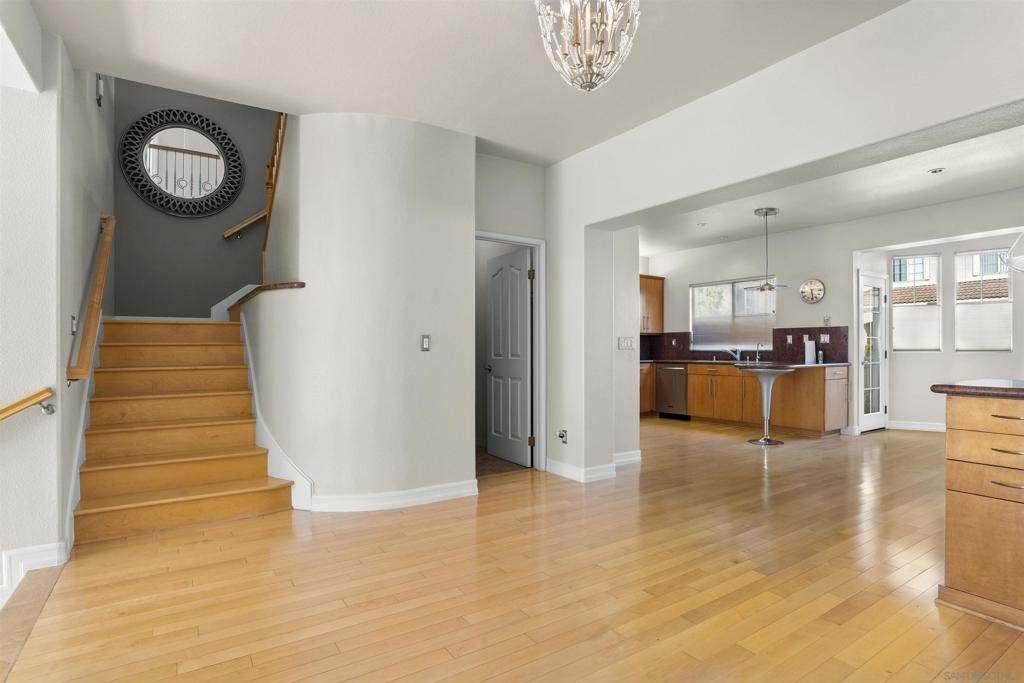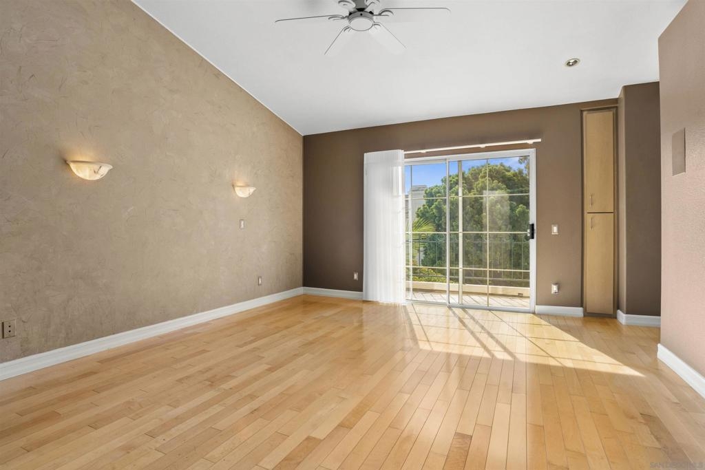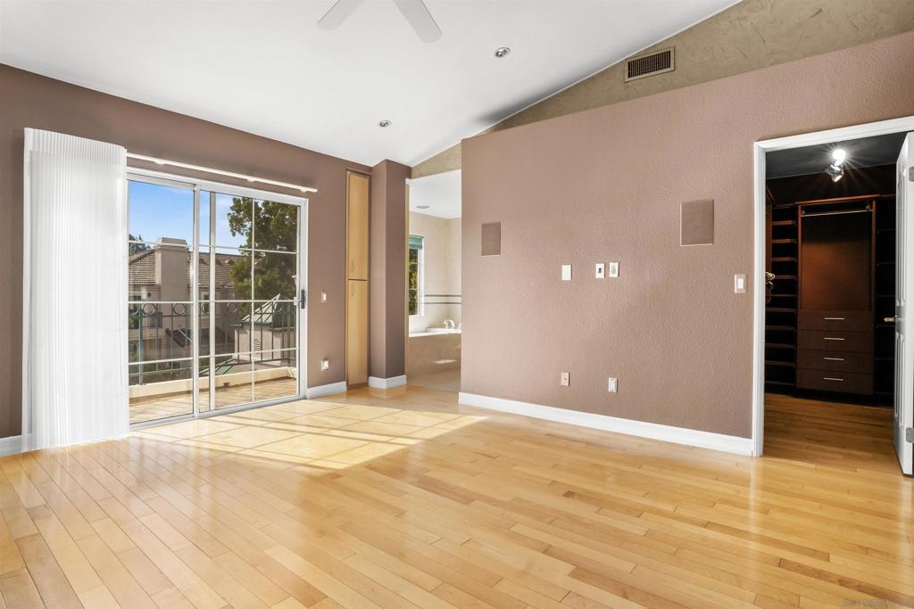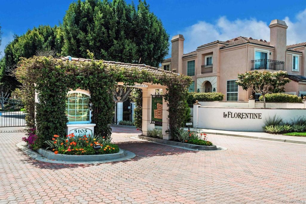 Beautiful Townhome in Gated Community of La Florentine. Bright, sunny home with cathedral ceilings, very spacious, open floor plan. Newer appliances with gas stove. Large living room, and master bedroom. Master bedroom has two walk-in closets. Custom wall lights in every room. Huge loft can be converted into a third bedroom. Family room off kitchen area. Solid hard wood flooring throughout home. Large front patio, large balconies off each bedroom. Oversized garage with extra storage area. Very quiet neighborhood. Walking distance to many restaurants and UTC Mall. Minutes to the beach and UCSD.